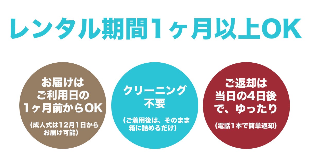 | レンタル期間 | お届け希望日からご利用日4日後まで(最大1ヶ月間レンタル可能) |