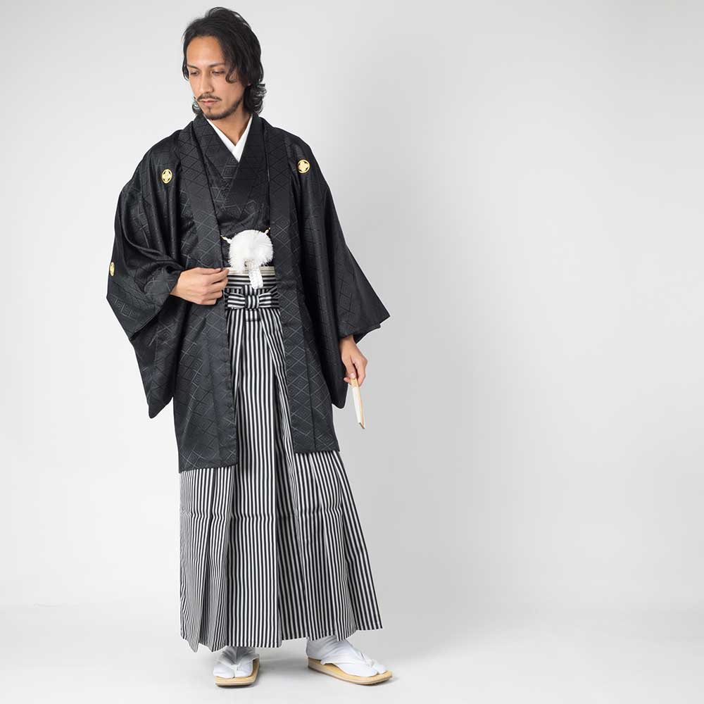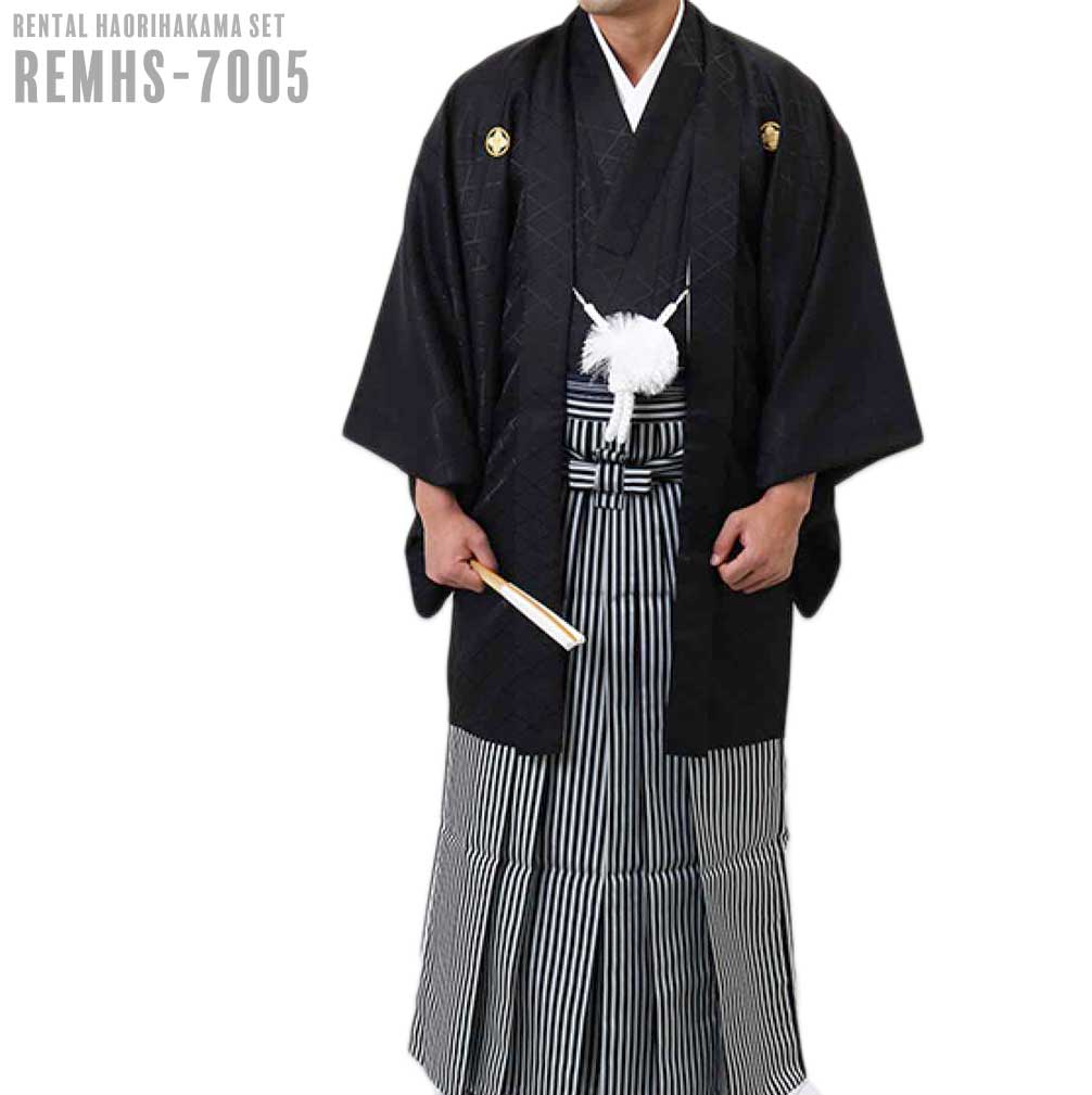 【対応身長160cm~170cm】【対応身長170cm~180cm】男性用レンタル紋付き袴フルセット-7005