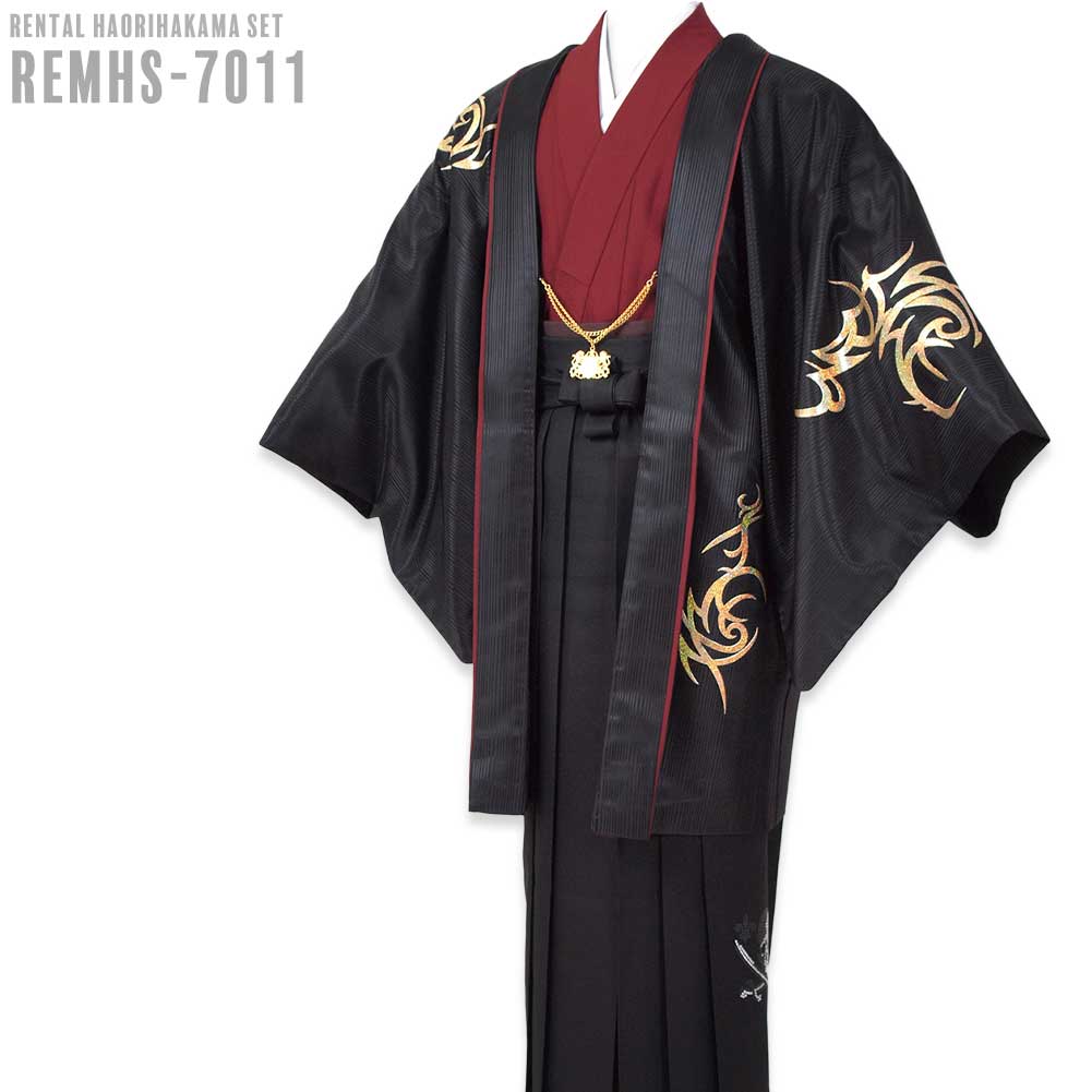 【対応身長160cm~170cm】【対応身長170cm~180cm】男性用レンタル紋付き袴フルセット-7011