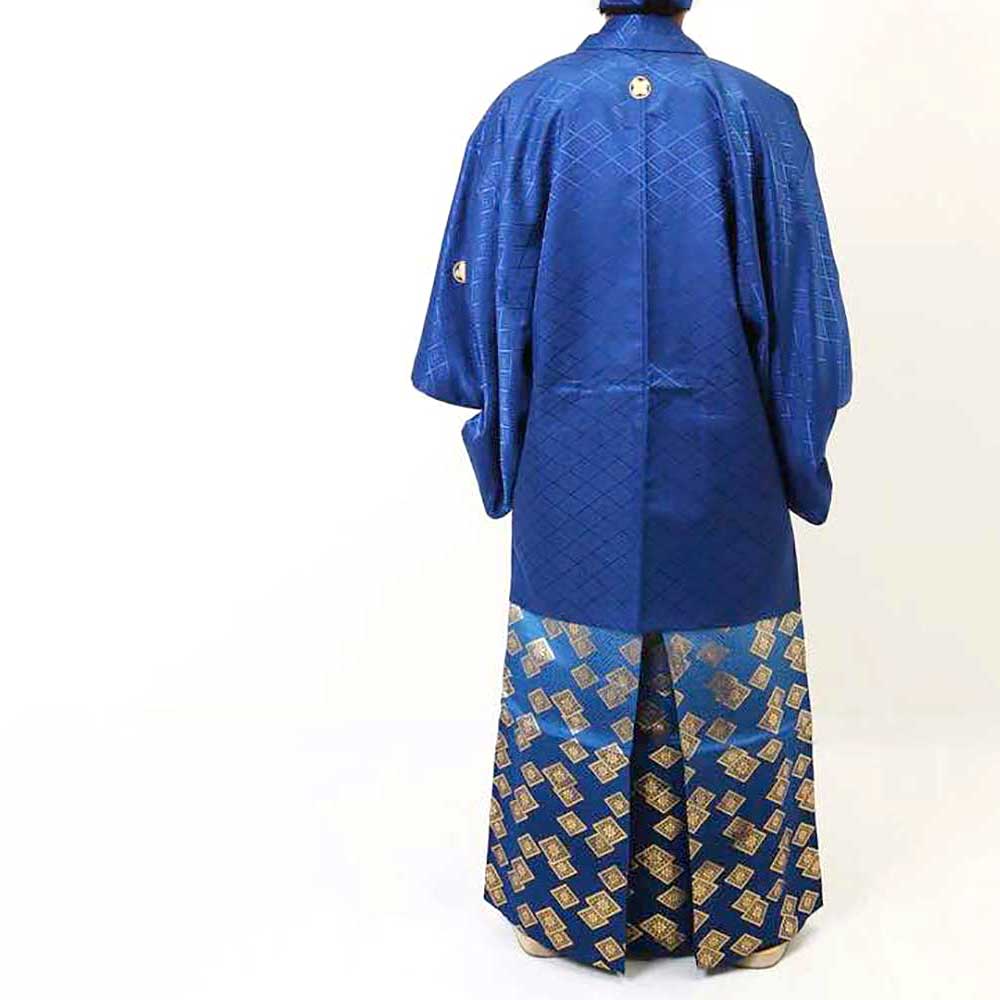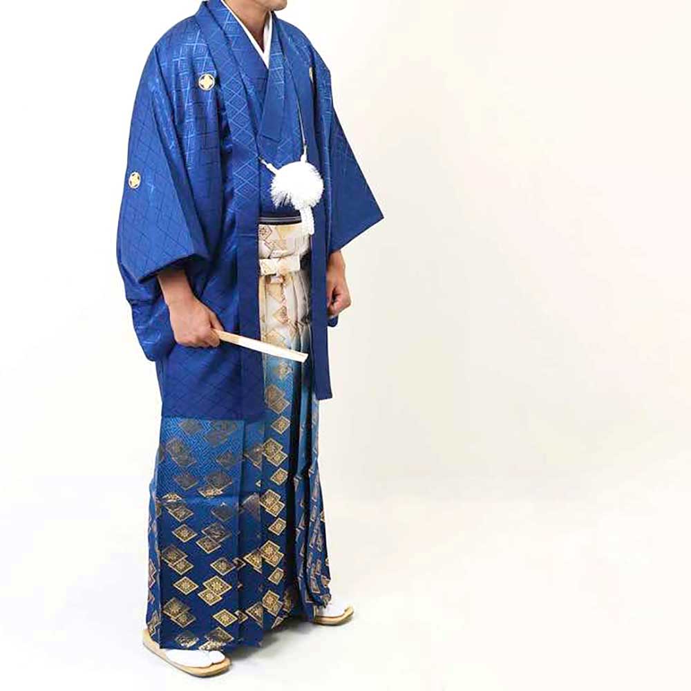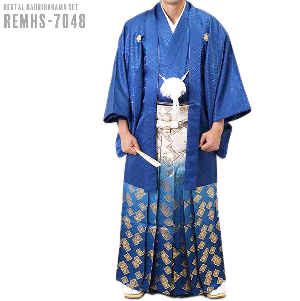 【対応身長160cm~170cm】【対応身長170cm~180cm】男性用レンタル紋付き袴フルセット-7120 青 白青織田瓜ぼかし袴