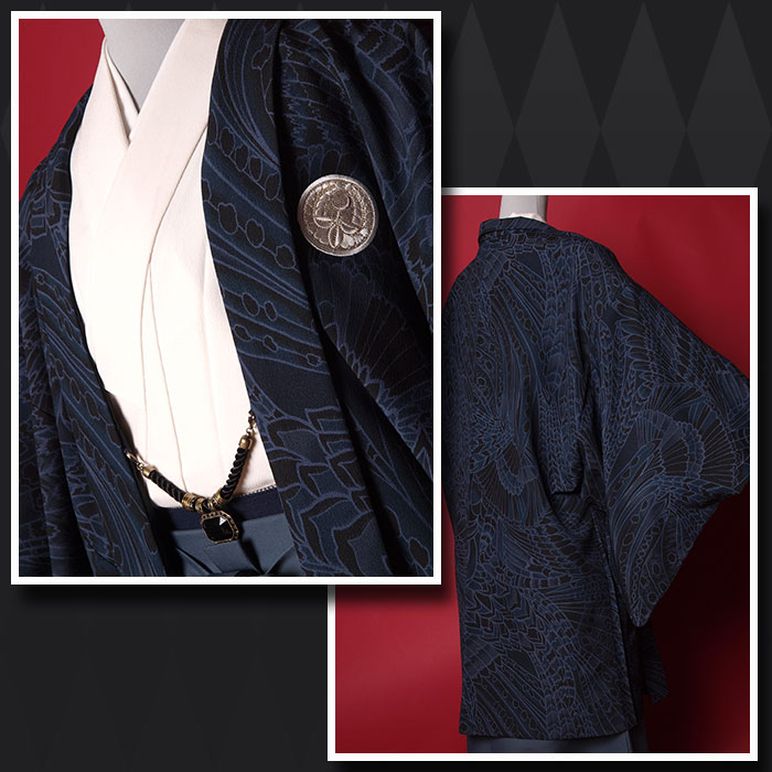 【対応身長160cm~170cm】【対応身長170cm~180cm】男性用レンタル紋付き袴フルセット-7254