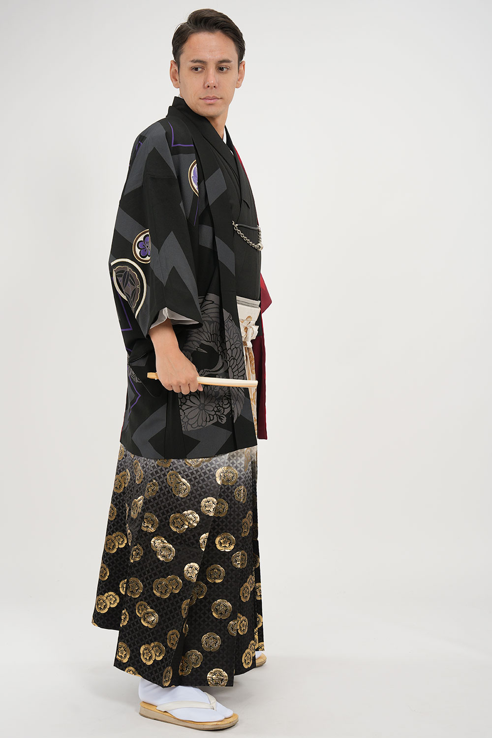 - 着物・羽織・袴・羽織紐・長襦袢・角帯・伊達締め・腰紐4本・衿芯・白扇・足袋・雪駄