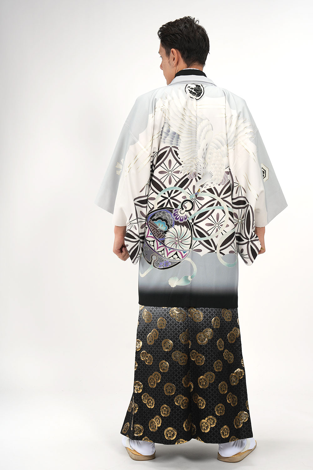 - 着物・羽織・袴・羽織紐・長襦袢・角帯・伊達締め・腰紐4本・衿芯・白扇・足袋・雪駄