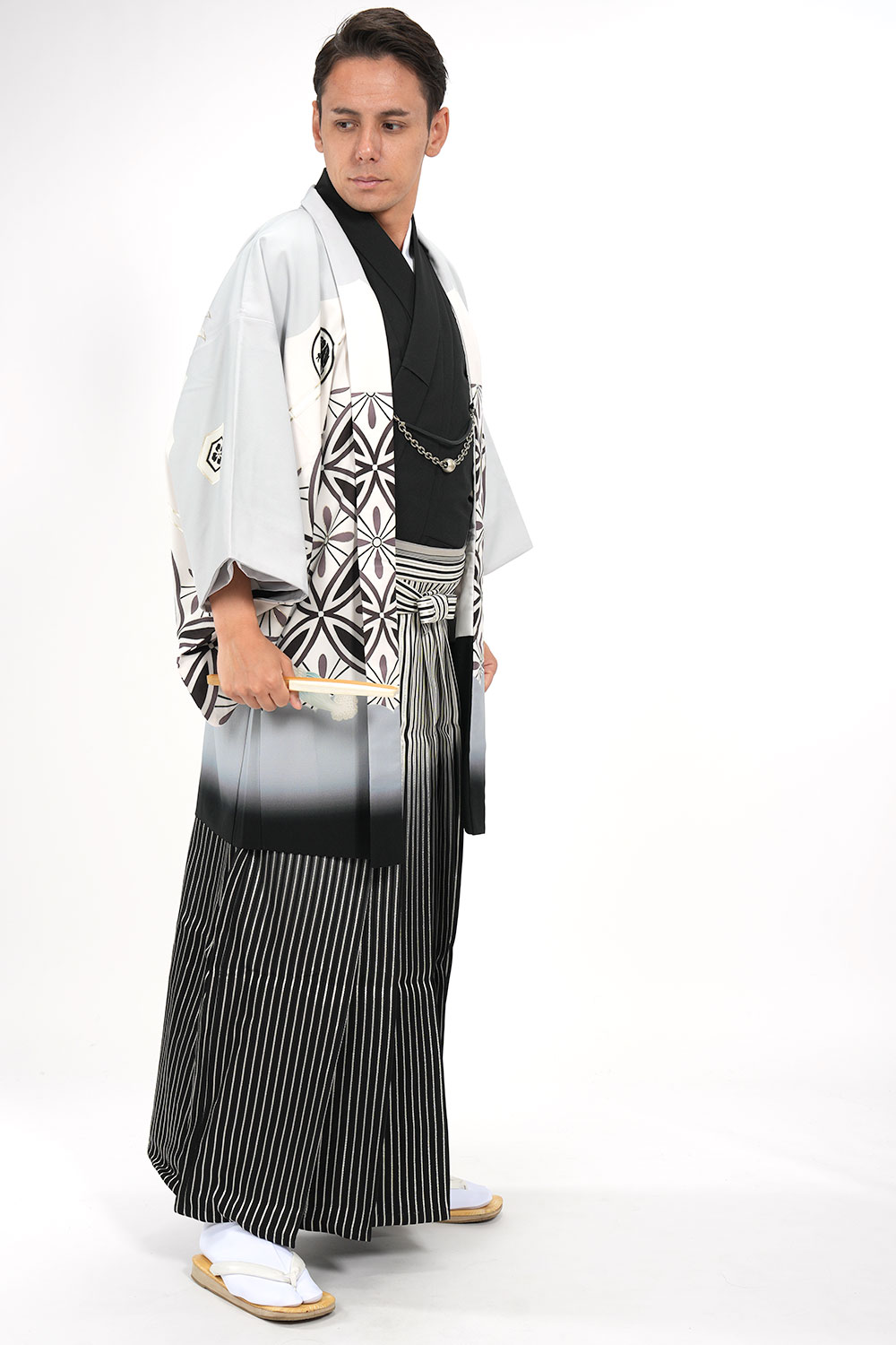 - 着物・羽織・袴・羽織紐・長襦袢・角帯・伊達締め・腰紐4本・衿芯・白扇・足袋・雪駄