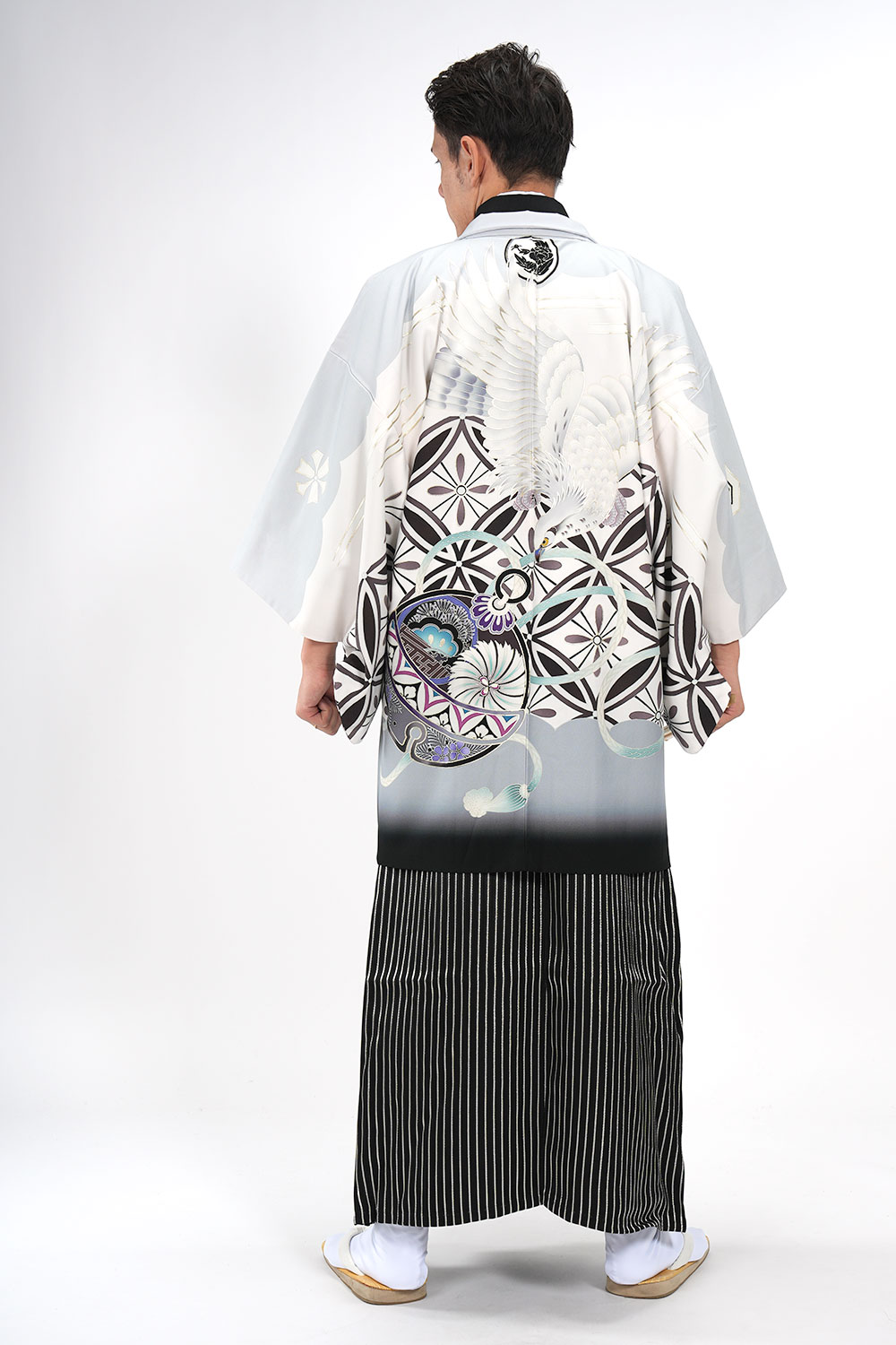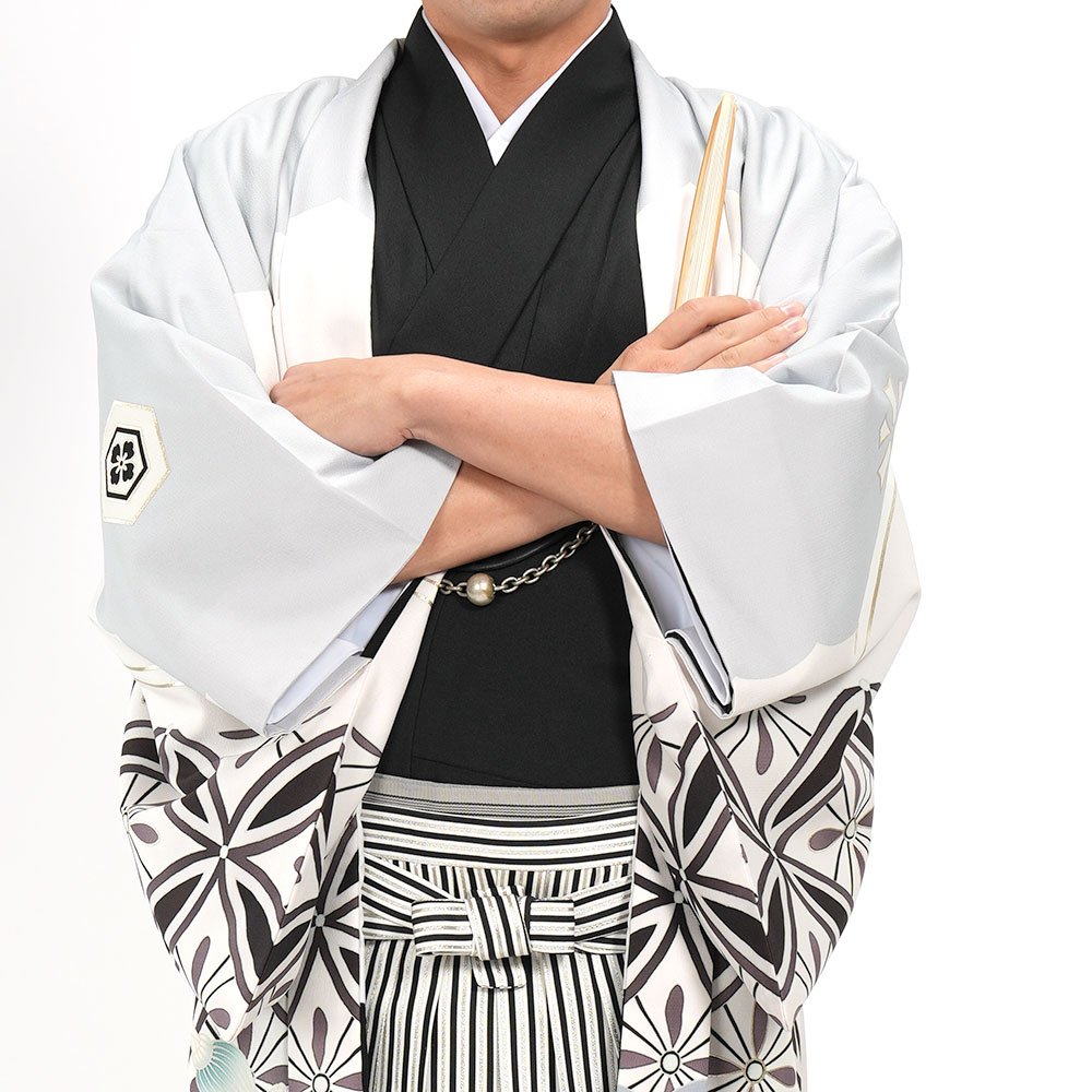 - 着物・羽織・袴・羽織紐・長襦袢・角帯・伊達締め・腰紐4本・衿芯・白扇・足袋・雪駄