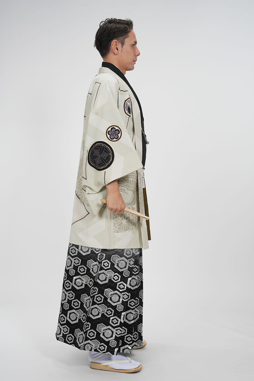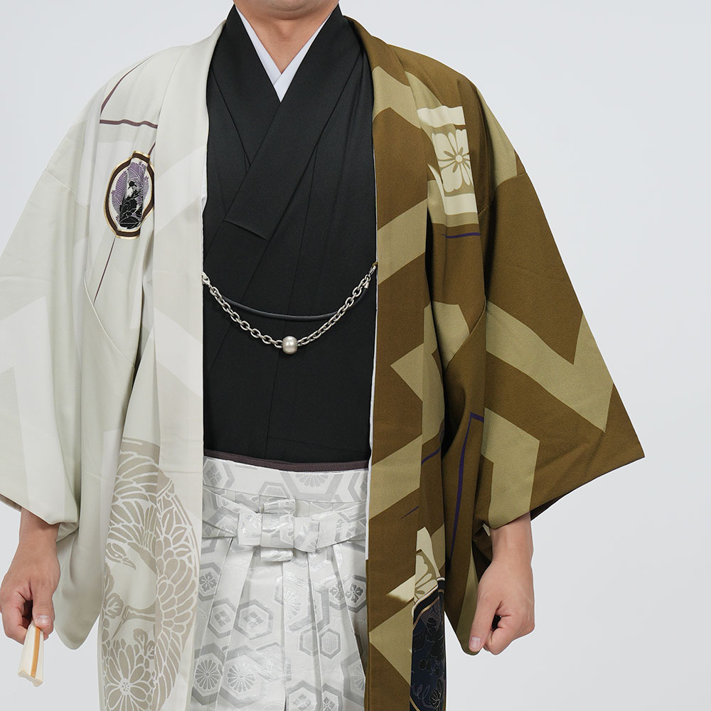 - 着物・羽織・袴・羽織紐・長襦袢・角帯・伊達締め・腰紐4本・衿芯・白扇・足袋・雪駄