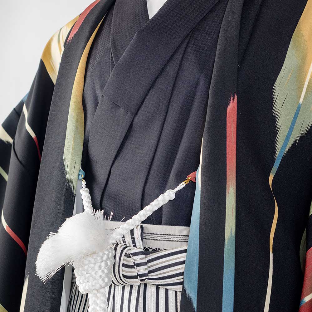 - 着物・羽織・袴・羽織紐・長襦袢・角帯・伊達締め・腰紐4本・衿芯・白扇・足袋・雪駄