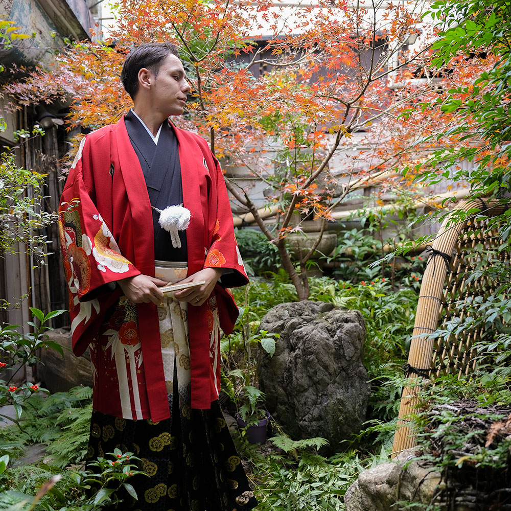 - 着物・羽織・袴・羽織紐・長襦袢・角帯・伊達締め・腰紐4本・衿芯・白扇・足袋・雪駄