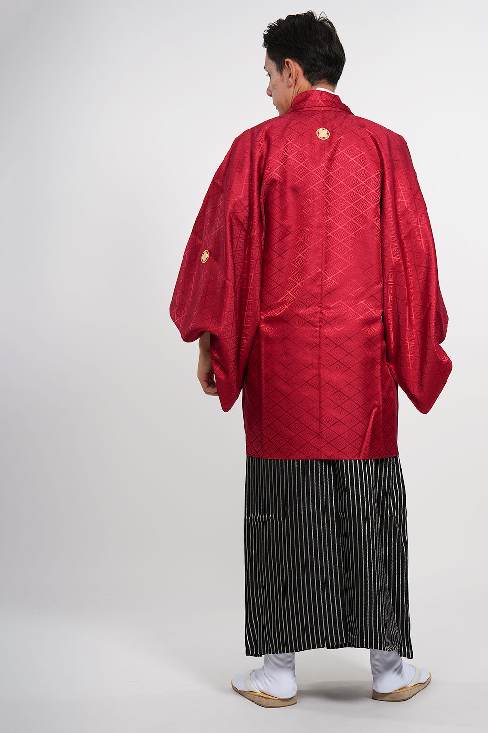 - 着物・羽織・袴・羽織紐・長襦袢・角帯・伊達締め・腰紐4本・衿芯・白扇・足袋・雪駄