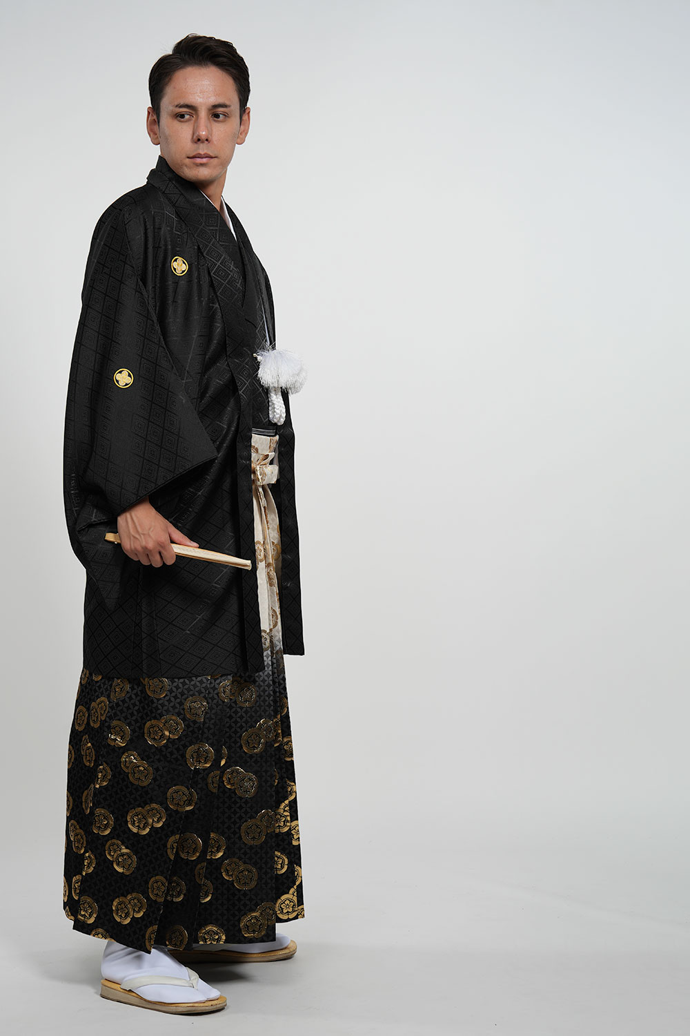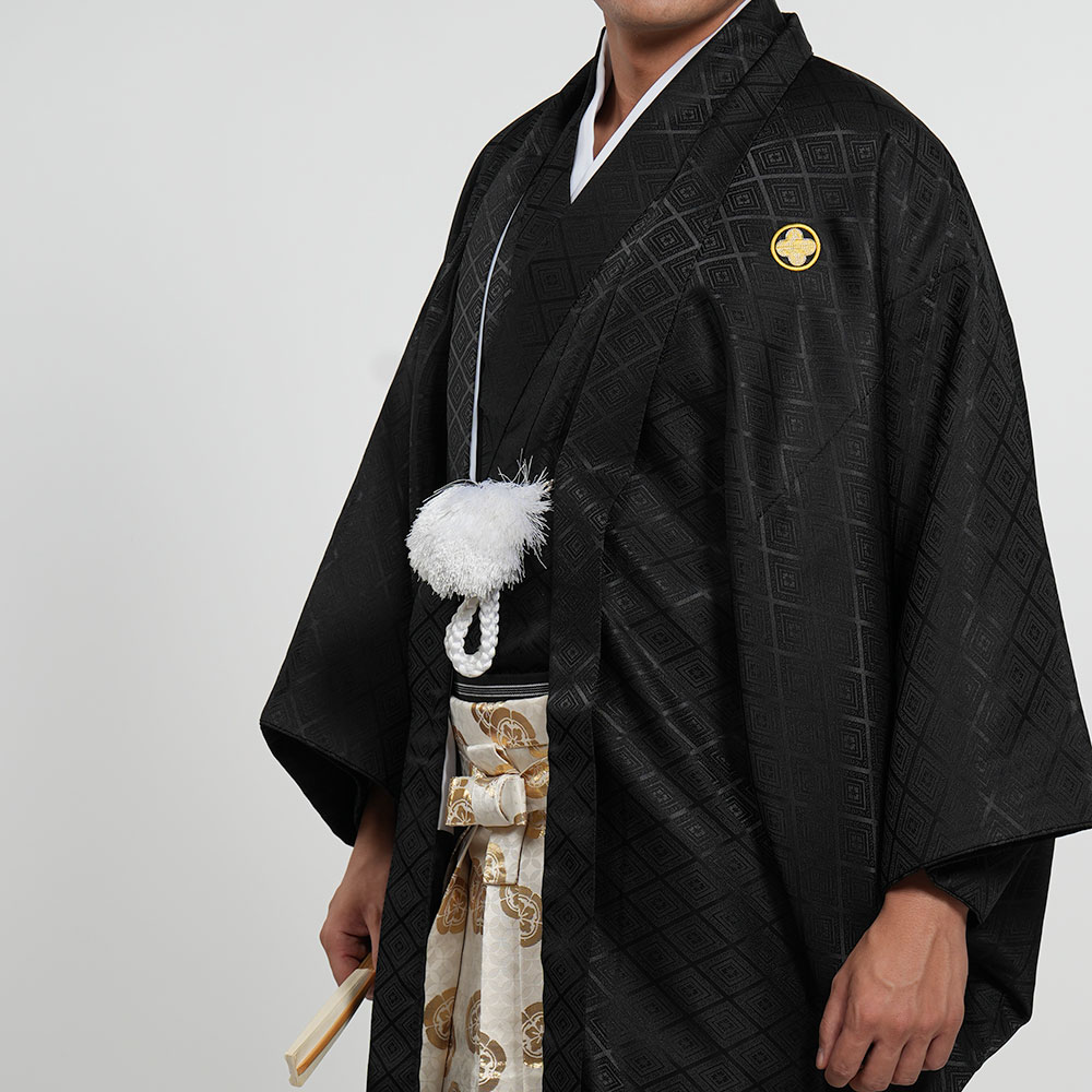- 着物・羽織・袴・羽織紐・長襦袢・角帯・伊達締め・腰紐4本・衿芯・白扇・足袋・雪駄