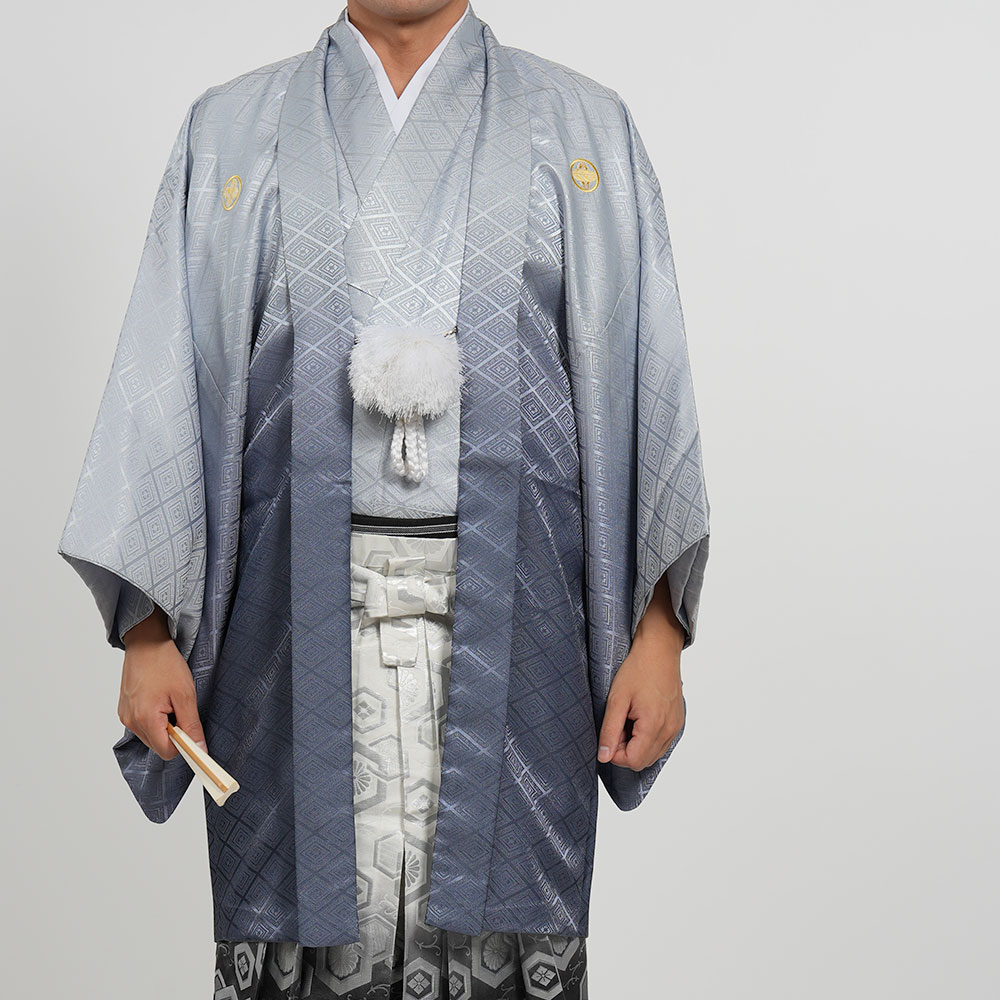 - 着物・羽織・袴・羽織紐・長襦袢・角帯・伊達締め・腰紐4本・衿芯・白扇・足袋・雪駄