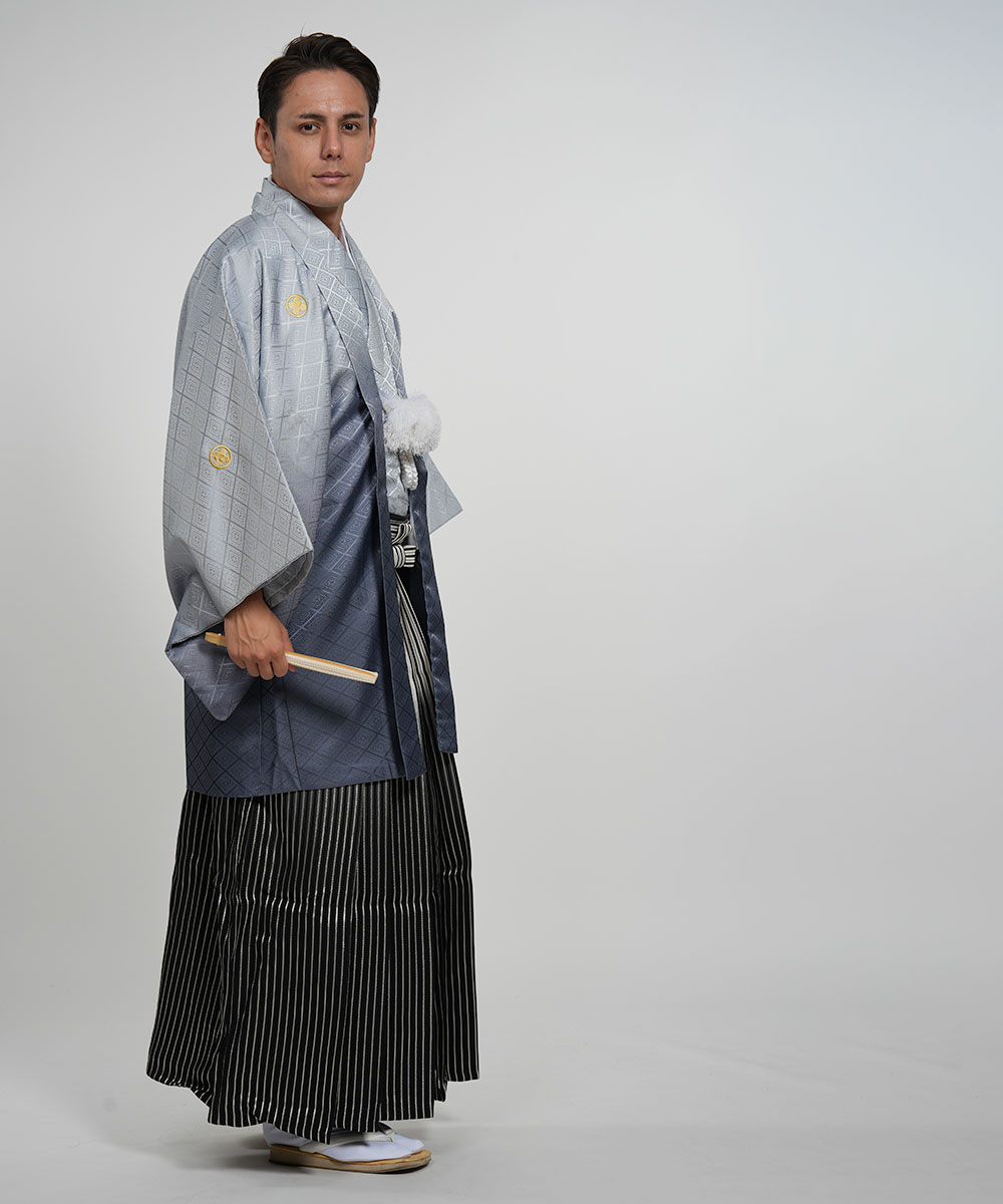 - 着物・羽織・袴・羽織紐・長襦袢・角帯・伊達締め・腰紐4本・衿芯・白扇・足袋・雪駄