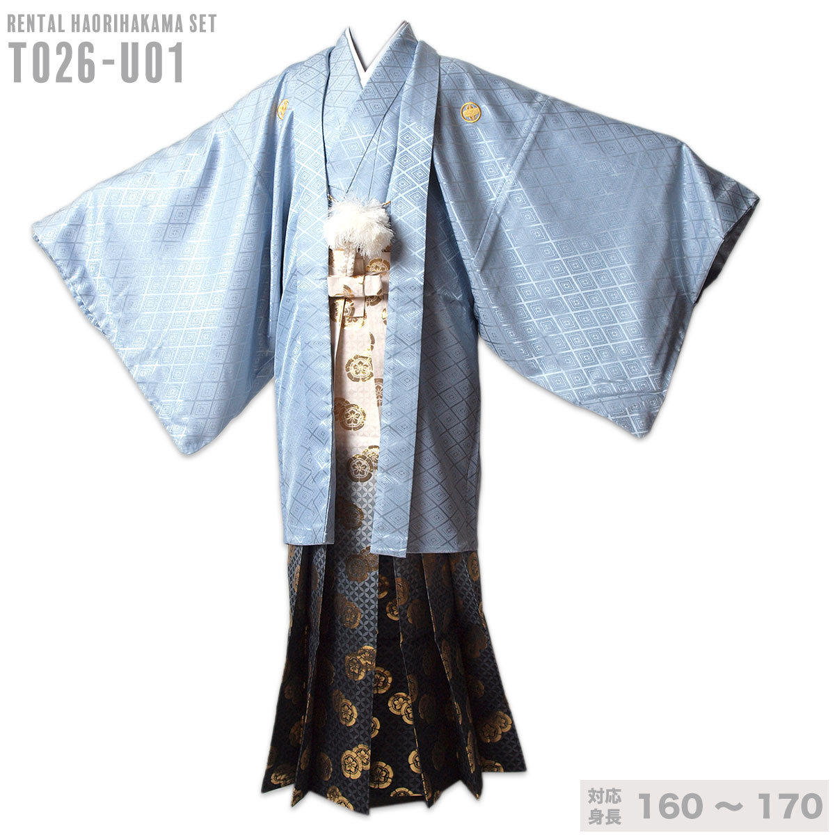 【対応身長160cm~170cm】男性用レンタル紋付き袴フルセット