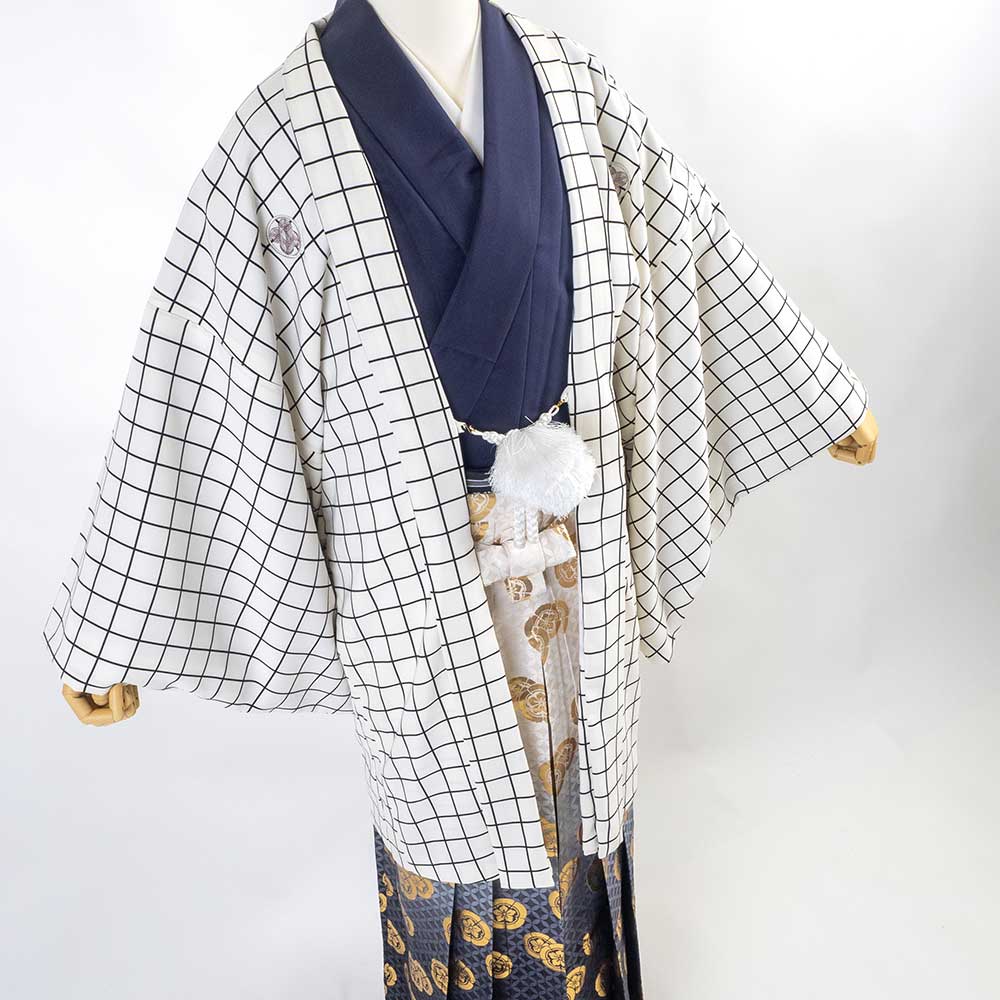 - 着物・羽織・袴・羽織紐・長襦袢・角帯・伊達締め・腰紐4本・衿芯・白扇・足袋・雪駄