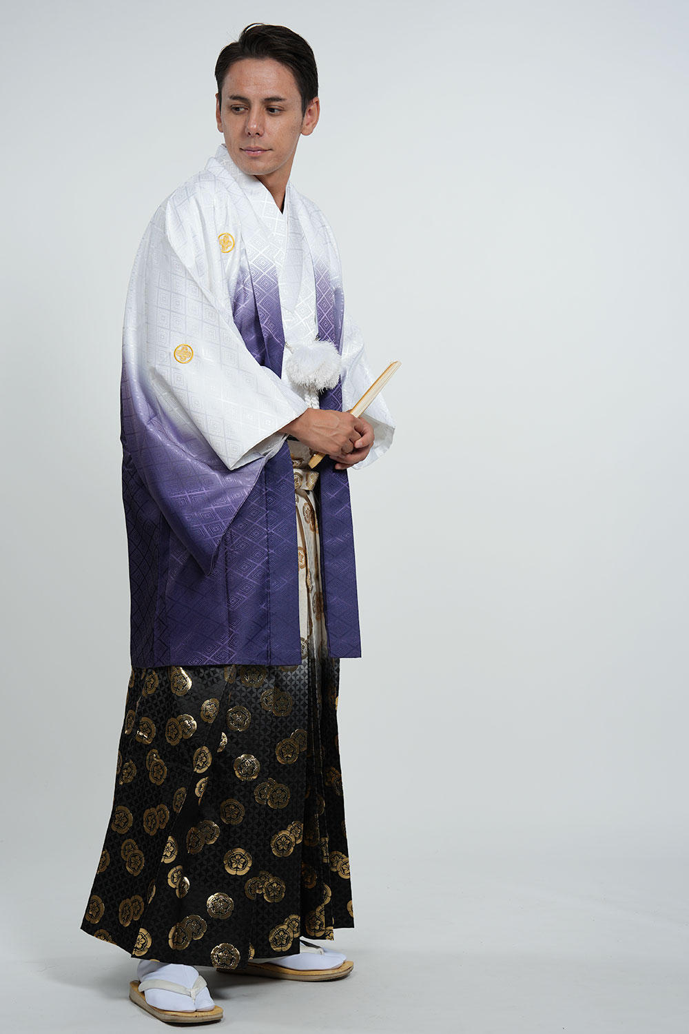 - 着物・羽織・袴・羽織紐・長襦袢・角帯・伊達締め・腰紐4本・衿芯・白扇・足袋・雪駄