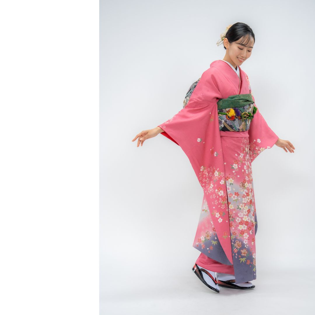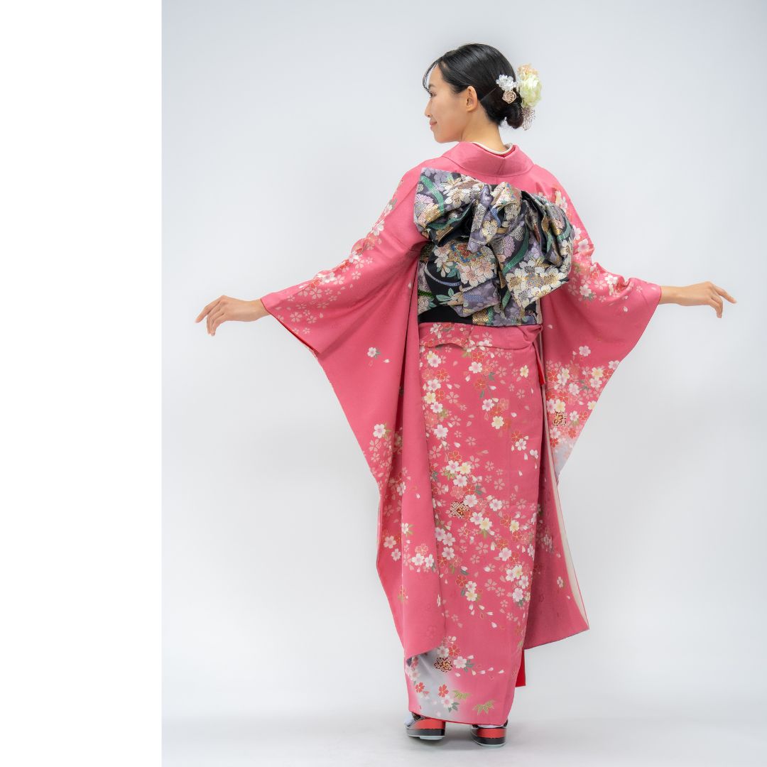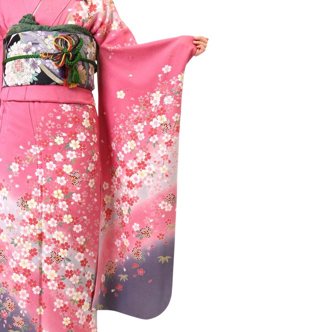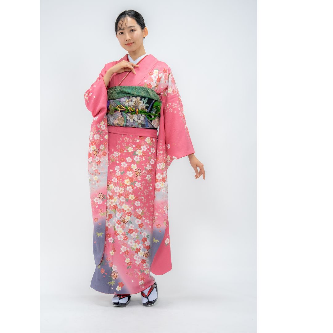【対応身長150cm~165cm】【ポップ・キュート】【正絹】成人式レンタル振袖フルセット-082 花柄 定番 ポップキュート ピンク系 グレー系 桜 松 鹿の子