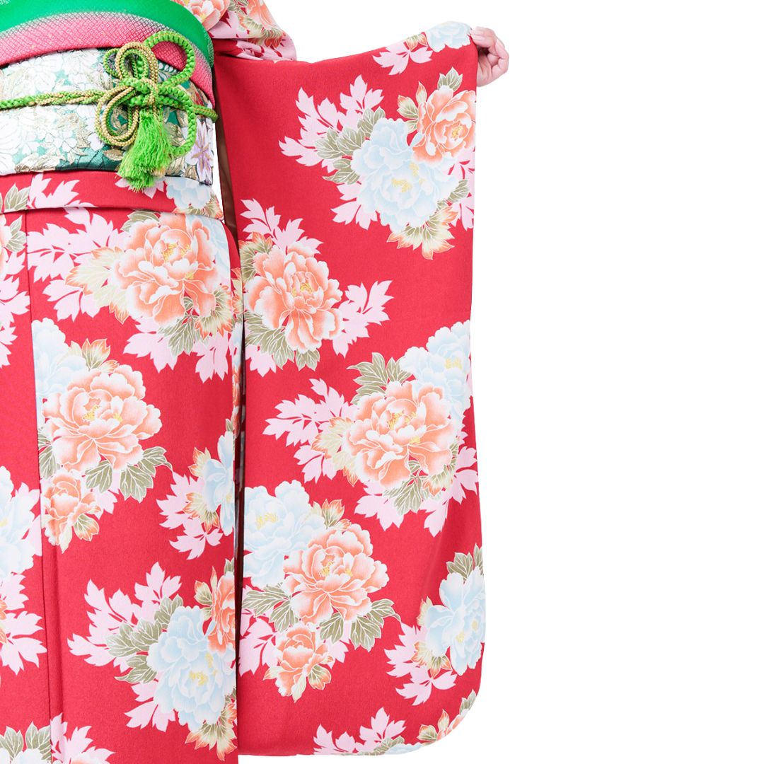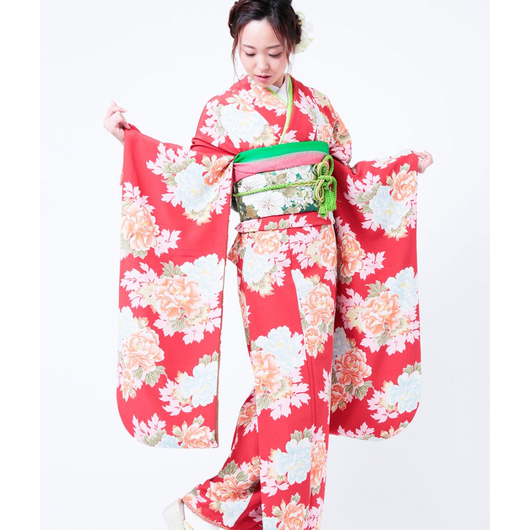 【対応身長155cm~170cm】【レトロ・アンティーク】【合繊】成人式レンタル振袖フルセット-235 花柄 レトロ クール系 ポップキュート 赤系 ピンク系 オレンジ系 牡丹 総柄