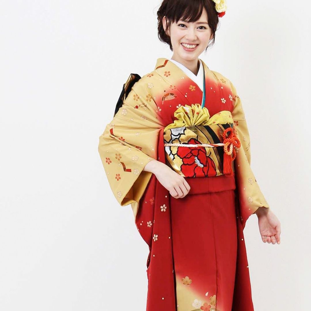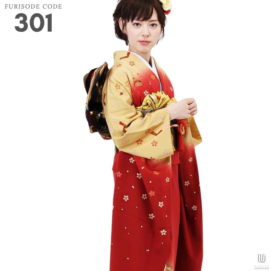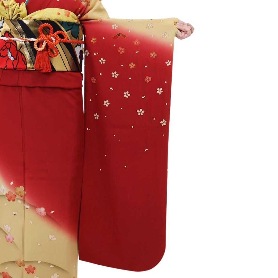 【対応身長155cm~170cm】【ポップ・キュート】【正絹】成人式レンタル振袖フルセット-301 花柄 レトロ クール系 定番 古典 オレンジ系 赤系 黄色系 桜