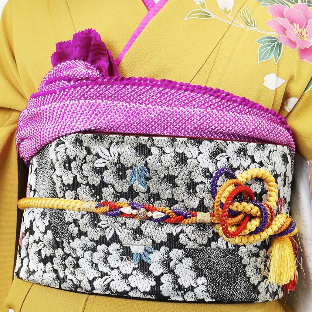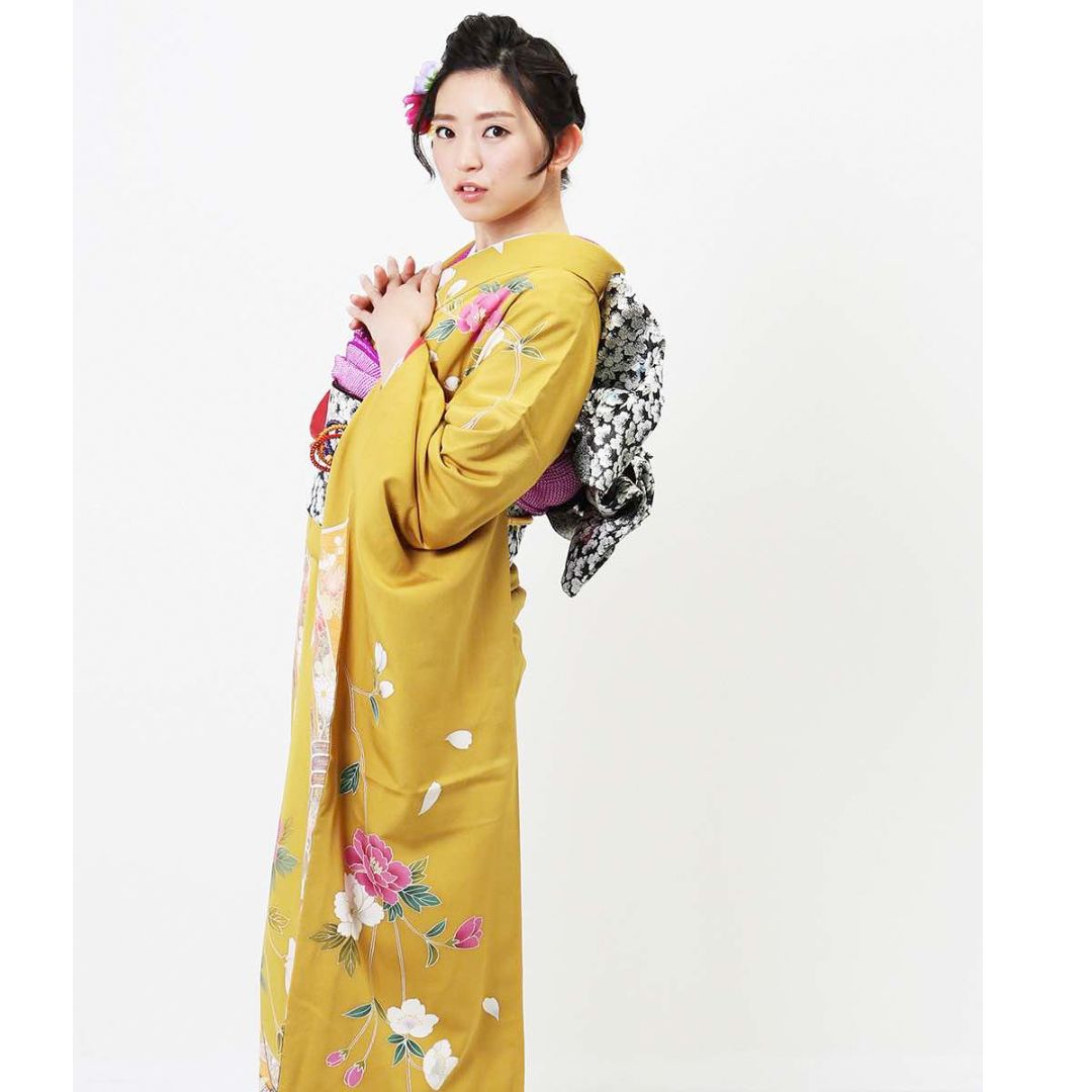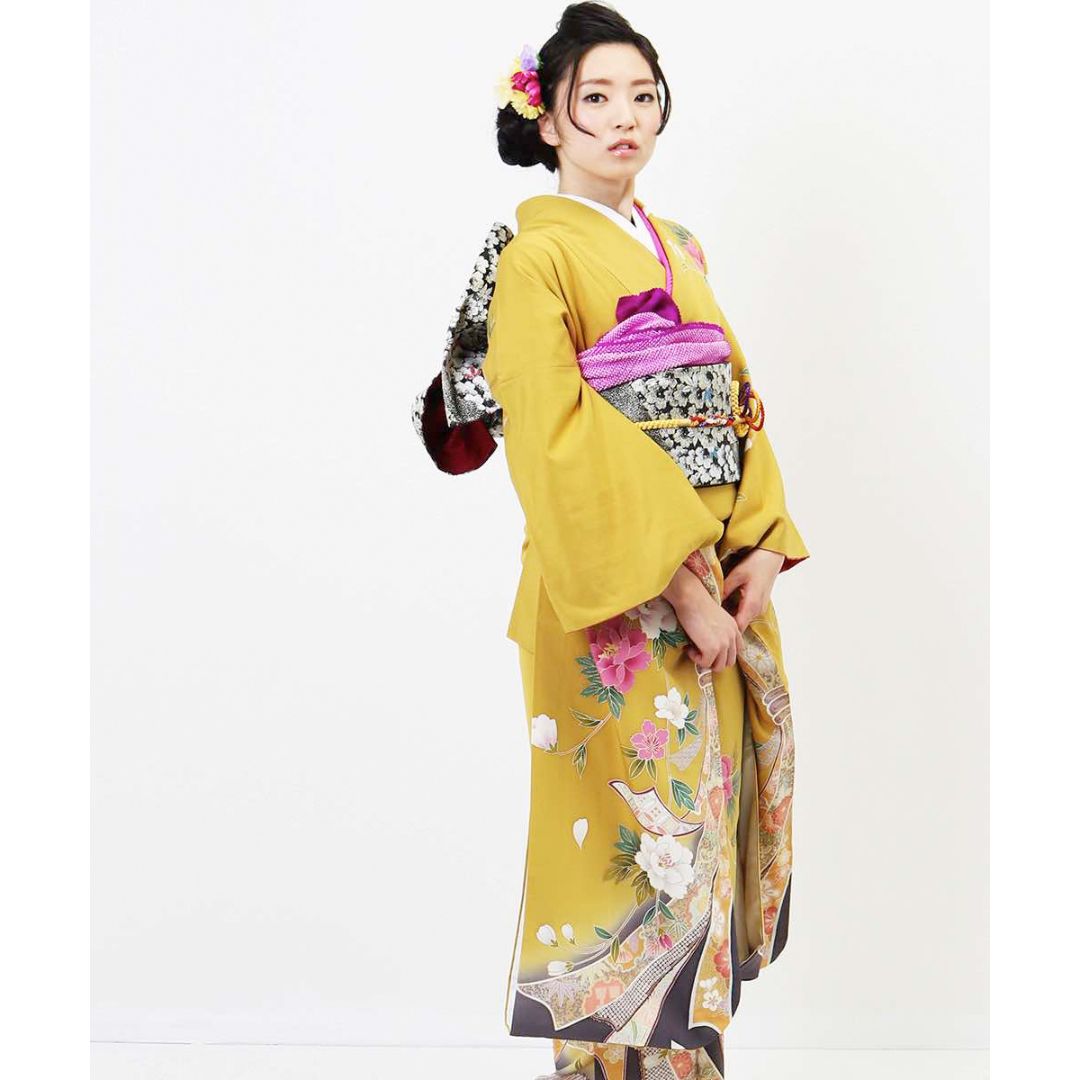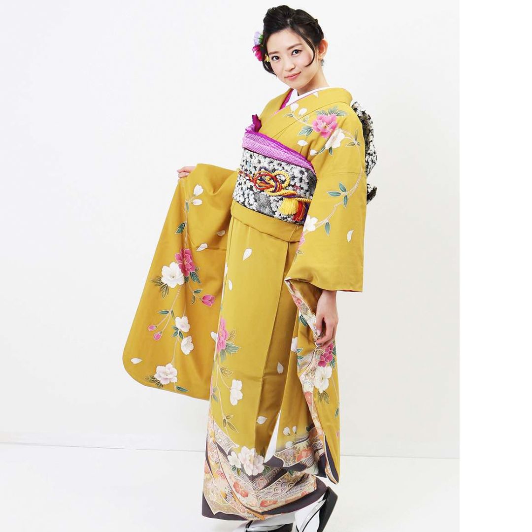 【対応身長155cm~170cm】【ポップ・キュート】【正絹】成人式レンタル振袖フルセット-325 花柄 クール系 定番 古典 ポップキュート 黄色系 グレー系 牡丹 束ね熨斗