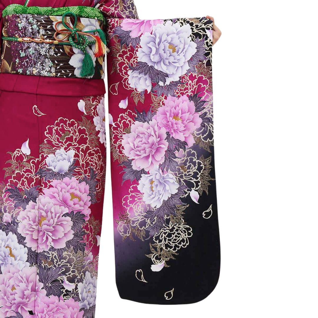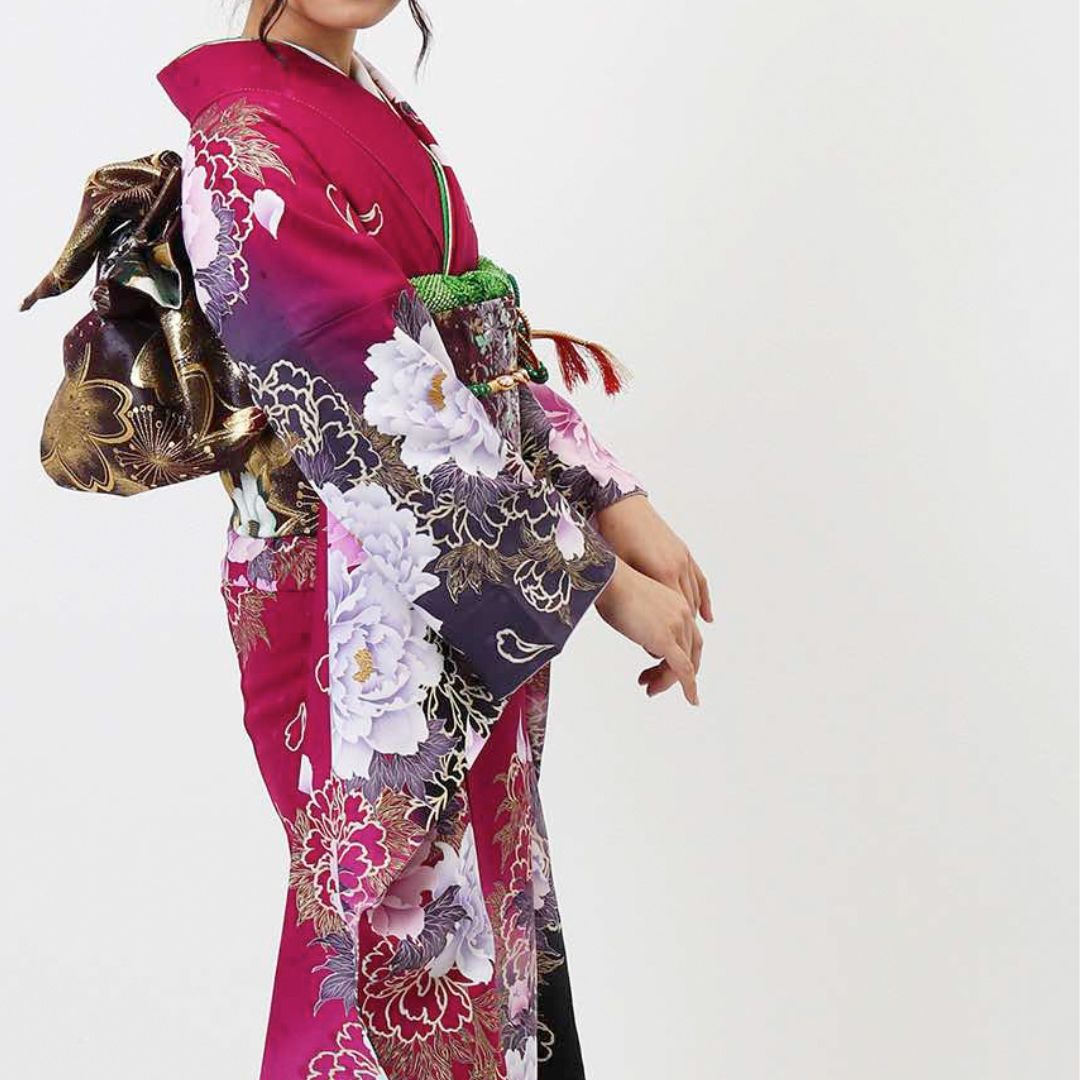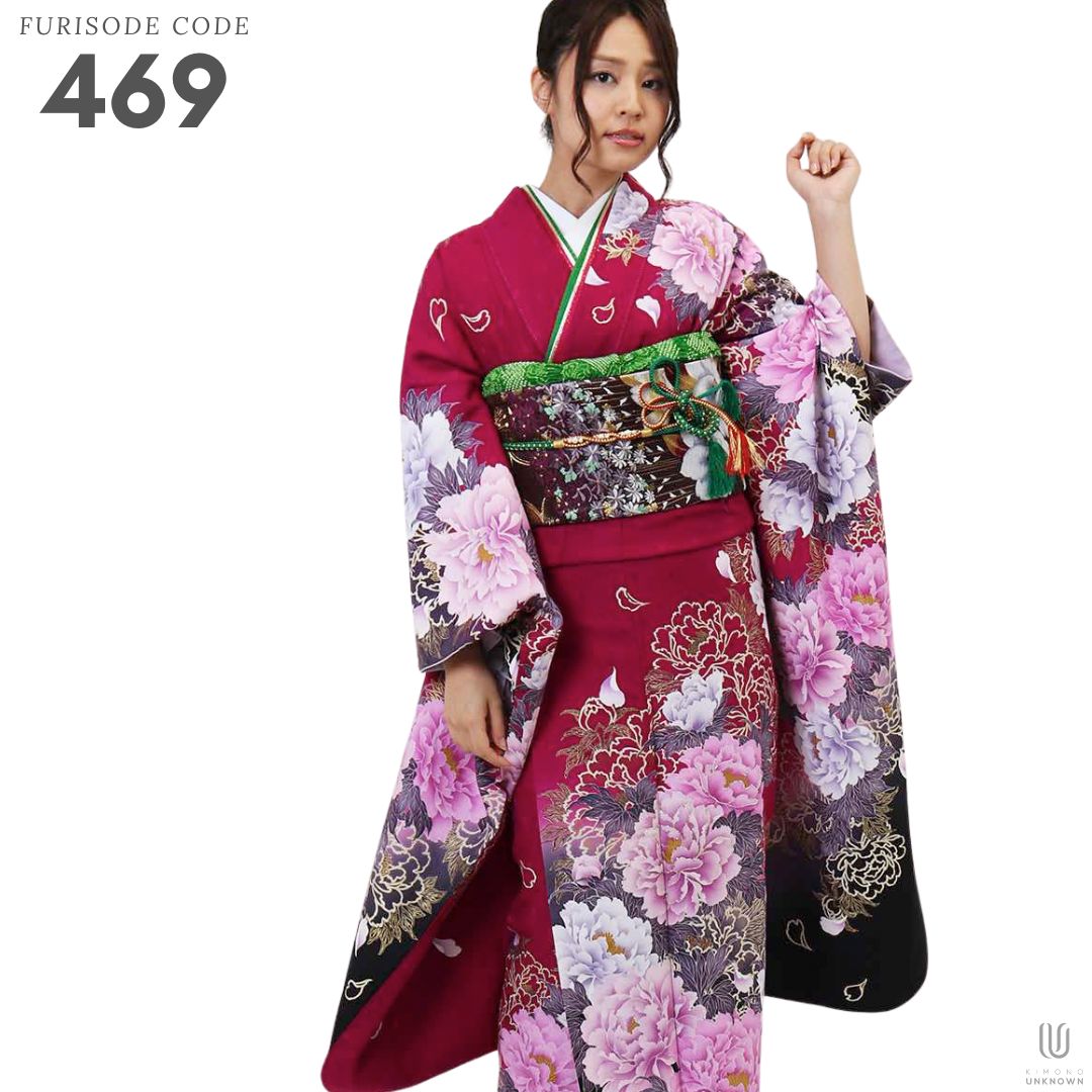 【対応身長150cm~165cm】【ポップ・キュート】【正絹】成人式レンタル振袖フルセット-469 花柄 モダン クール系 ポップキュート 紫系 ピンク系 牡丹 金彩 豪華
