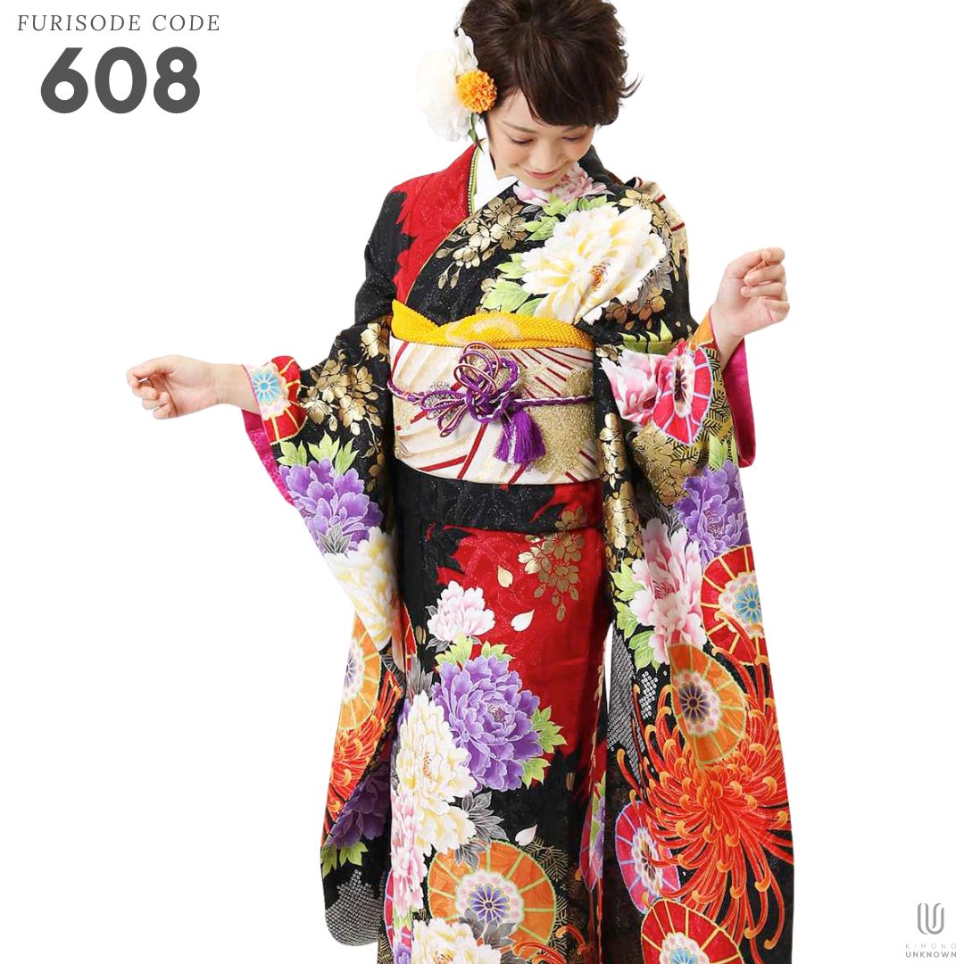 【対応身長152cm~167cm】【クール・モダン】成人式レンタル振袖フルセット-608 振袖セット