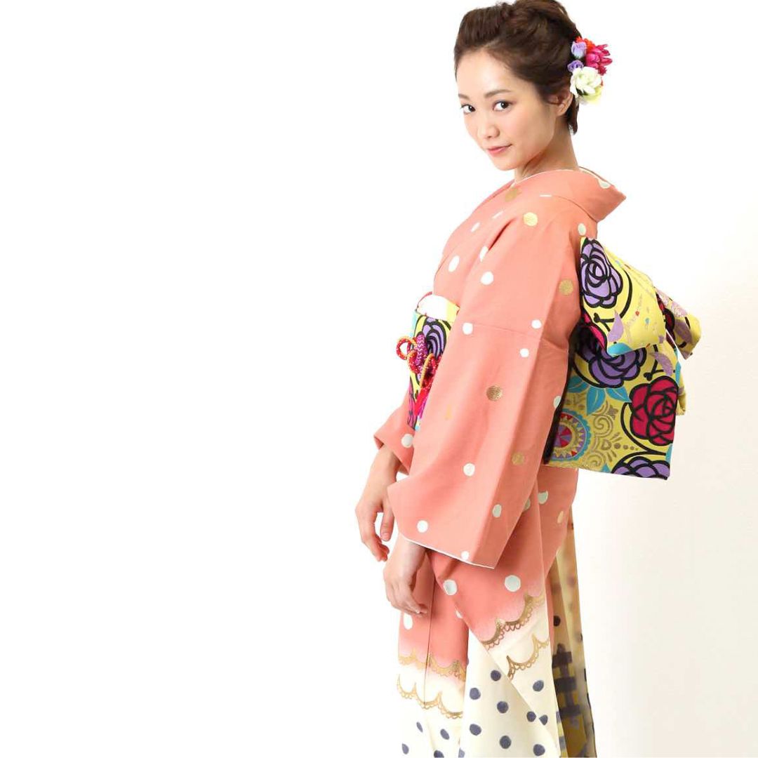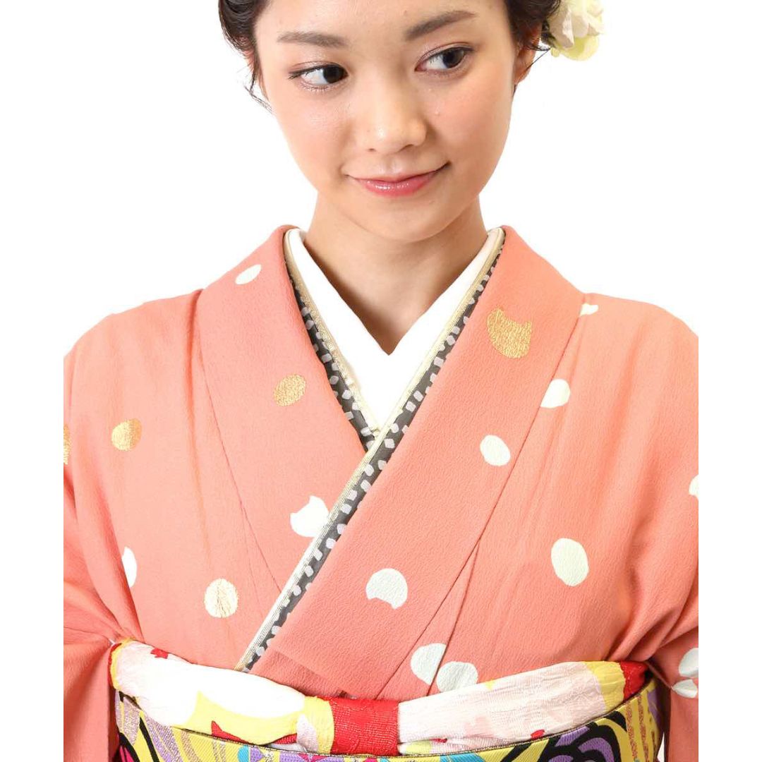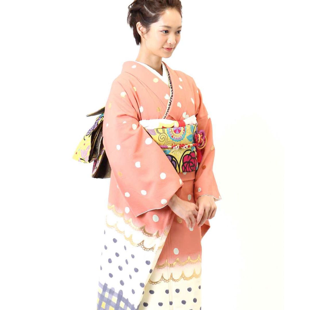 【対応身長152cm~167cm】【ポップ・キュート】成人式レンタル振袖フルセット-820 レトロ クール系 ポップキュート ピンク系 白系 水玉 ツモリチサト