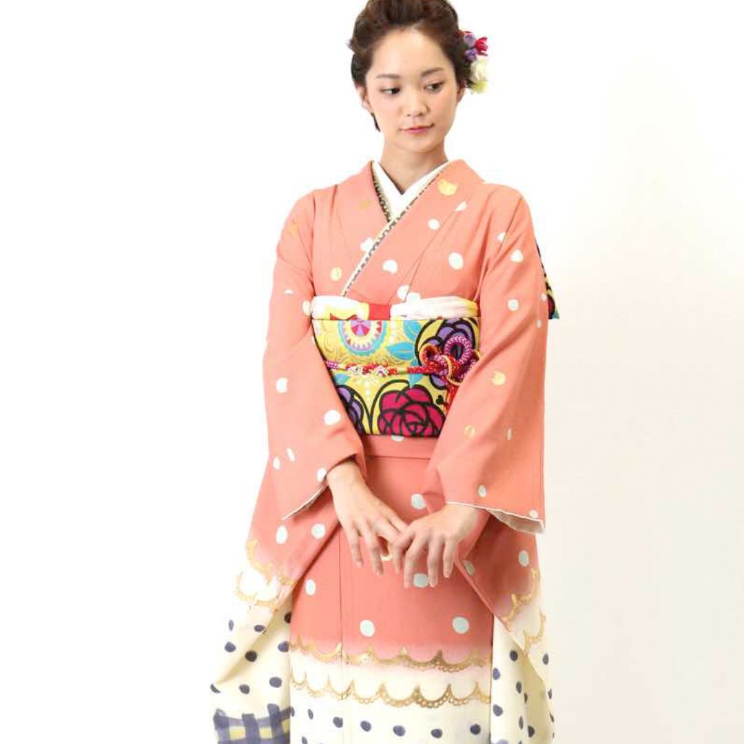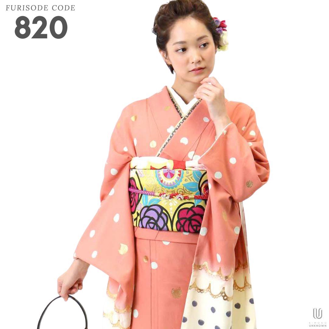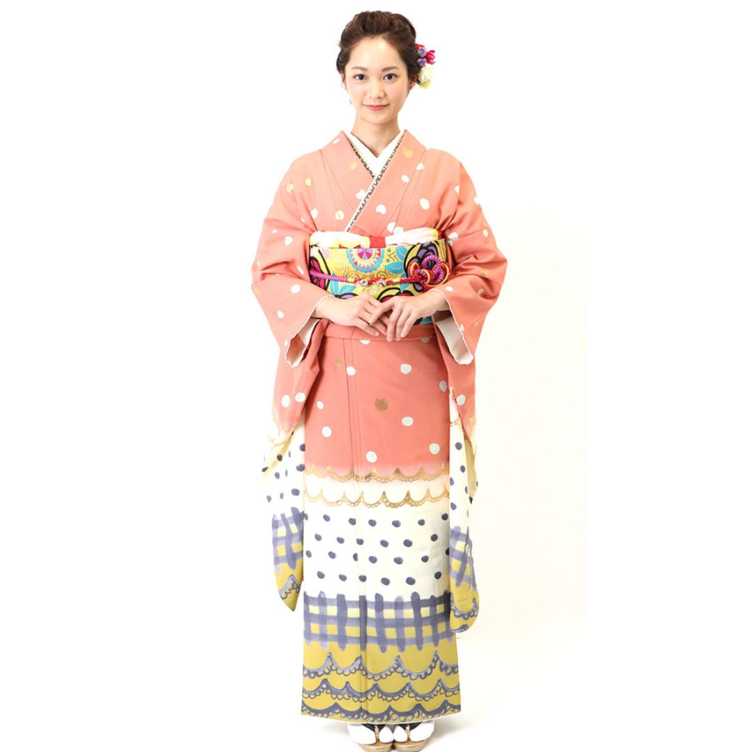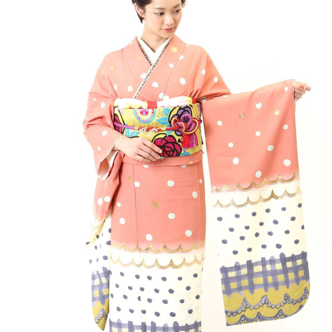 【対応身長152cm~167cm】【ポップ・キュート】成人式レンタル振袖フルセット-820 レトロ クール系 ポップキュート ピンク系 白系 水玉 ツモリチサト