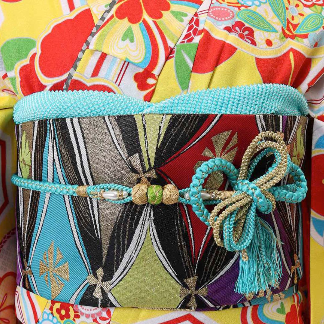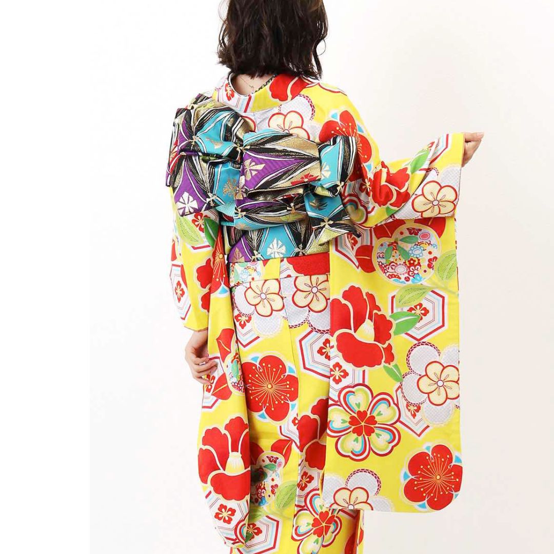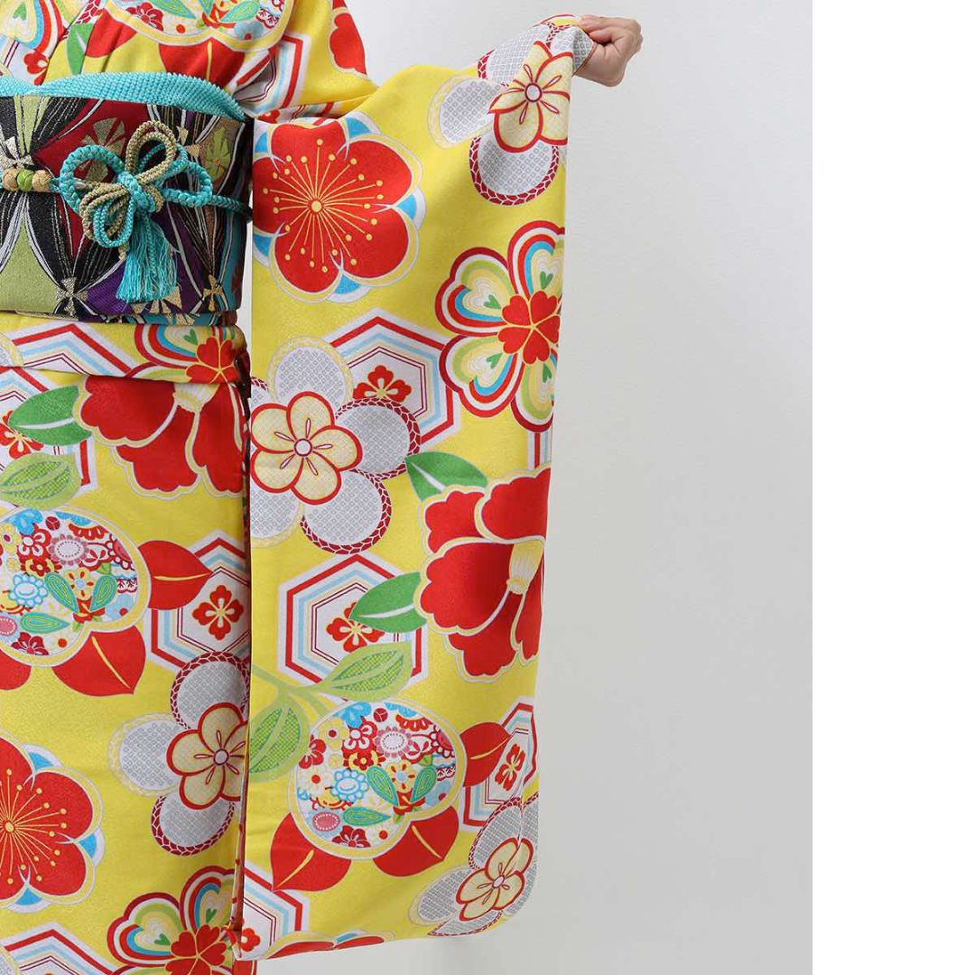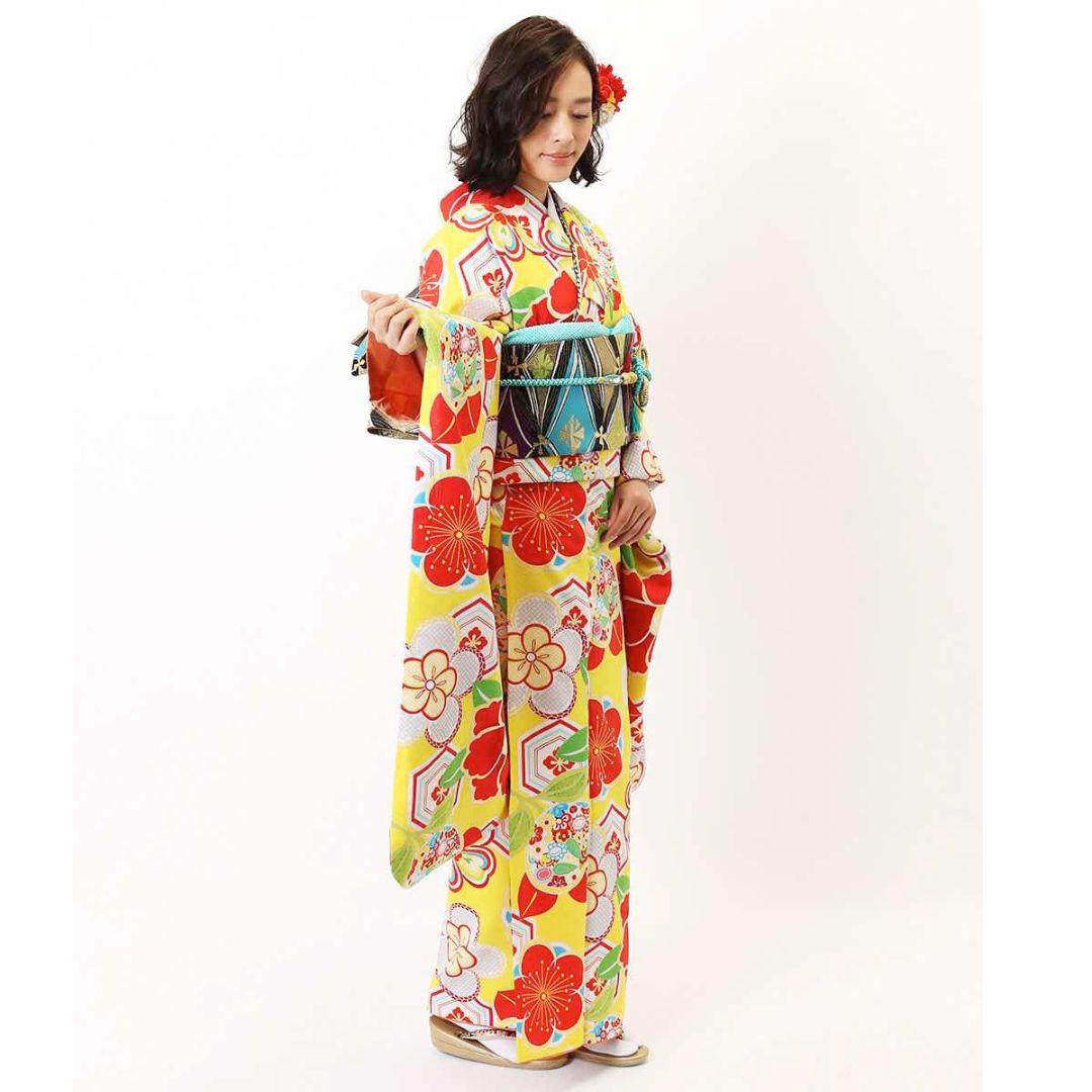 【対応身長156cm~171cm】【ポップ・キュート】成人式レンタル振袖フルセット-826 花柄 レトロ クール系 ポップキュート 黄色系