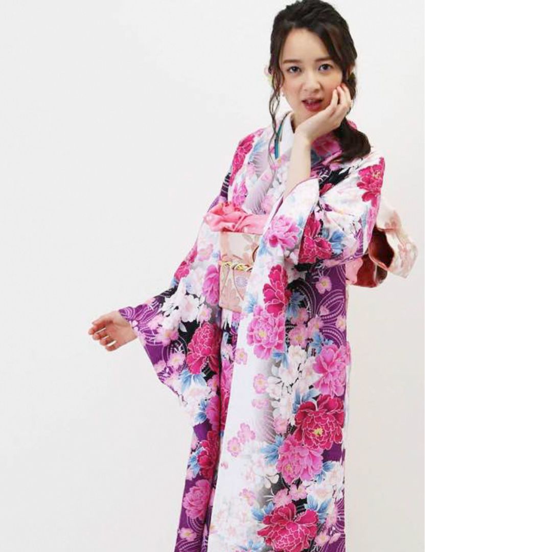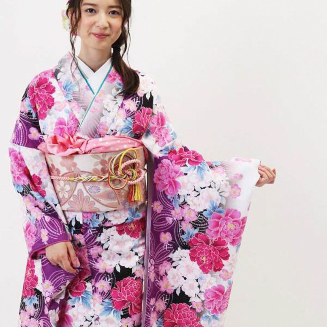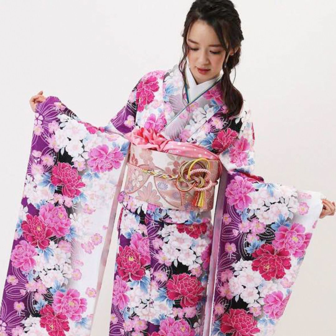 【対応身長155cm~170cm】成人式レンタル振袖フルセット-926 花柄 クール系 ポップキュート ピンク系 紫系 牡丹