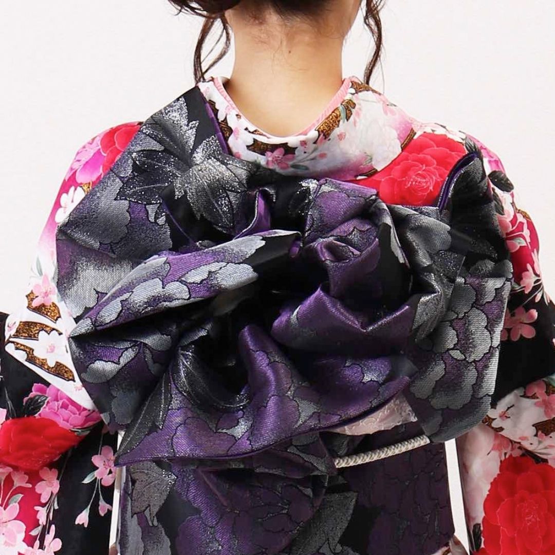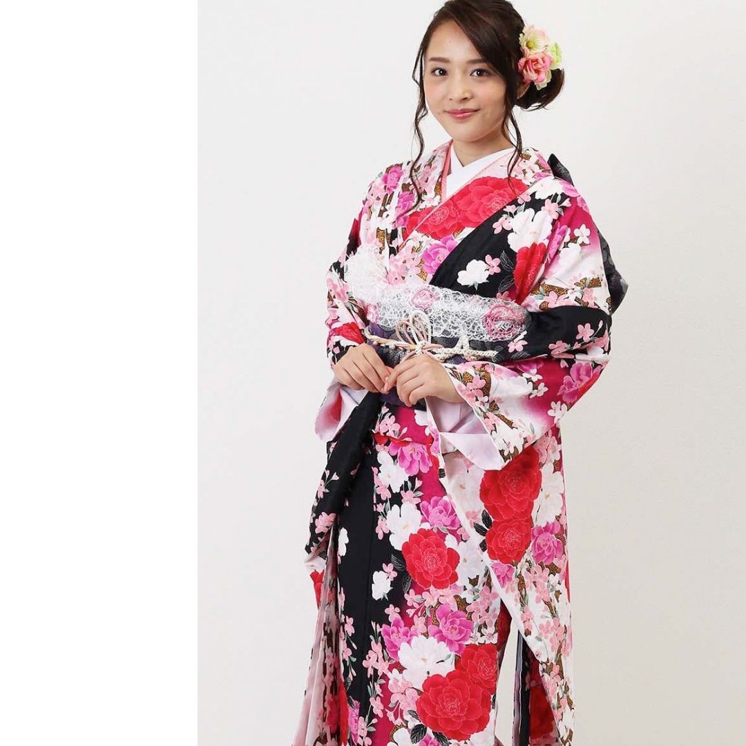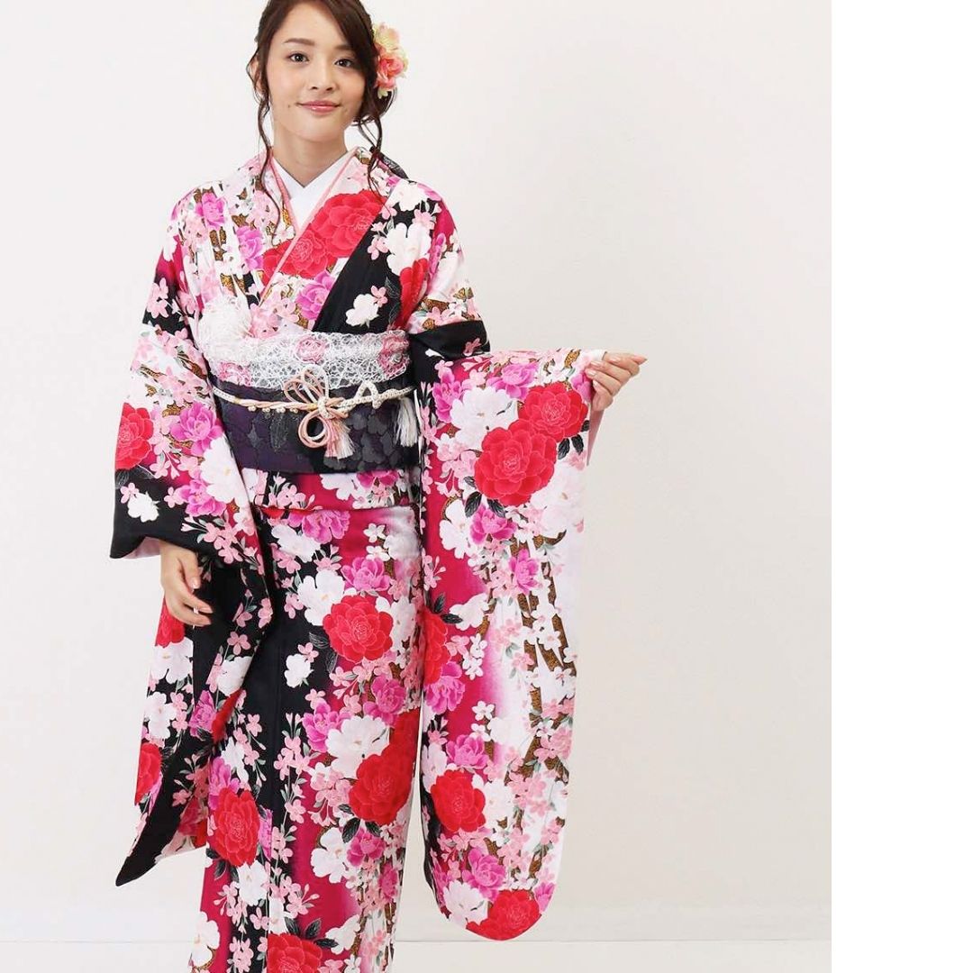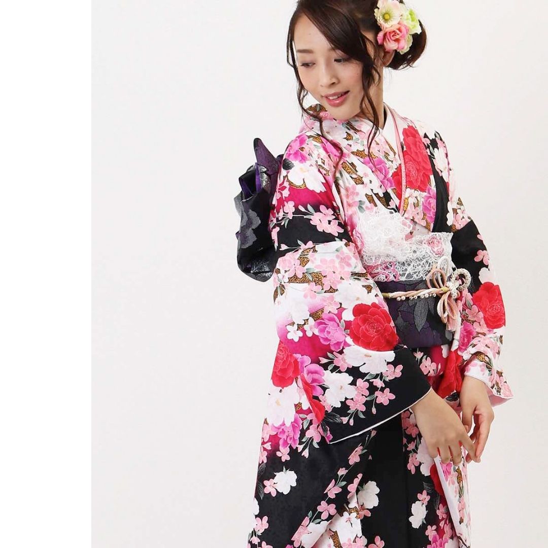 【対応身長155cm~170cm】成人式レンタル振袖フルセット-928 花柄 クール系 ポップキュート 赤系 ピンク系 黒系 総柄