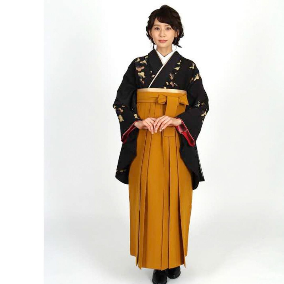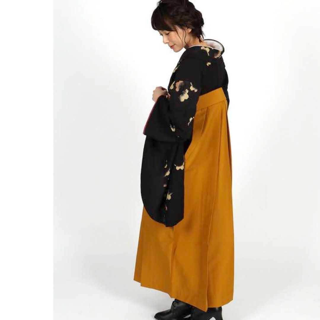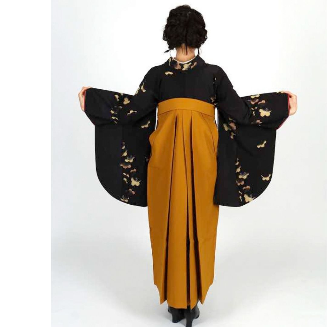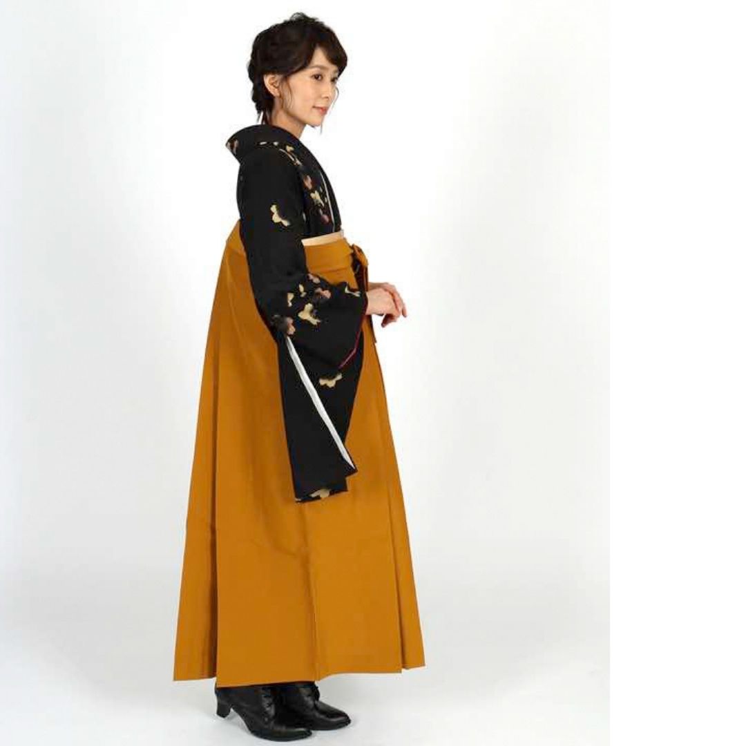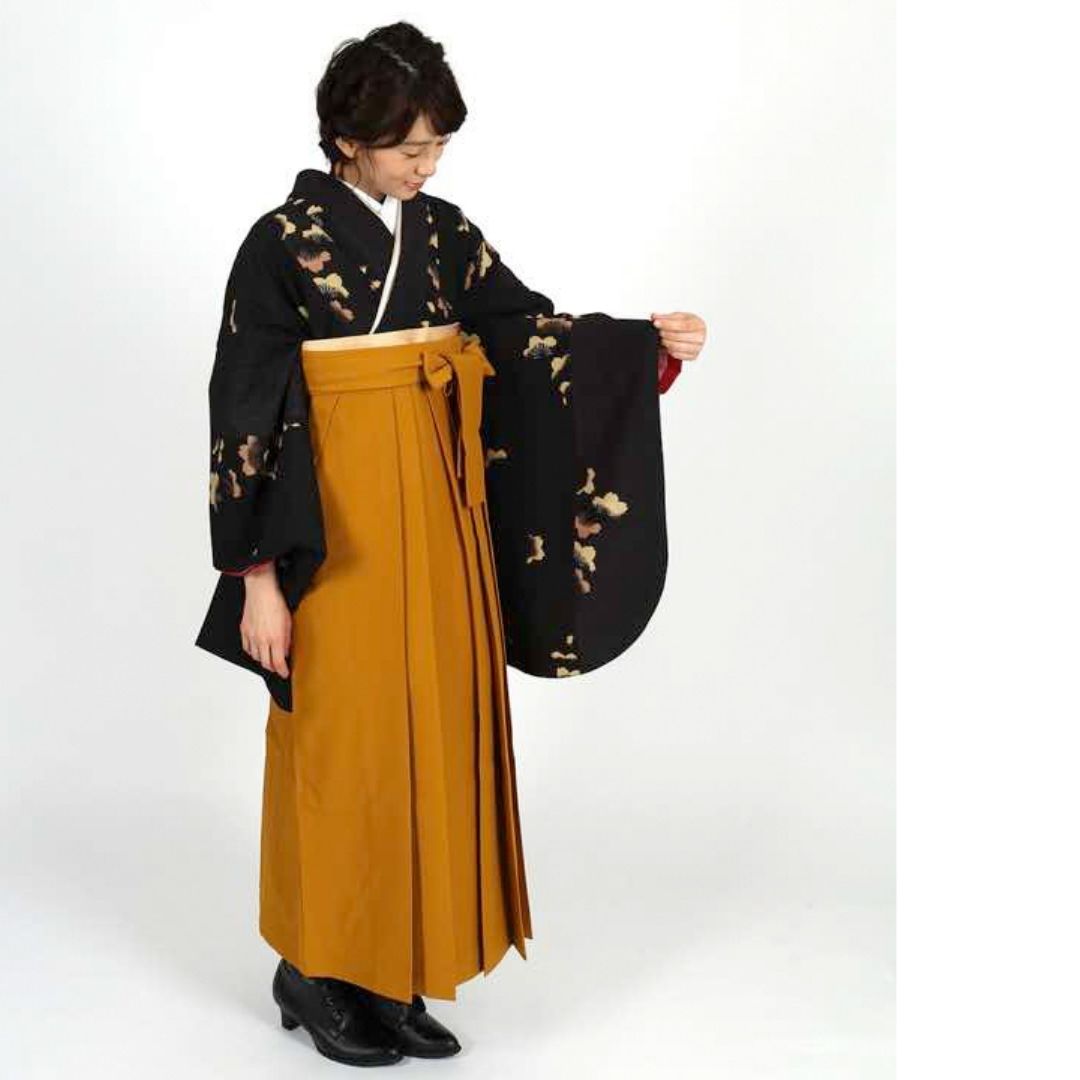 【対応身長 157cm~165cm】 卒業式レンタル袴フルセット-1006 花柄 黒 からし色