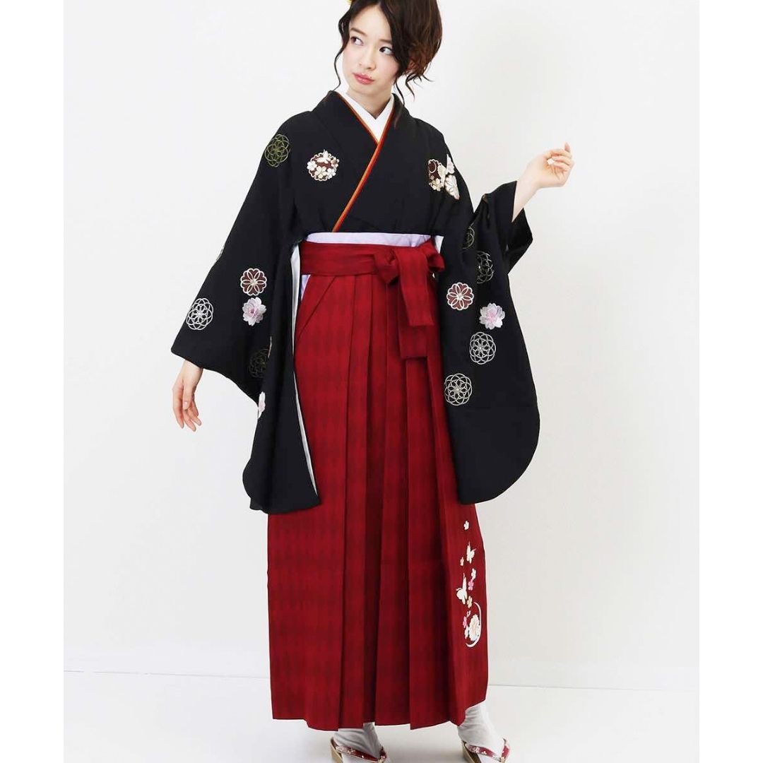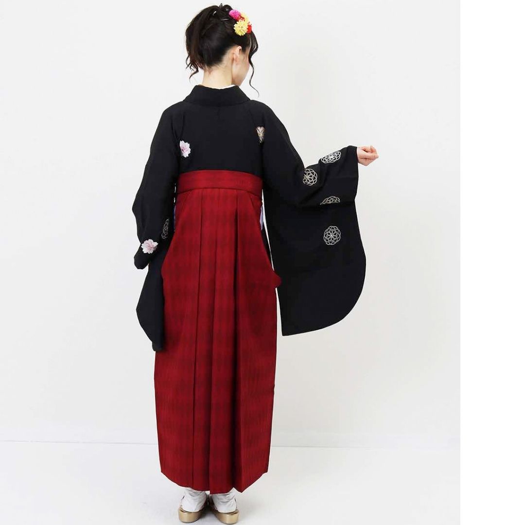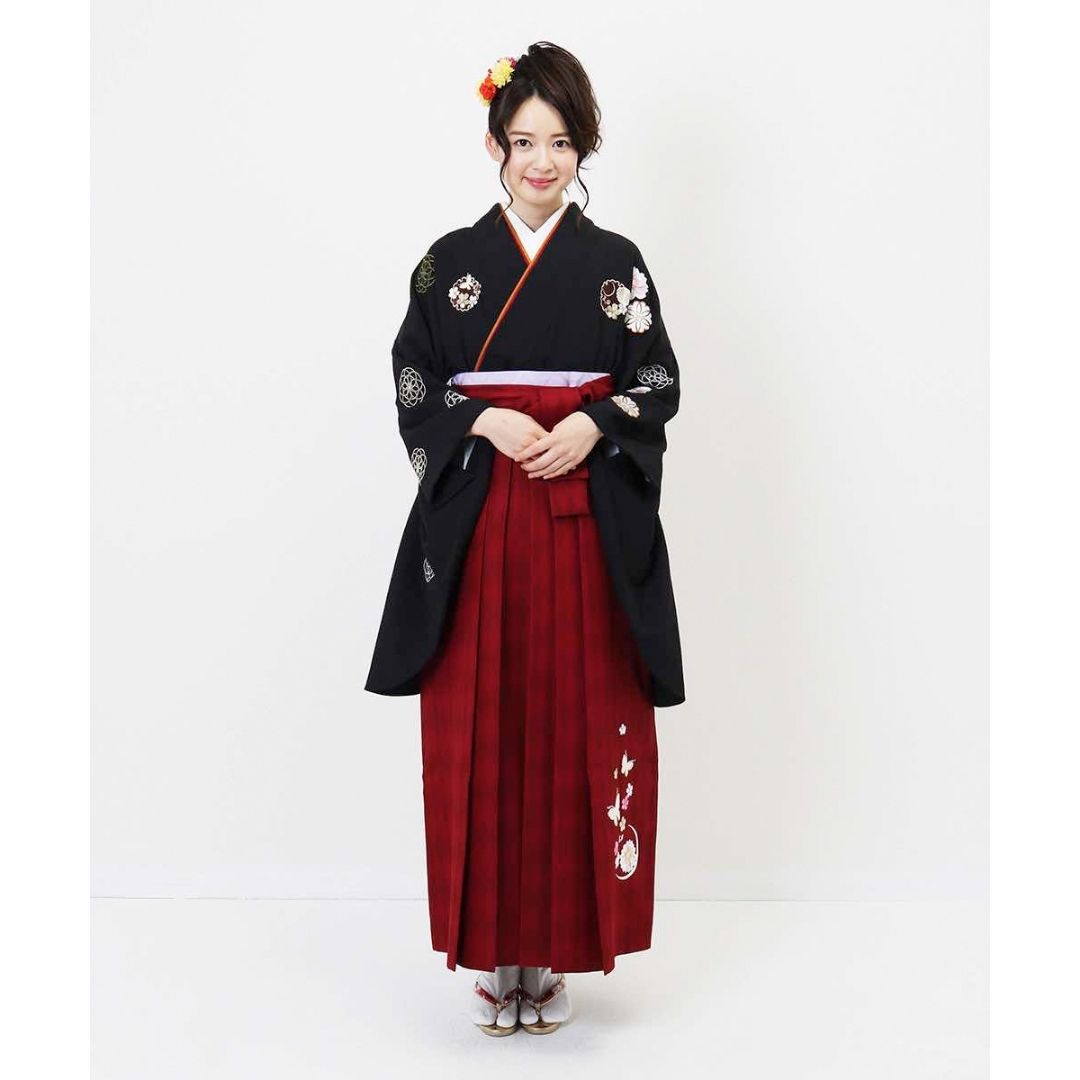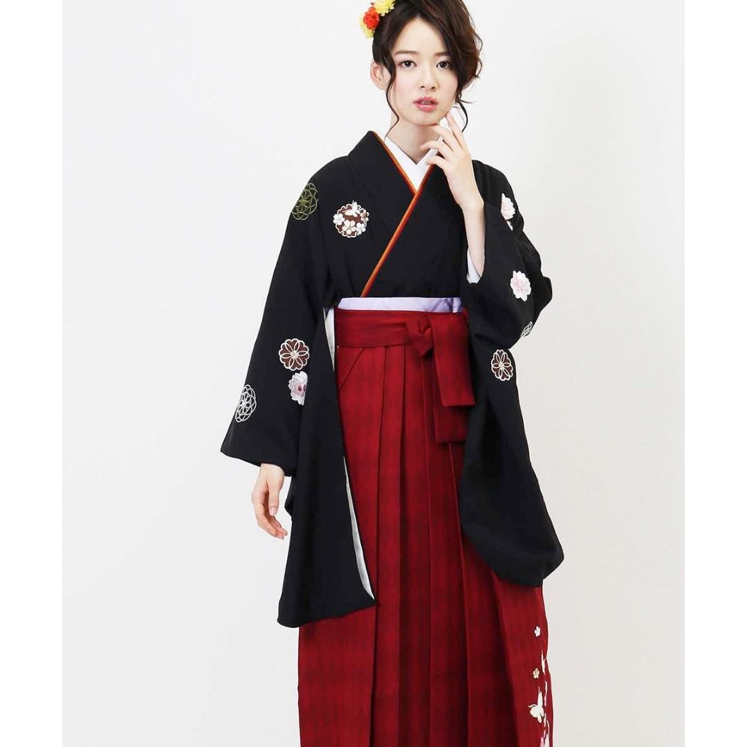 【対応身長 157cm~165cm】【レトロ】 卒業式レンタル袴フルセット-1156 マルチカラー 花柄 桜 黒 赤