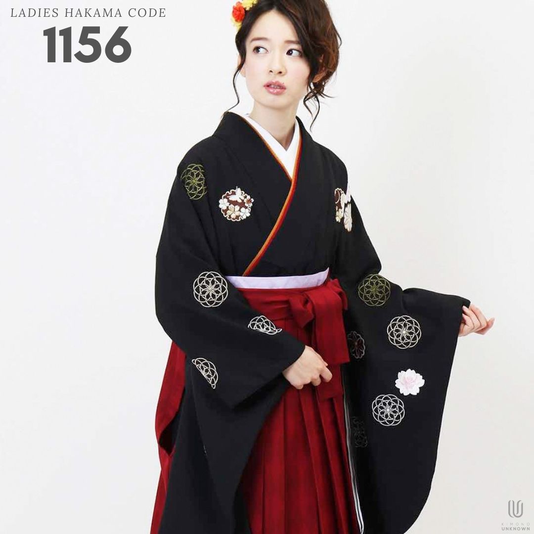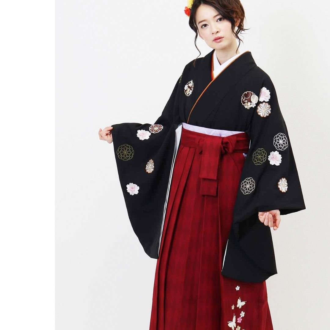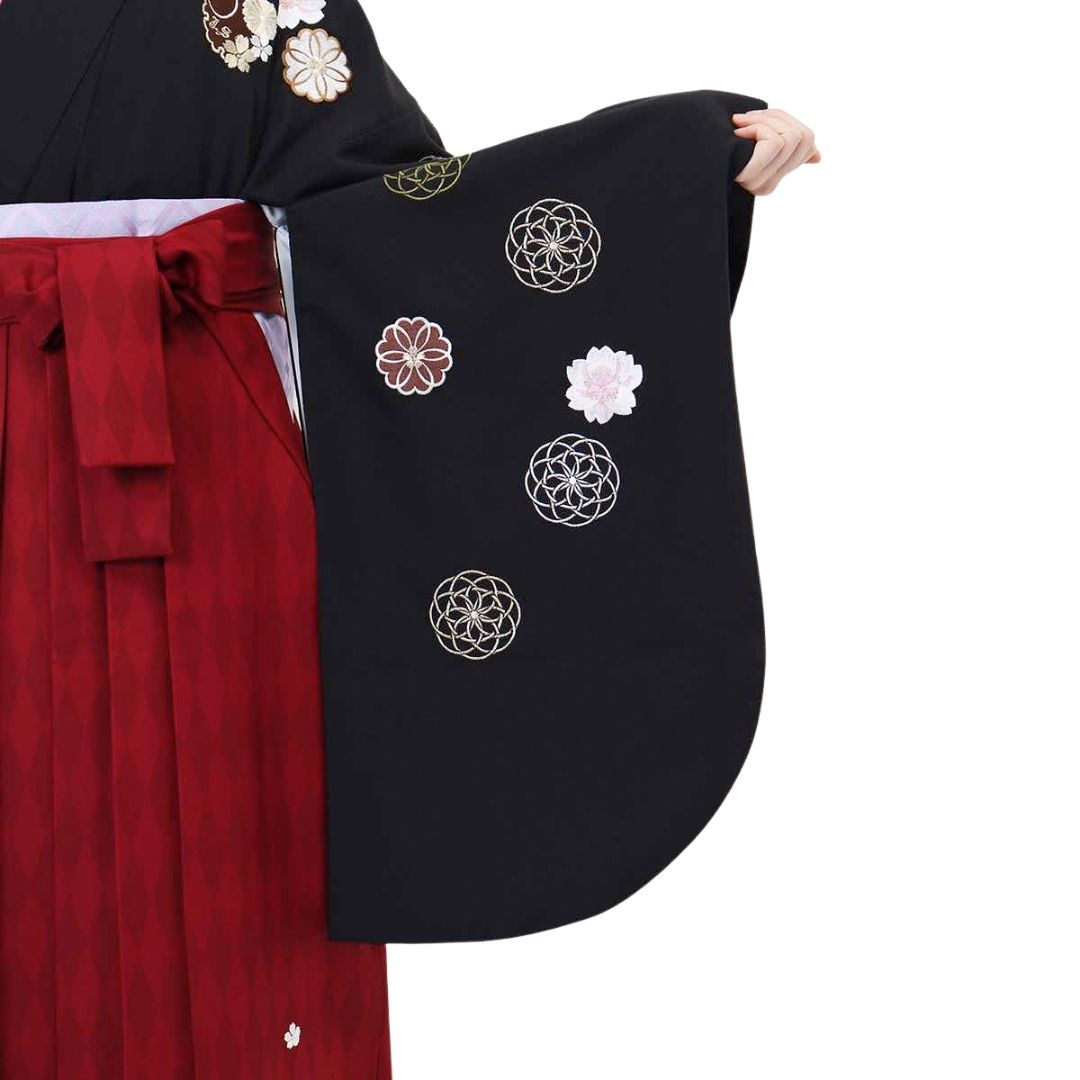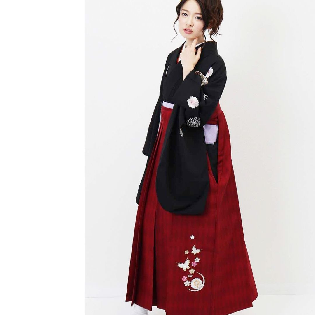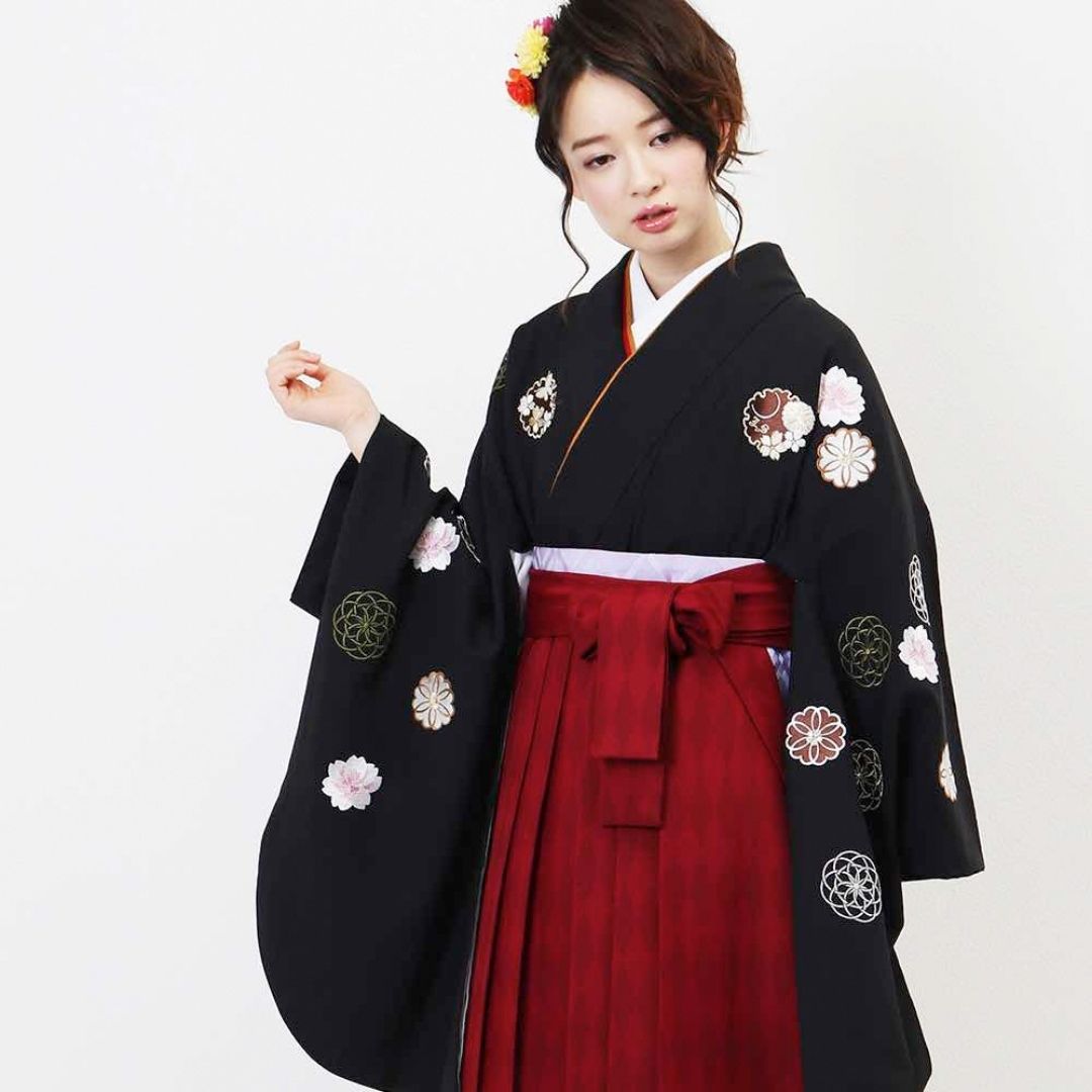 【対応身長 157cm~165cm】【レトロ】 卒業式レンタル袴フルセット-1156 マルチカラー 花柄 桜 黒 赤