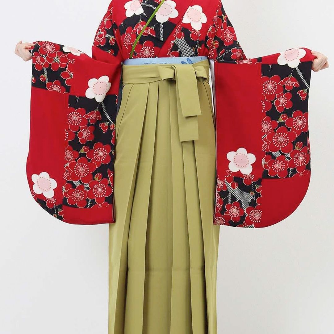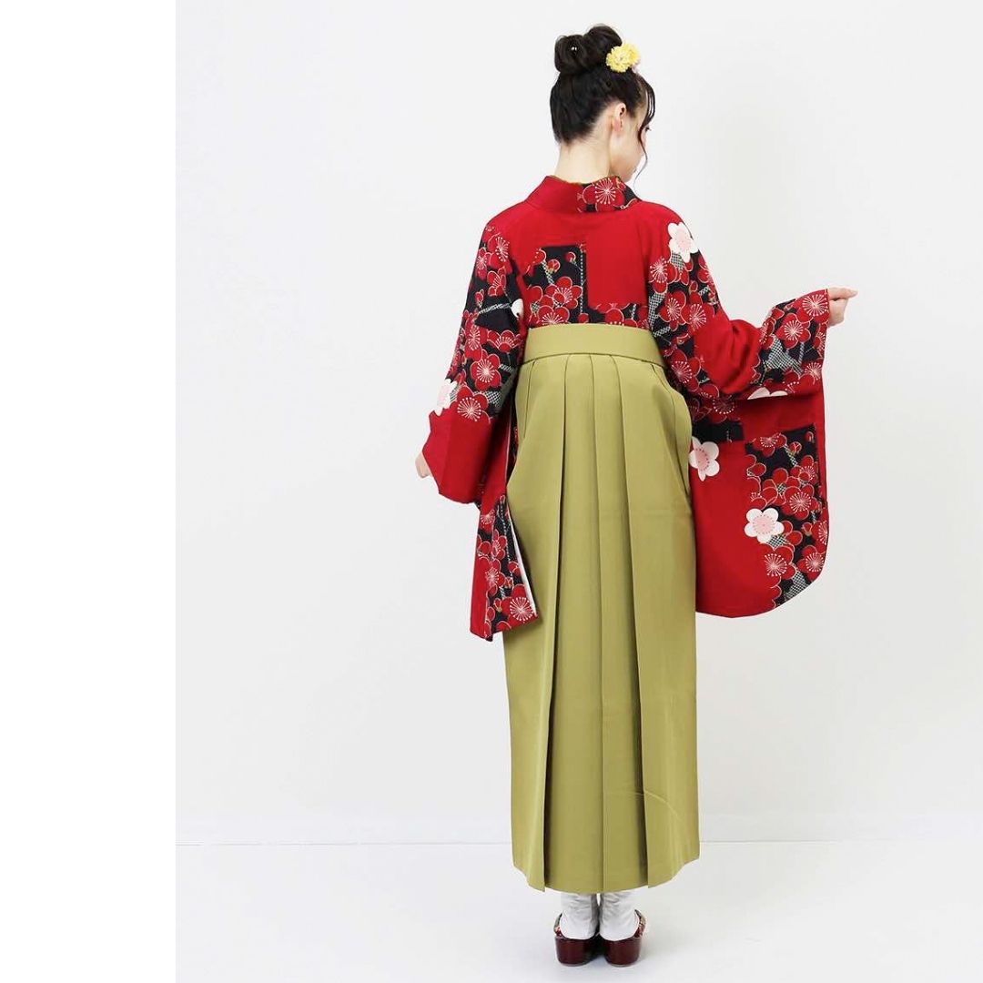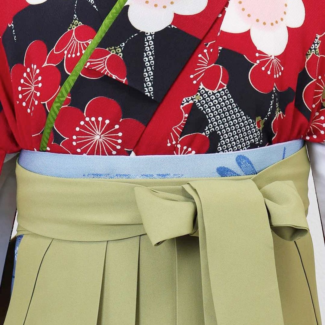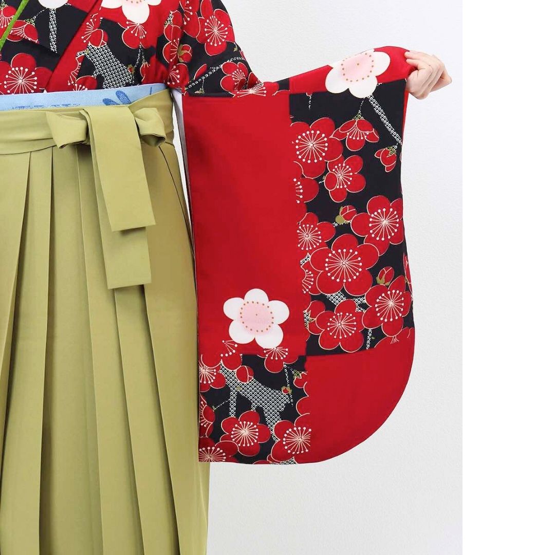 【対応身長 157cm~165cm】【レトロ】 卒業式レンタル袴フルセット-1182 マルチカラー 花柄 梅 市松 赤 緑