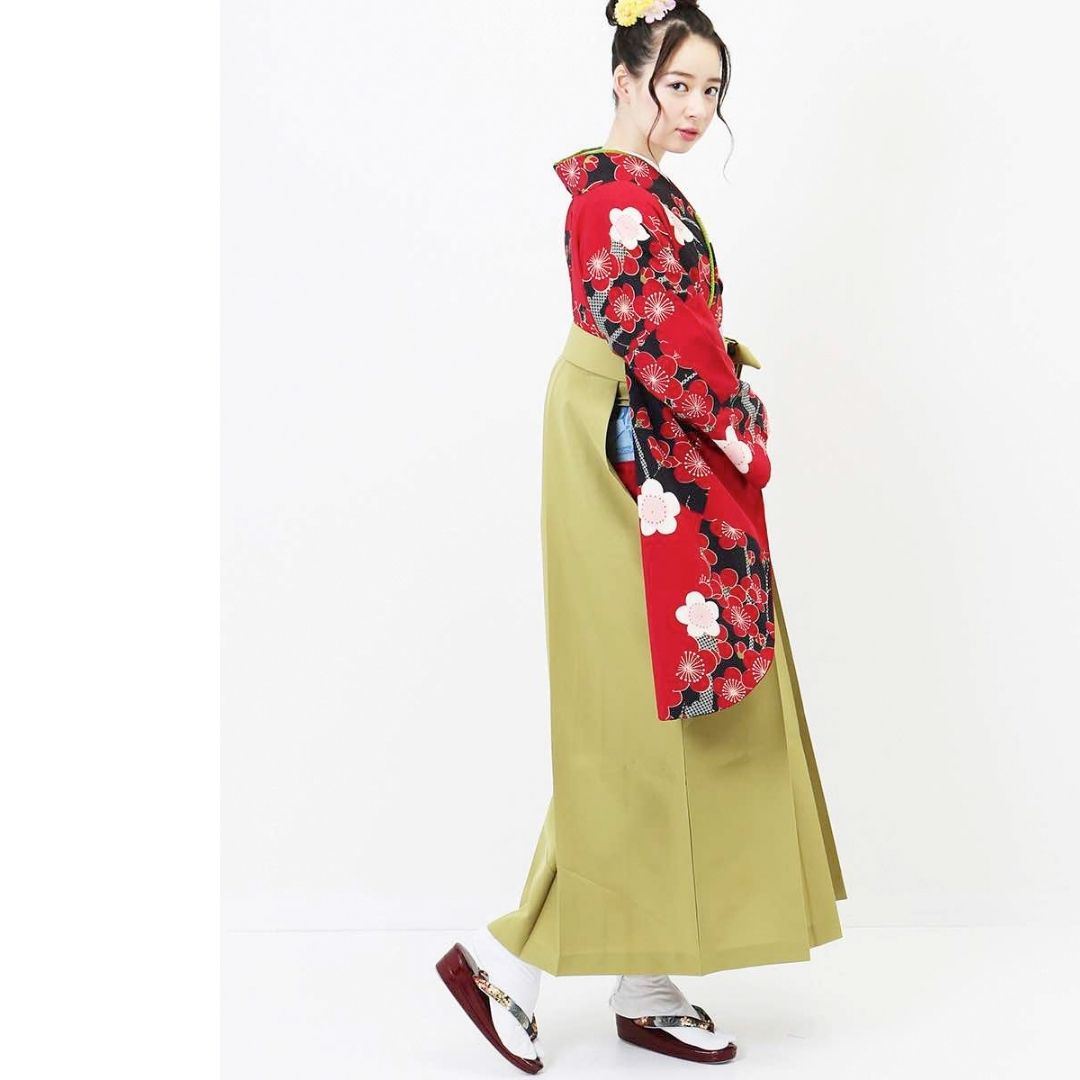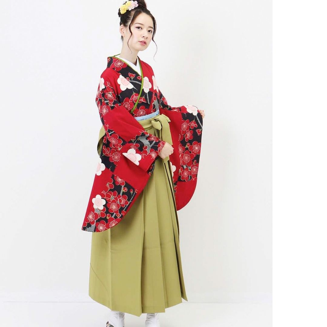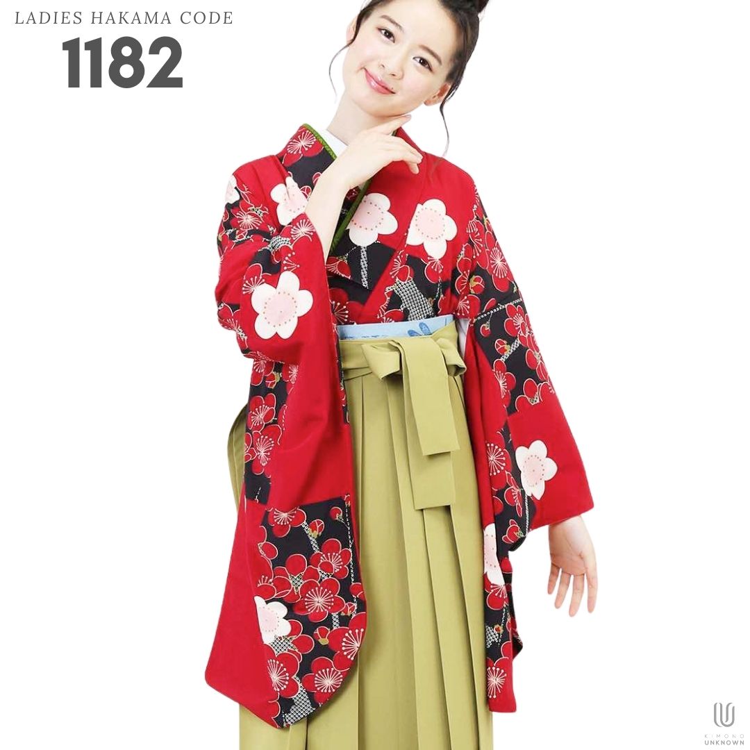 【対応身長 157cm~165cm】【レトロ】 卒業式レンタル袴フルセット-1182 マルチカラー 花柄 梅 市松 赤 緑