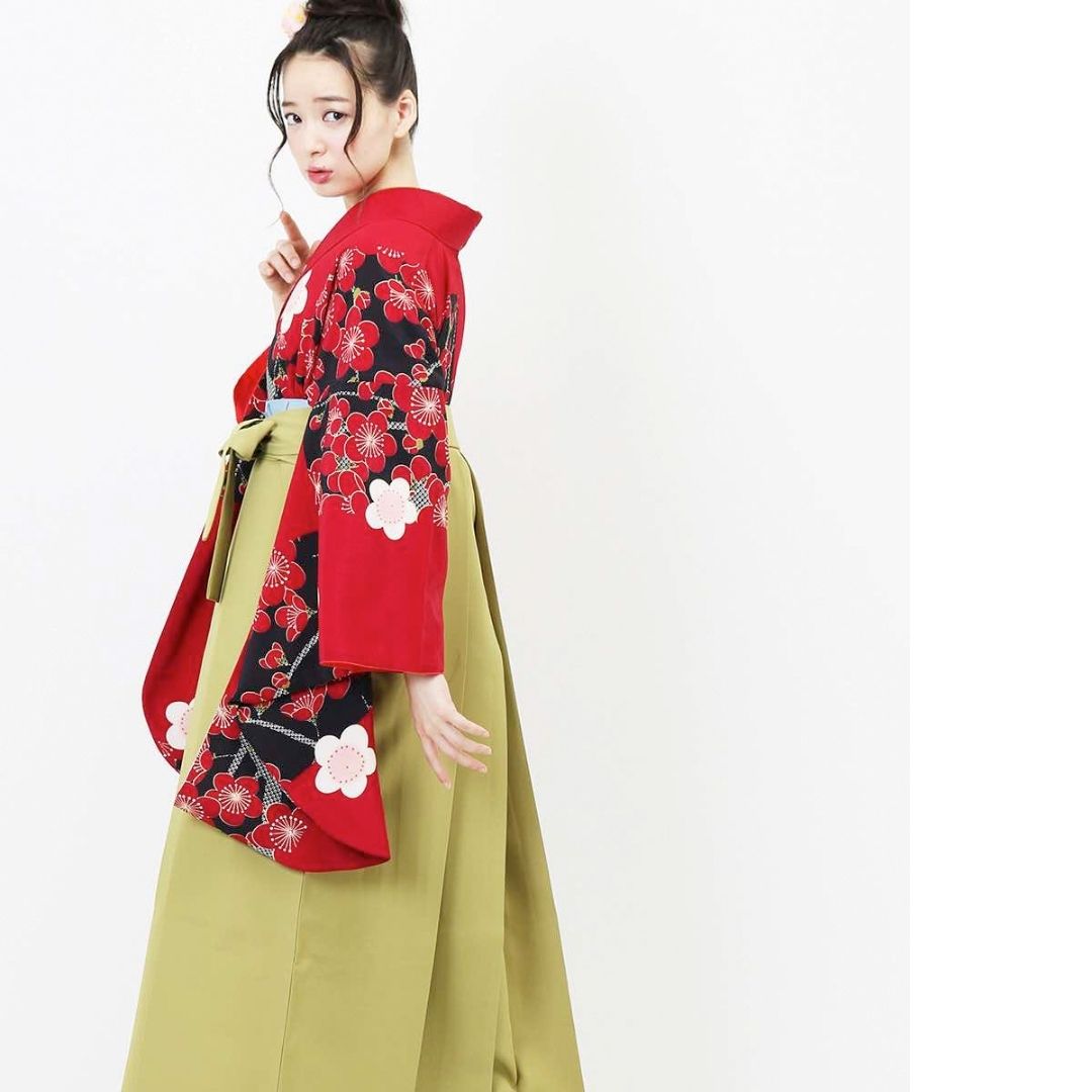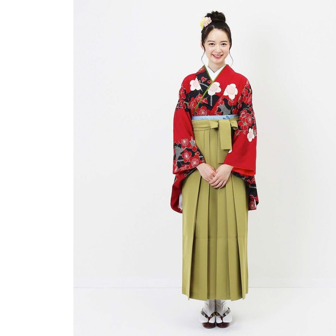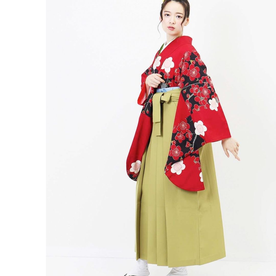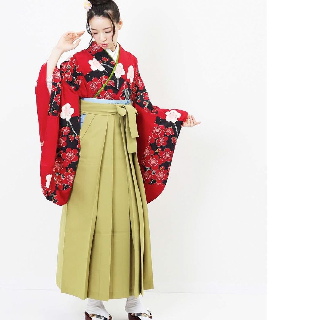 【対応身長 157cm~165cm】【レトロ】 卒業式レンタル袴フルセット-1182 マルチカラー 花柄 梅 市松 赤 緑