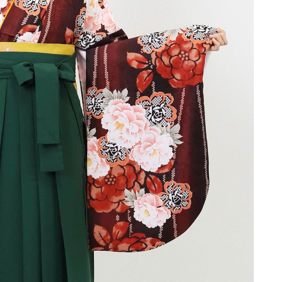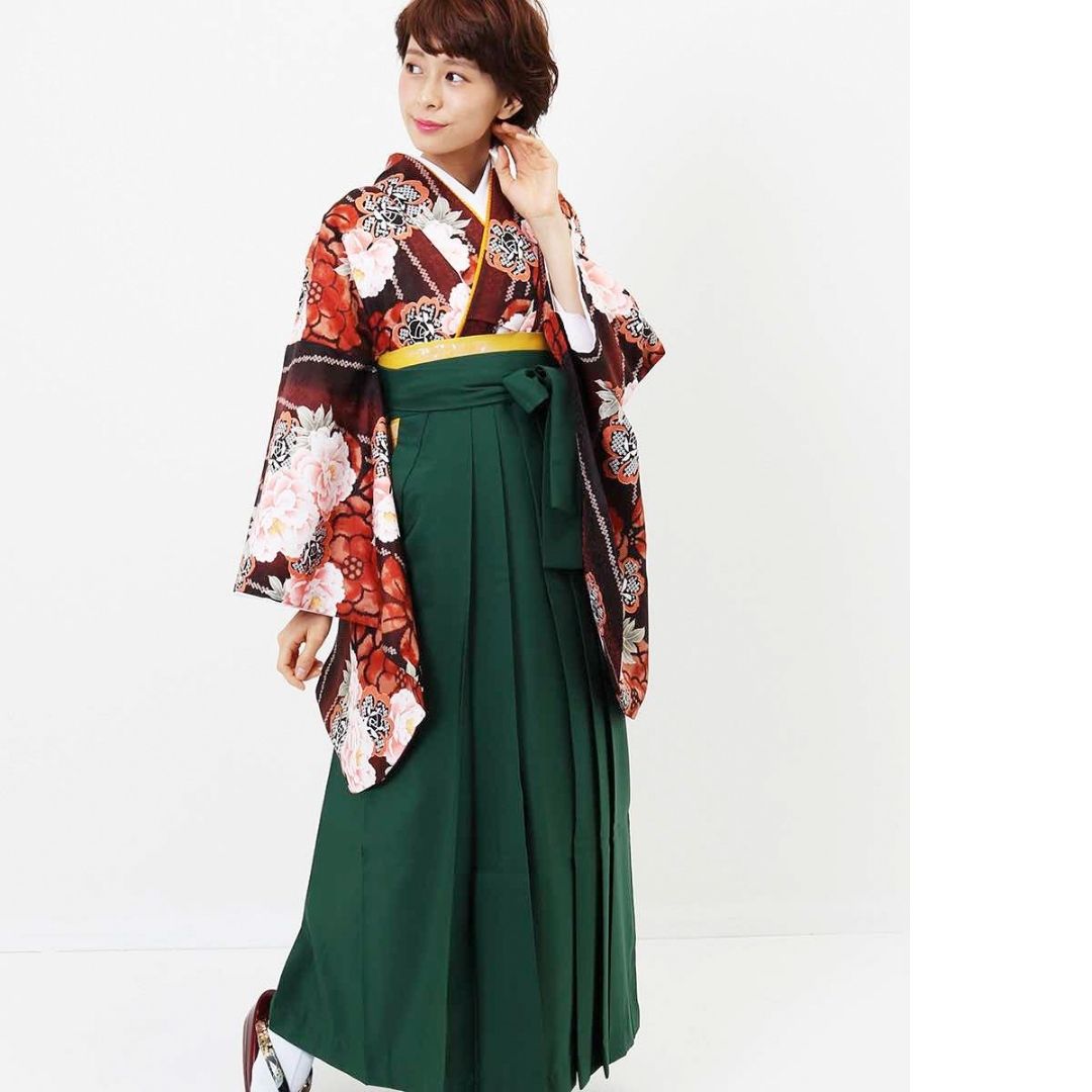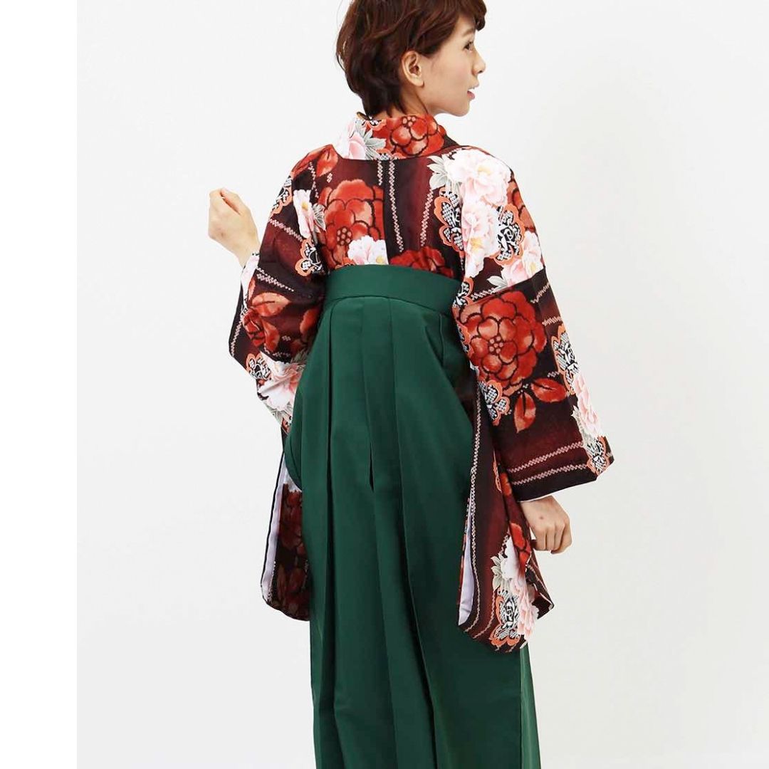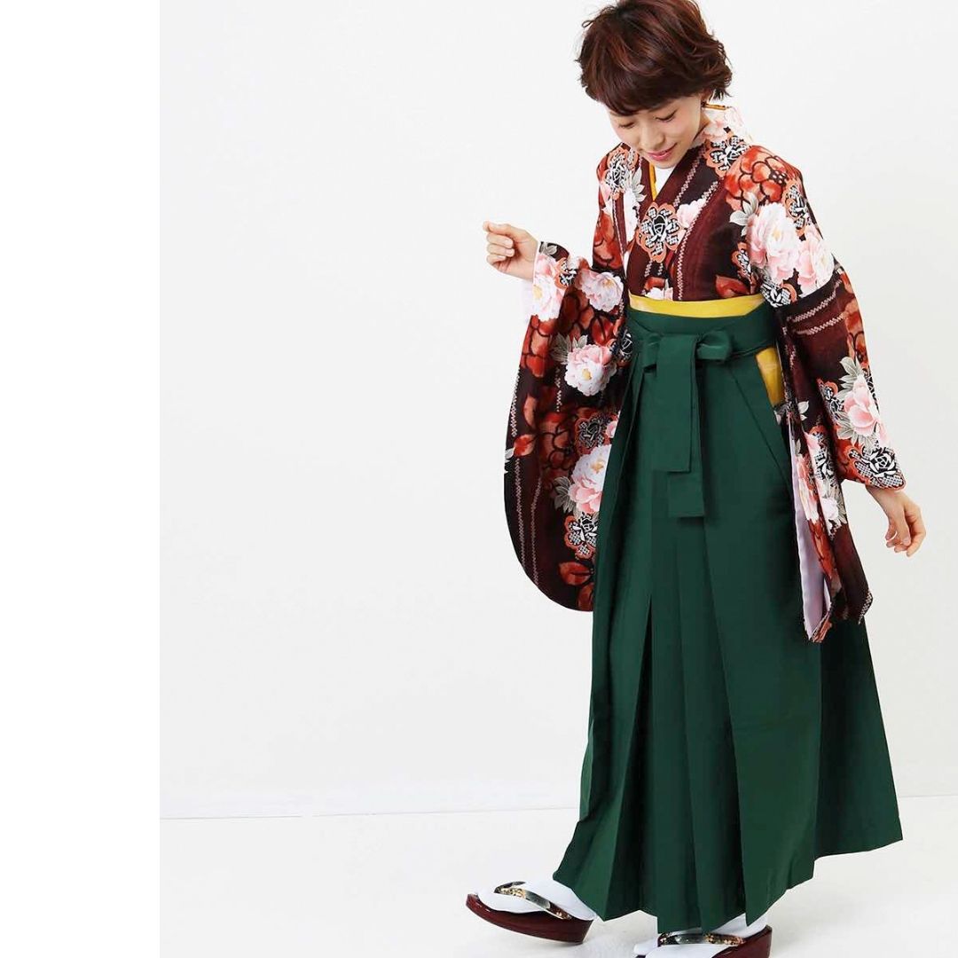 【対応身長 157cm~165cm】【レトロ】 卒業式レンタル袴フルセット-1245 マルチカラー 花柄 牡丹 ブラウン 緑