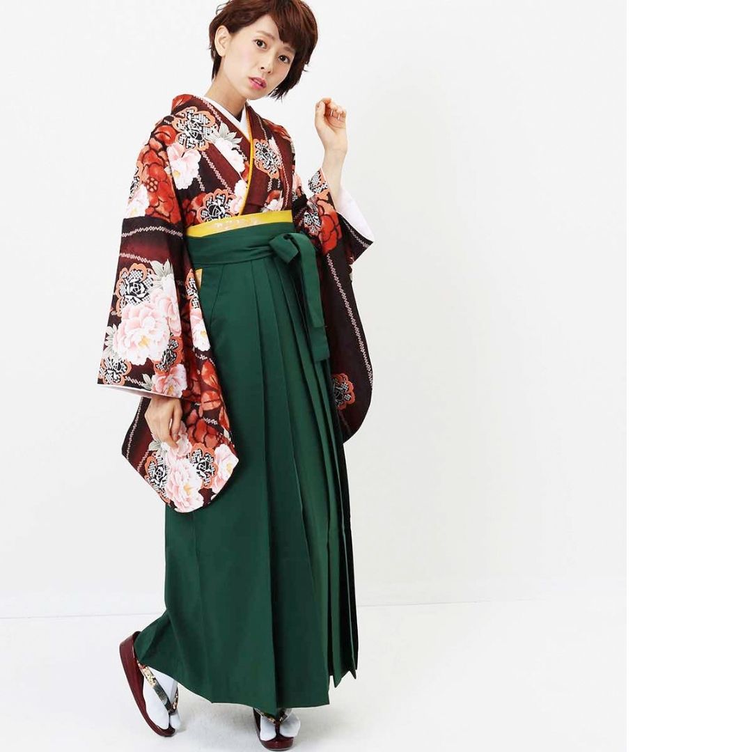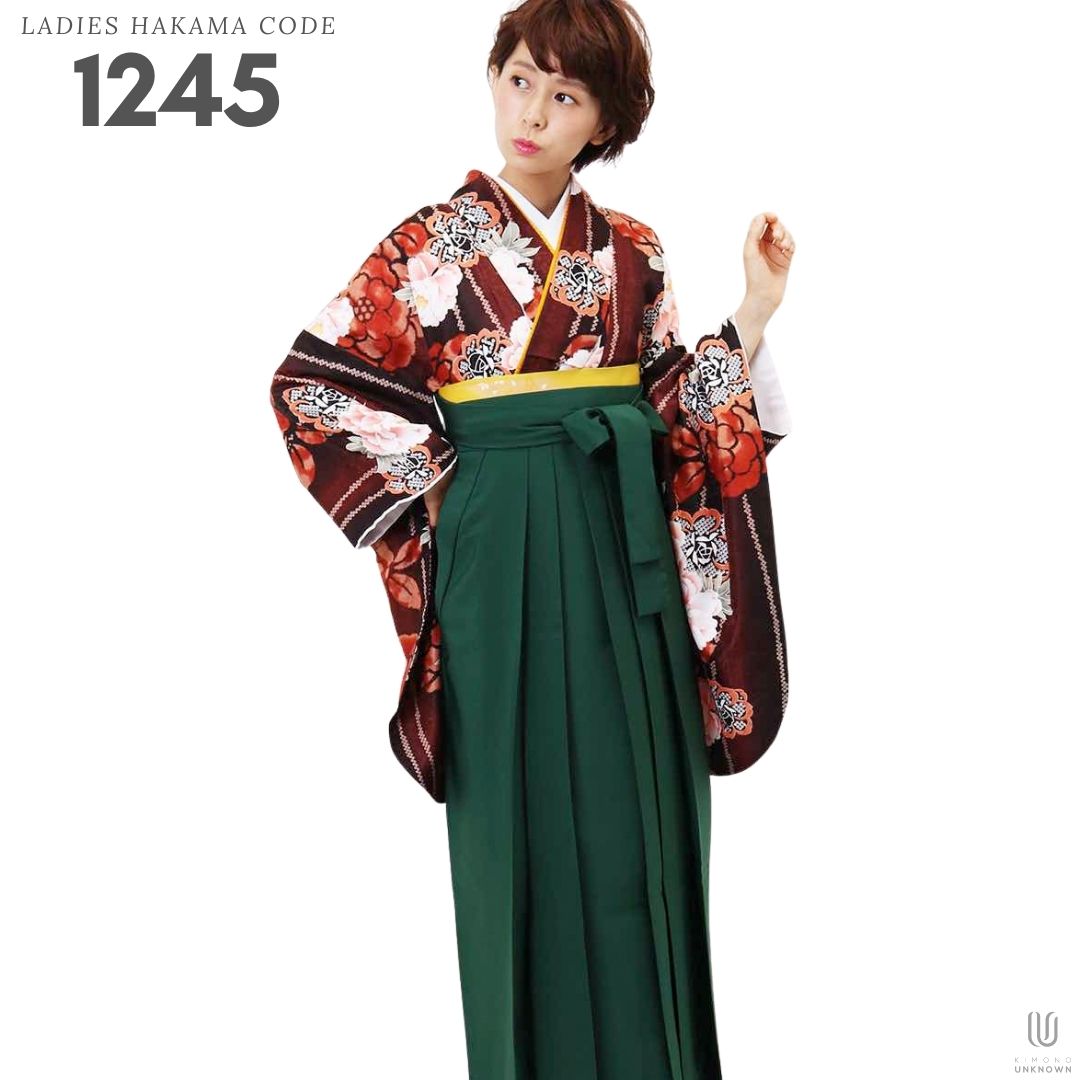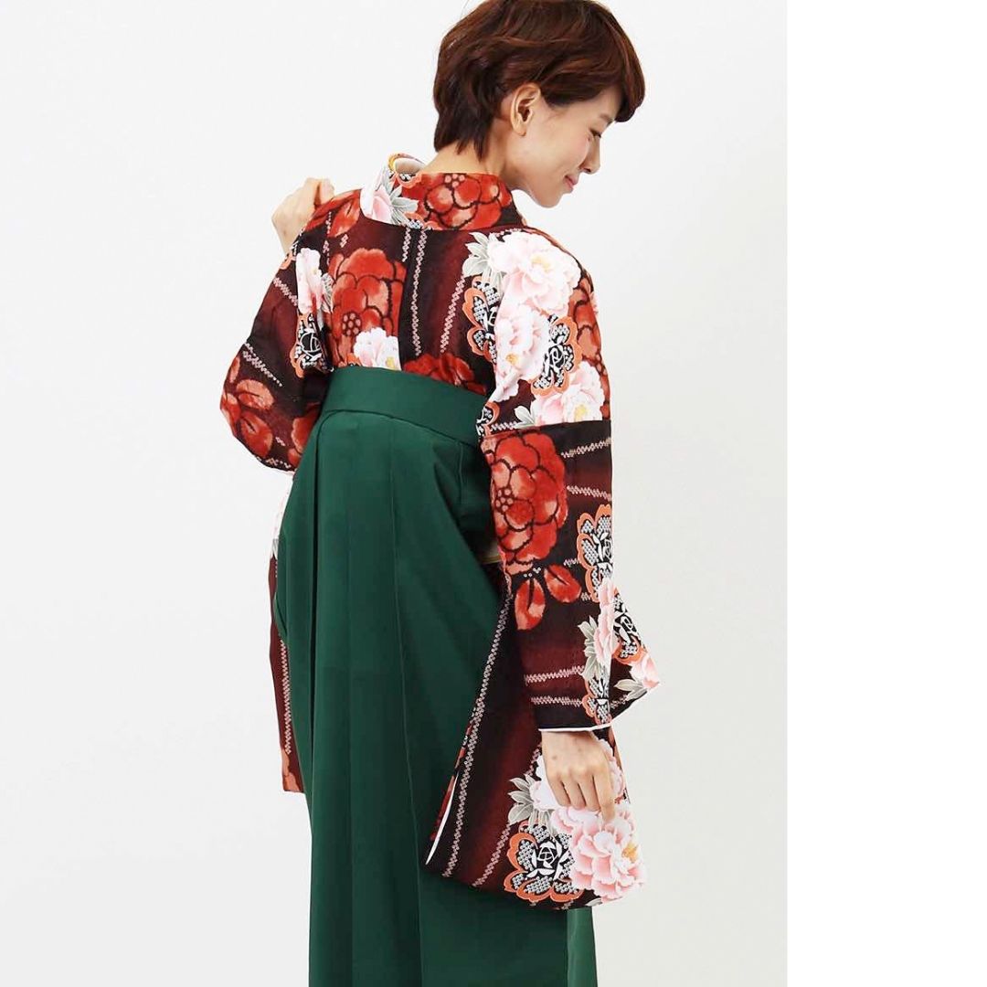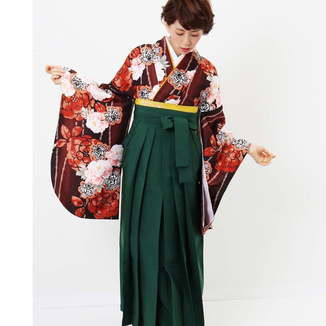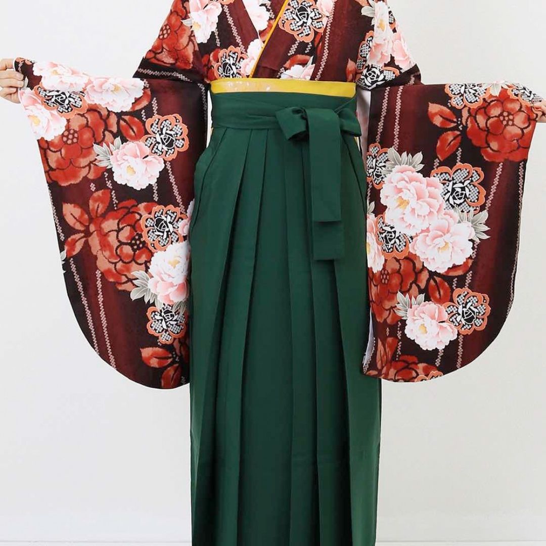 【対応身長 157cm~165cm】【レトロ】 卒業式レンタル袴フルセット-1245 マルチカラー 花柄 牡丹 ブラウン 緑