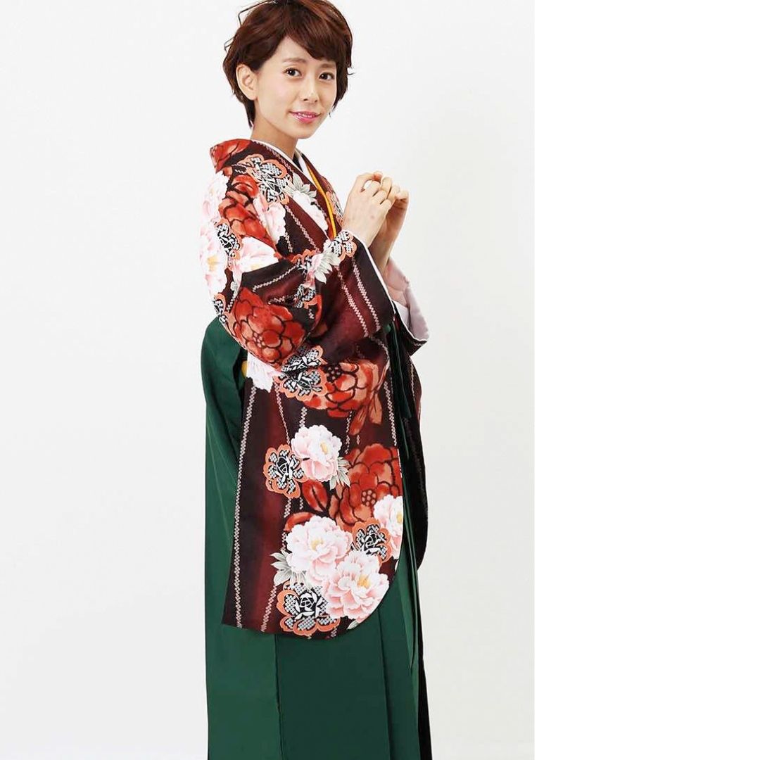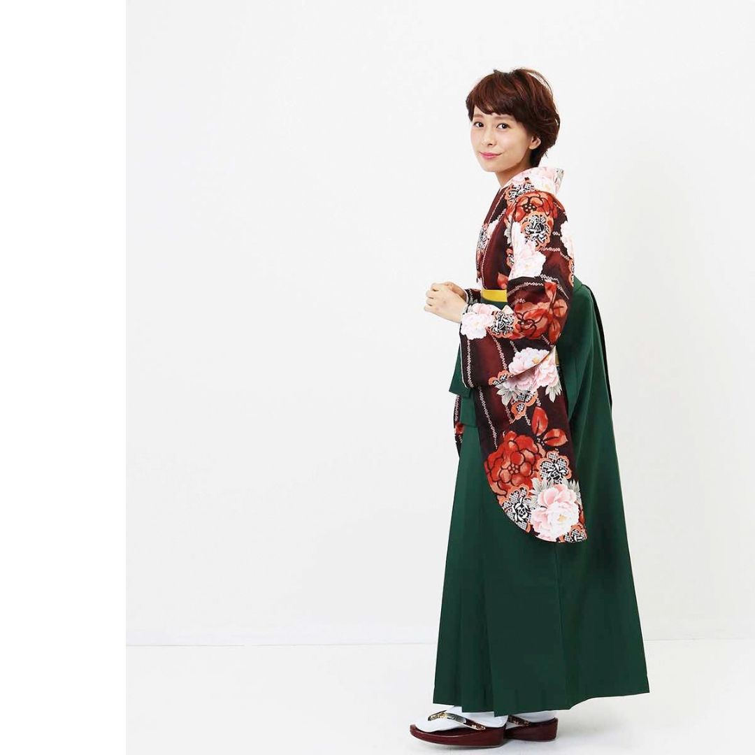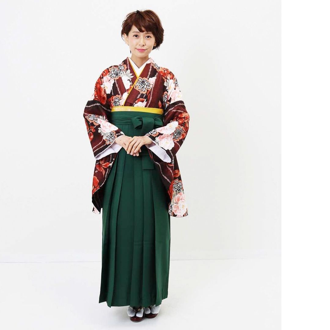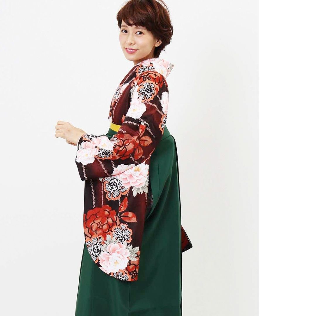 【対応身長 157cm~165cm】【レトロ】 卒業式レンタル袴フルセット-1245 マルチカラー 花柄 牡丹 ブラウン 緑