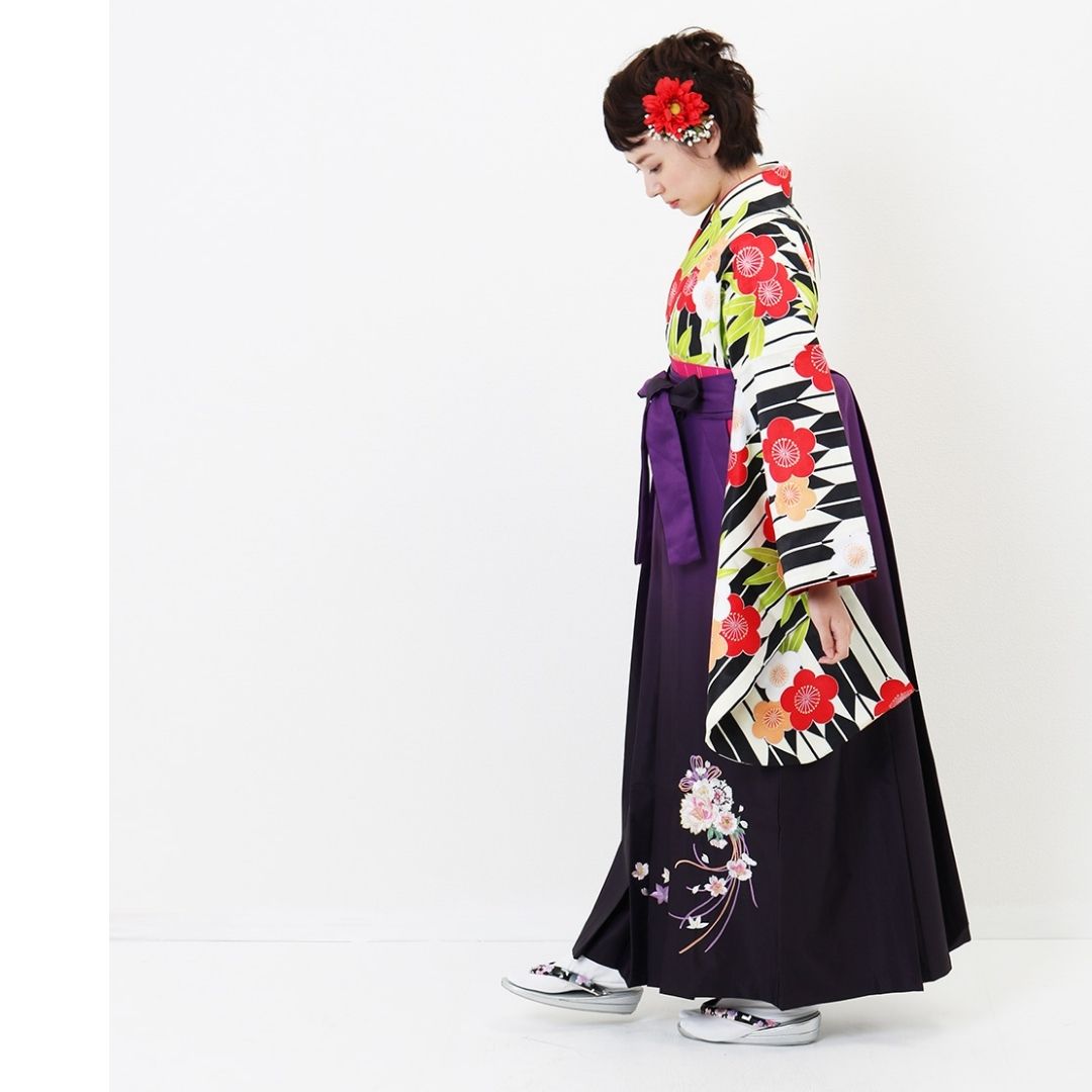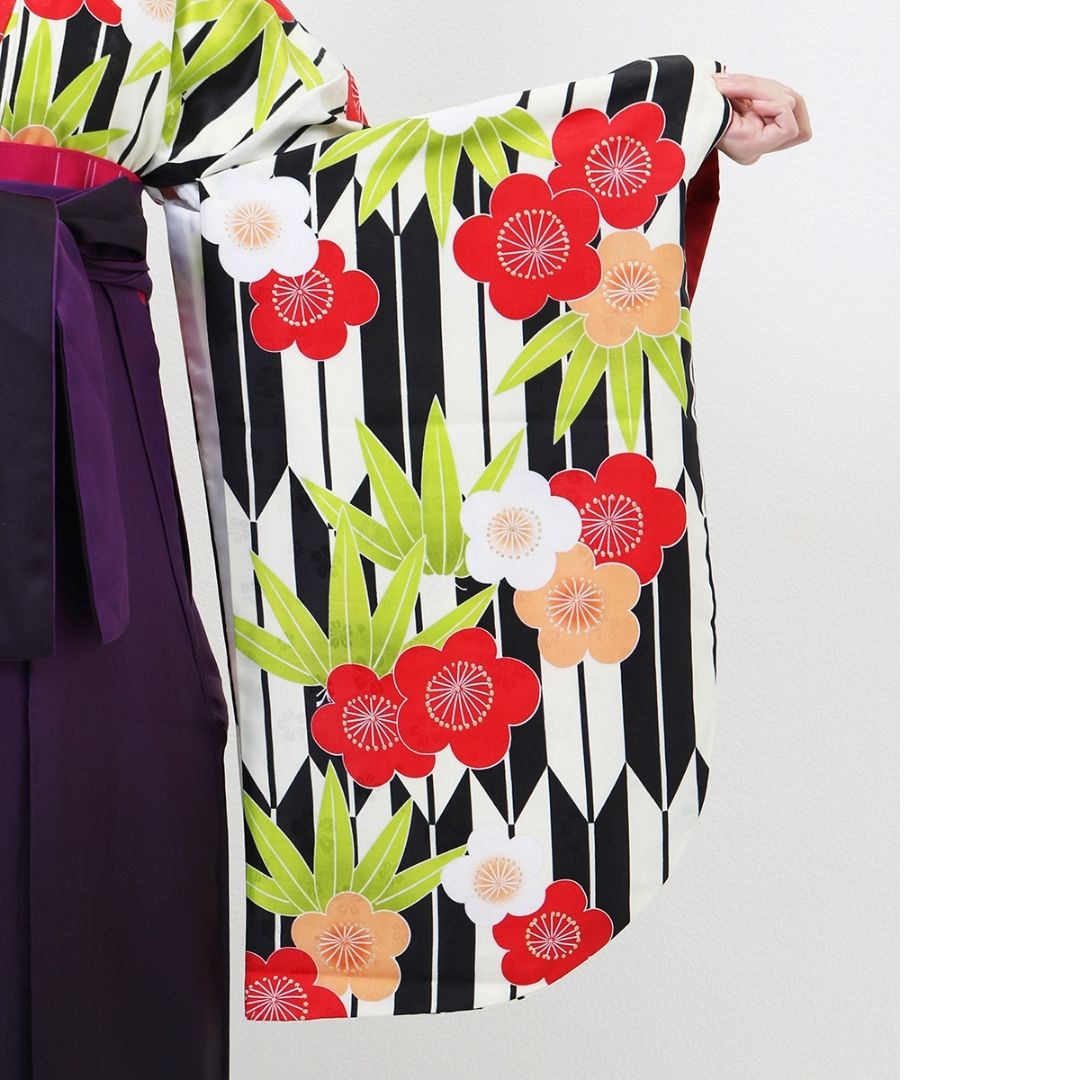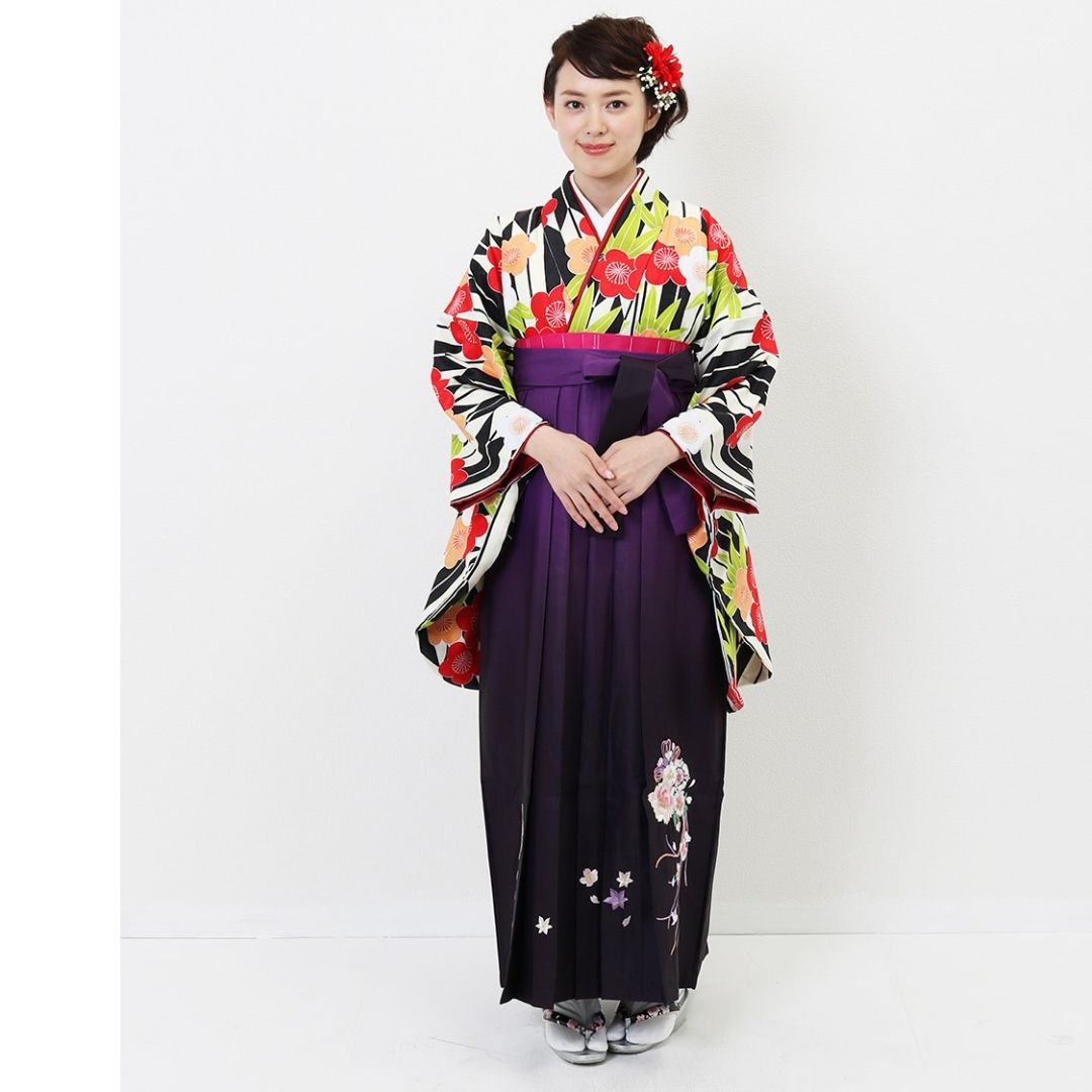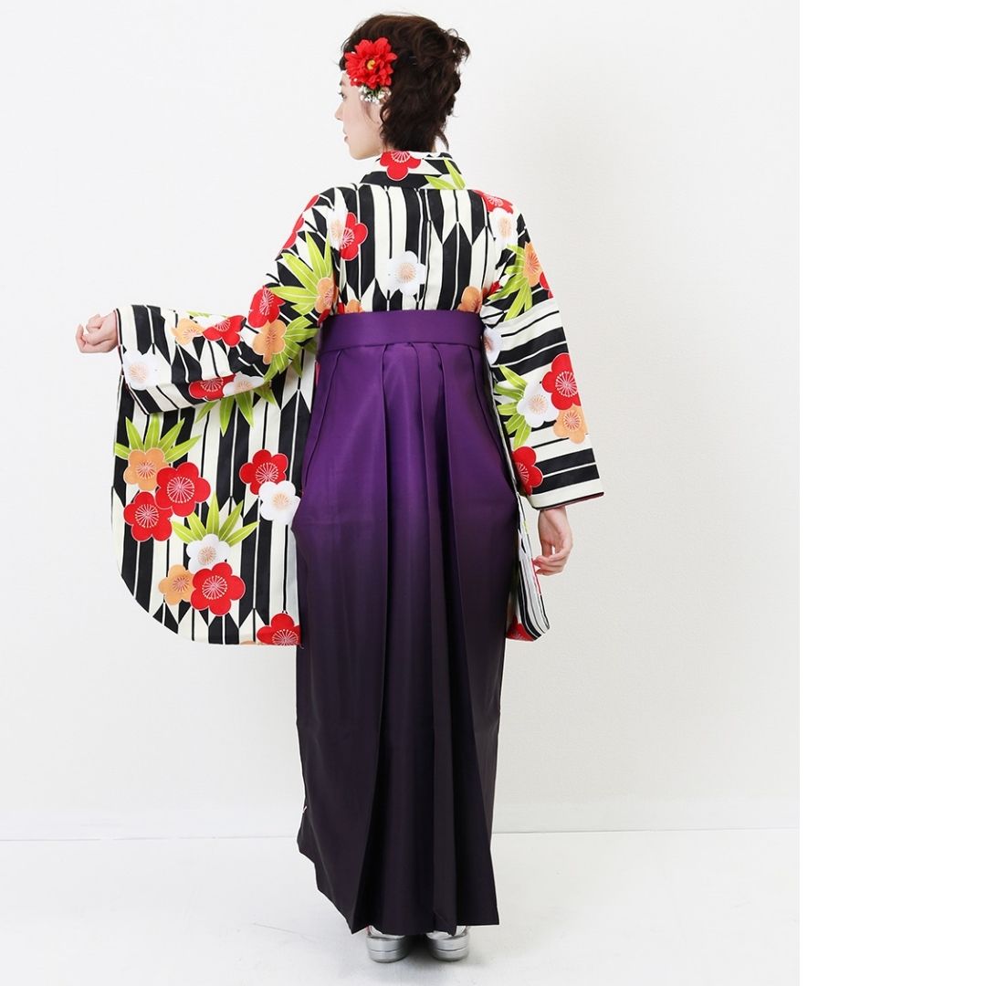 【対応身長 157cm~165cm】【レトロ】 卒業式レンタル袴フルセット-1260 マルチカラー 花柄 梅 松 白 黒 赤 緑 紫