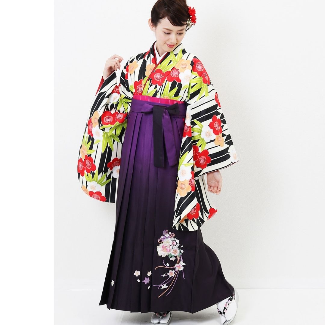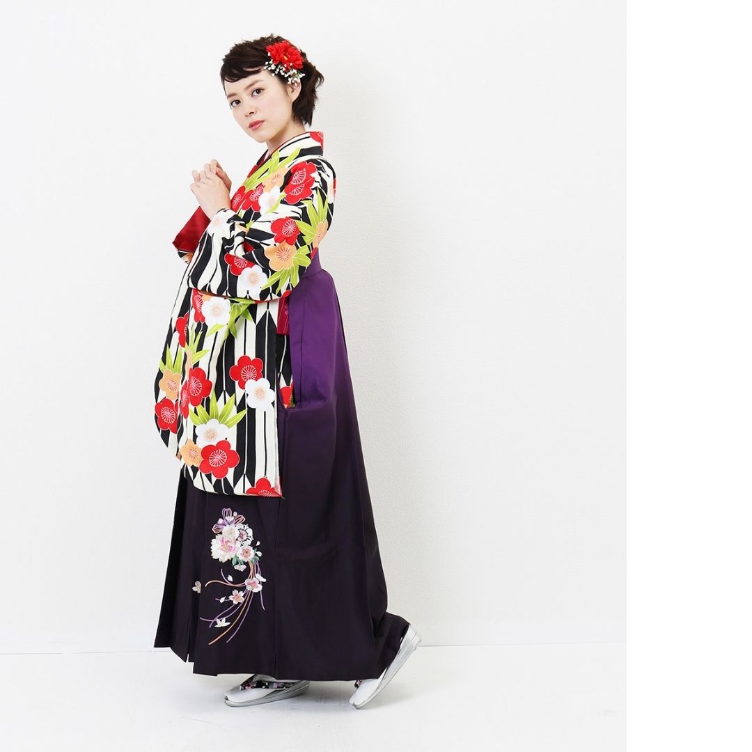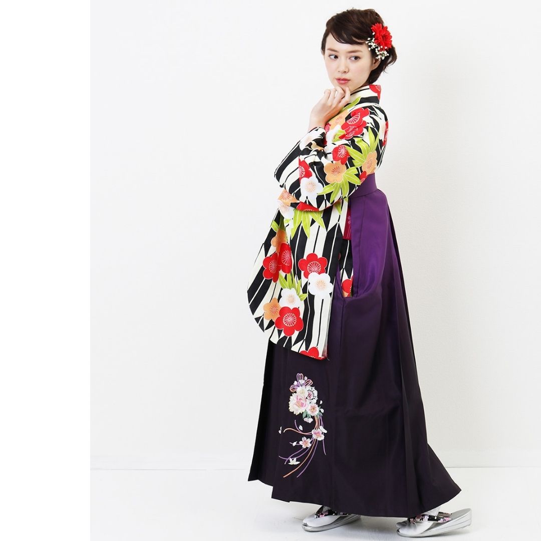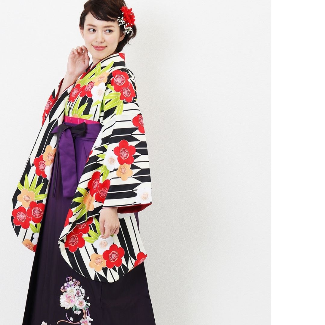 【対応身長 157cm~165cm】【レトロ】 卒業式レンタル袴フルセット-1260 マルチカラー 花柄 梅 松 白 黒 赤 緑 紫