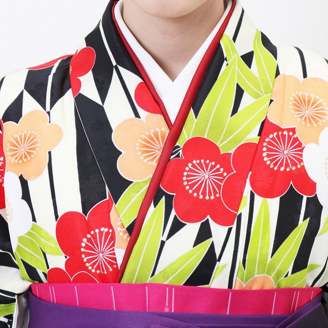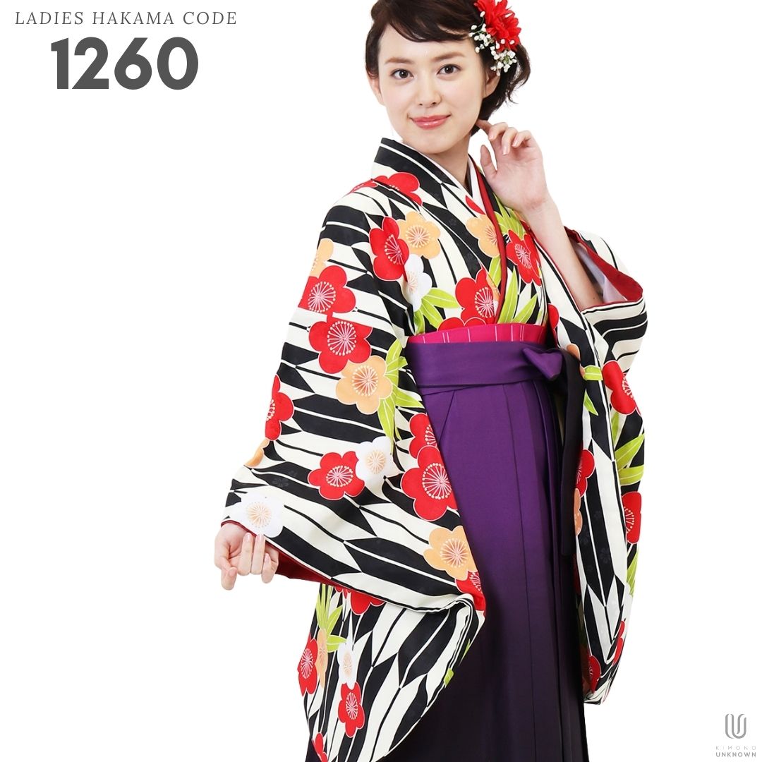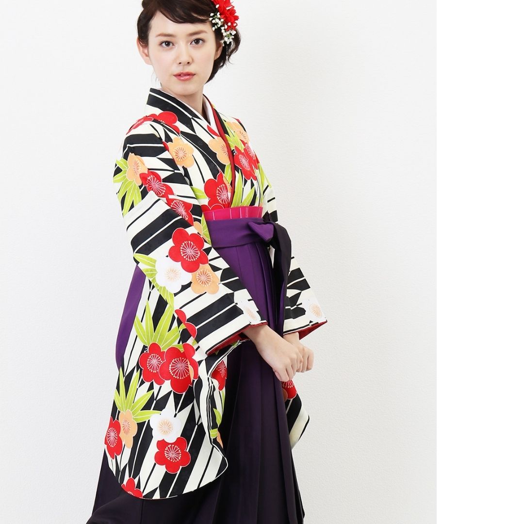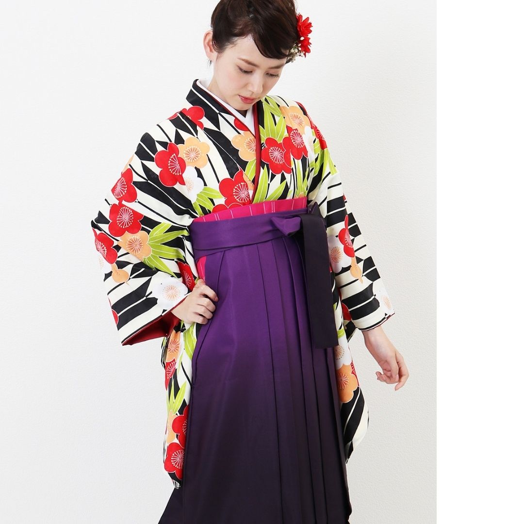 【対応身長 157cm~165cm】【レトロ】 卒業式レンタル袴フルセット-1260 マルチカラー 花柄 梅 松 白 黒 赤 緑 紫