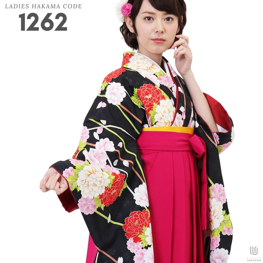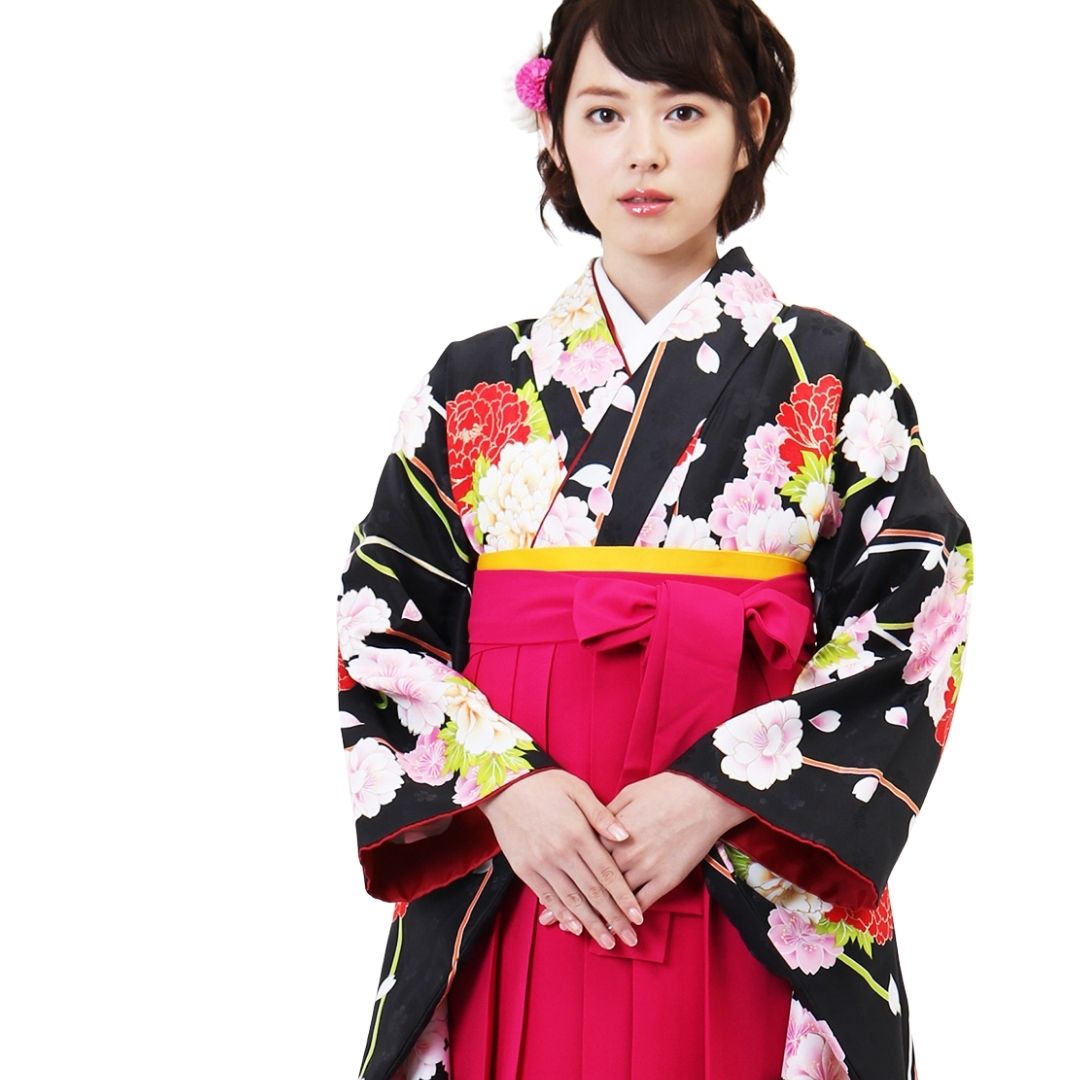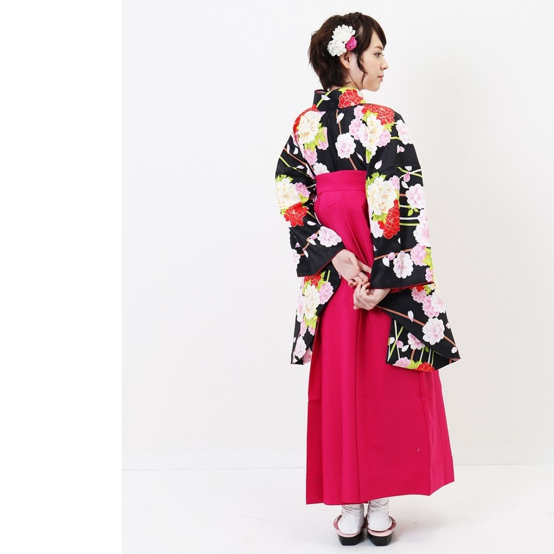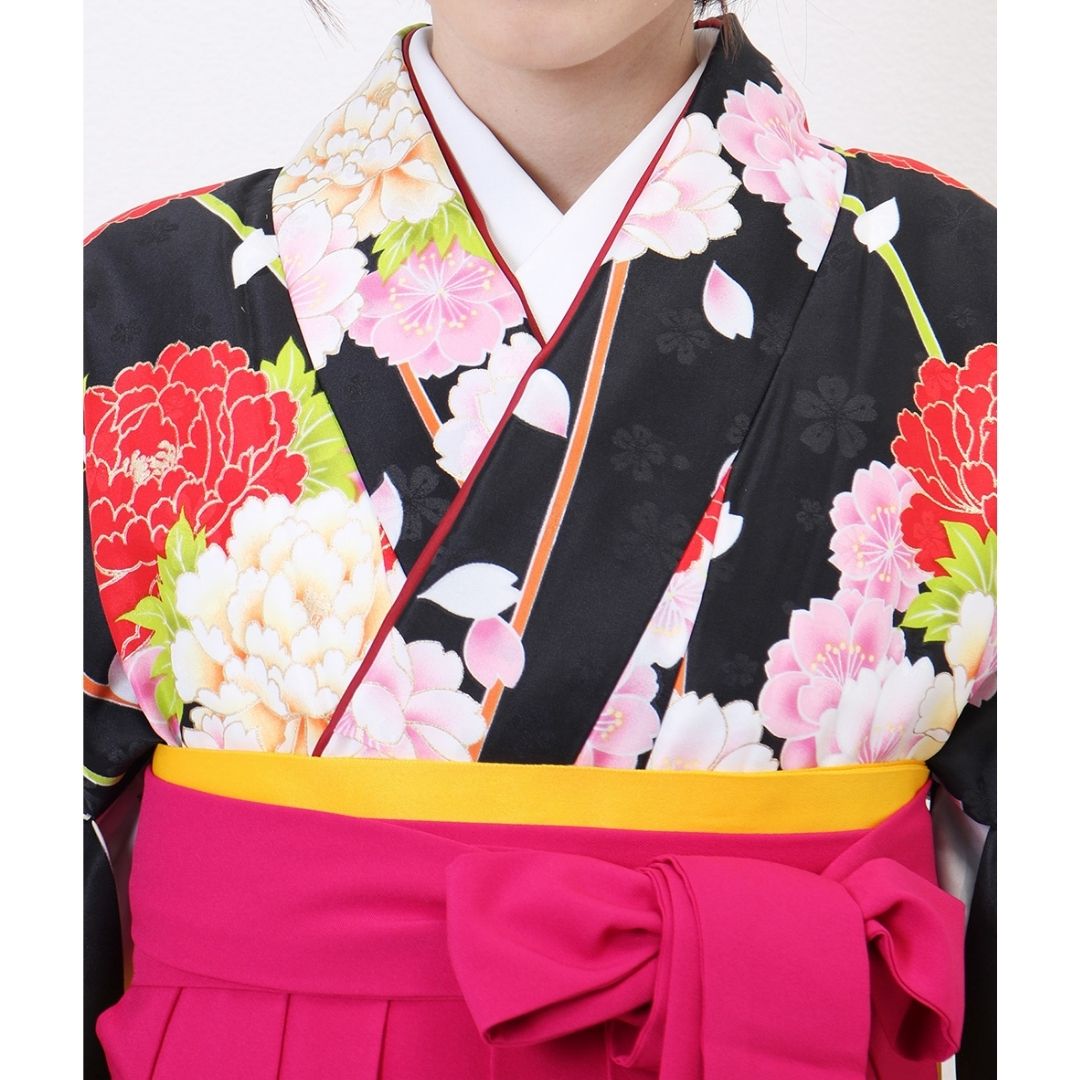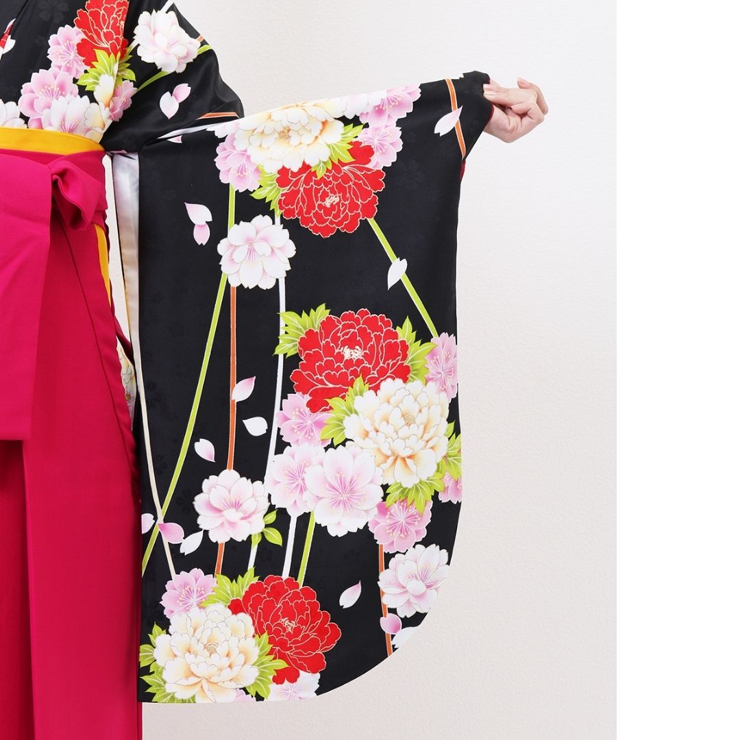 【対応身長 157cm~165cm】【正統派】 卒業式レンタル袴フルセット-1262 マルチカラー 花柄 牡丹 黒 ピンク 白
