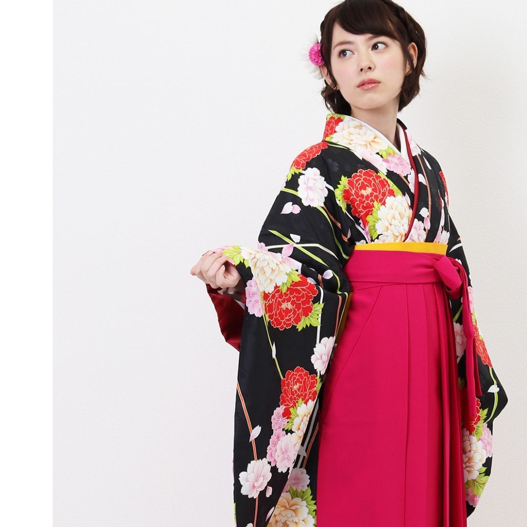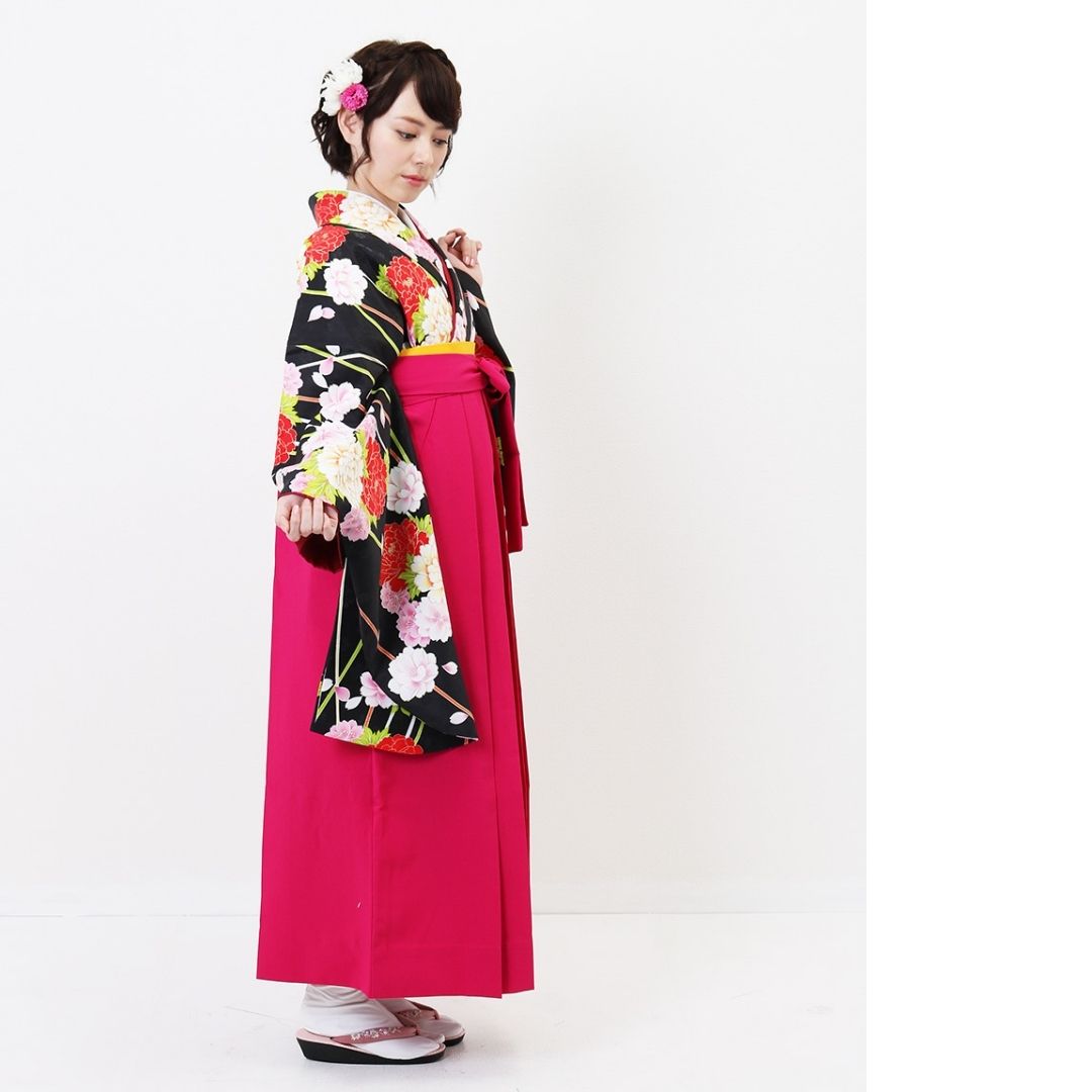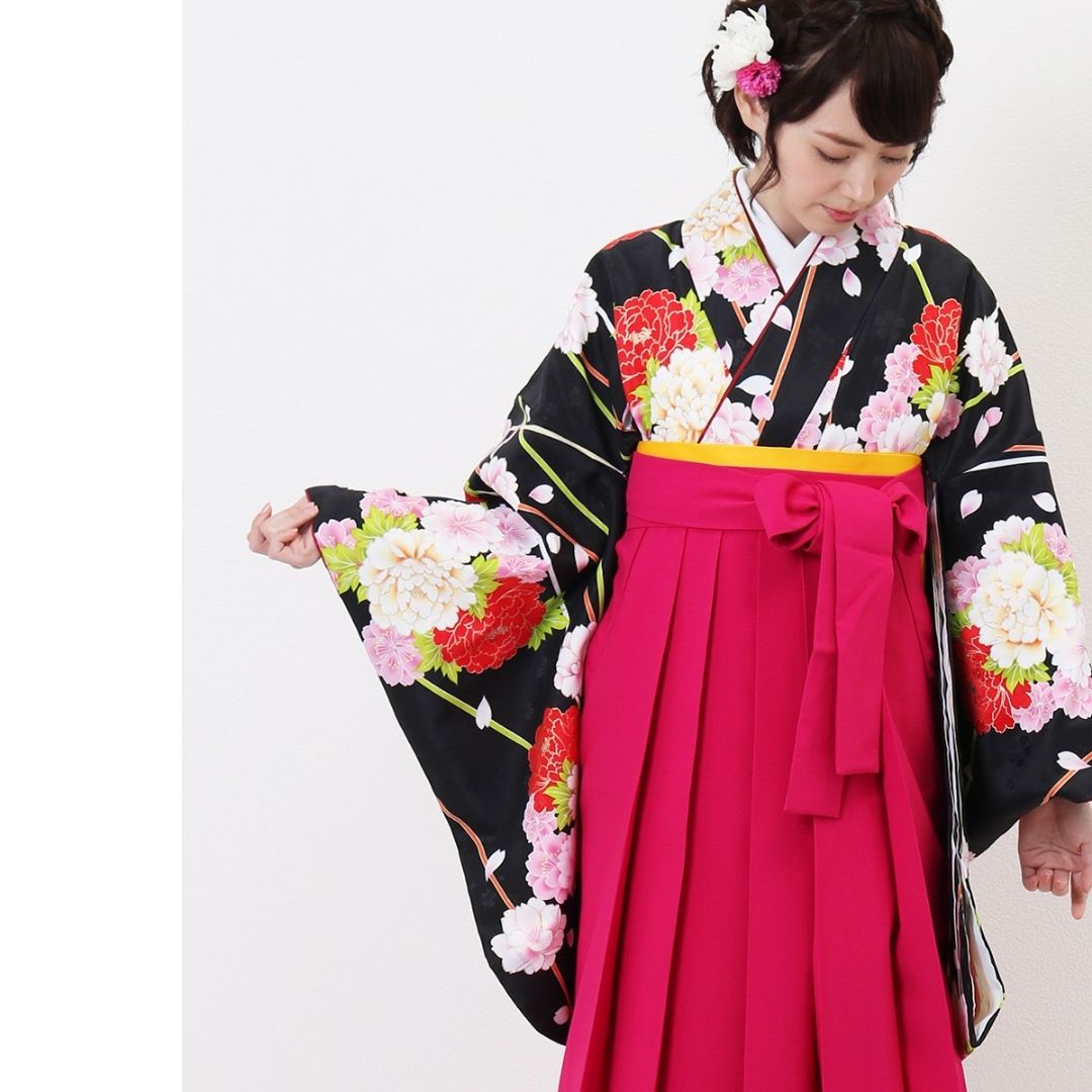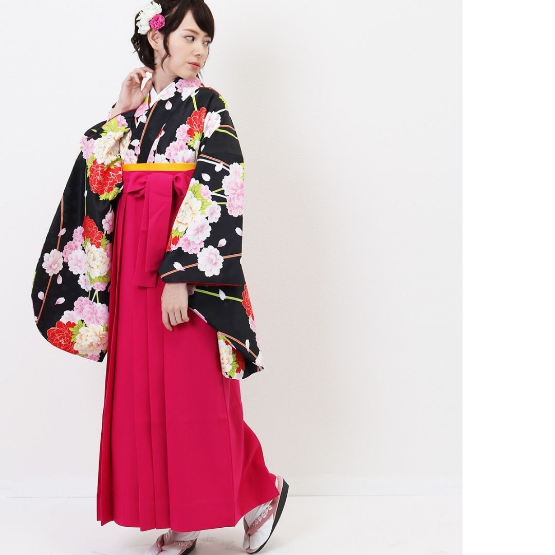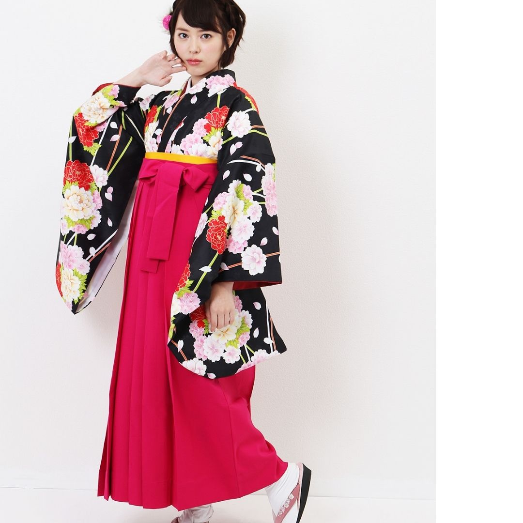 【対応身長 157cm~165cm】【正統派】 卒業式レンタル袴フルセット-1262 マルチカラー 花柄 牡丹 黒 ピンク 白