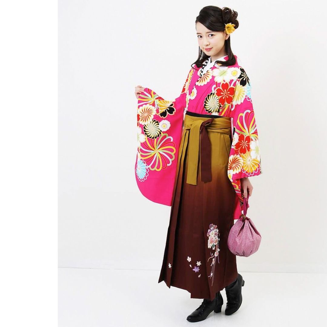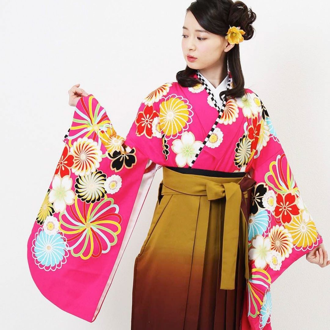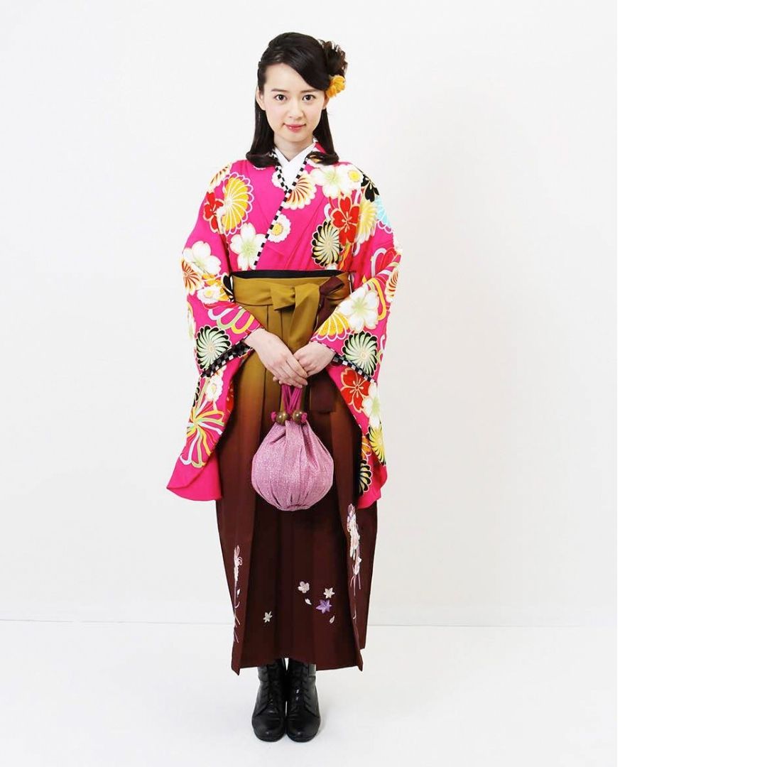 【対応身長 157cm~165cm】【キュート】 卒業式レンタル袴フルセット-1274 花柄 ピンク