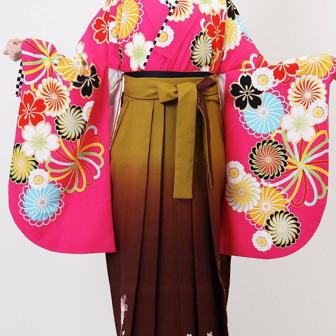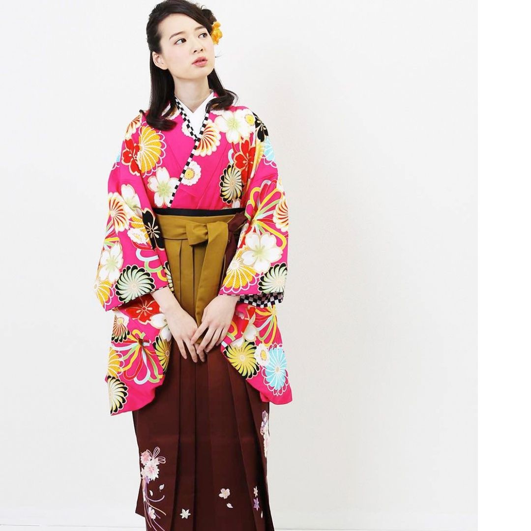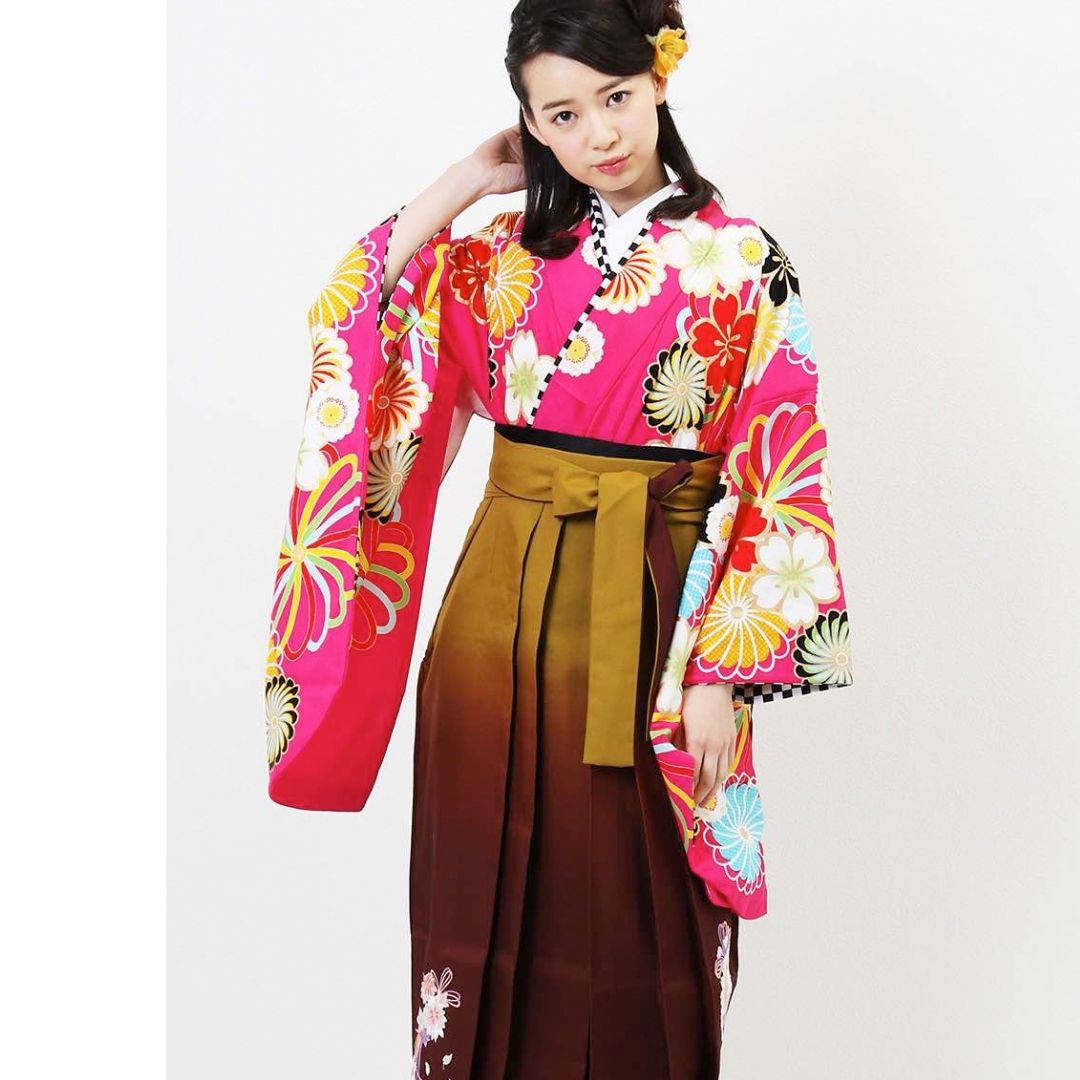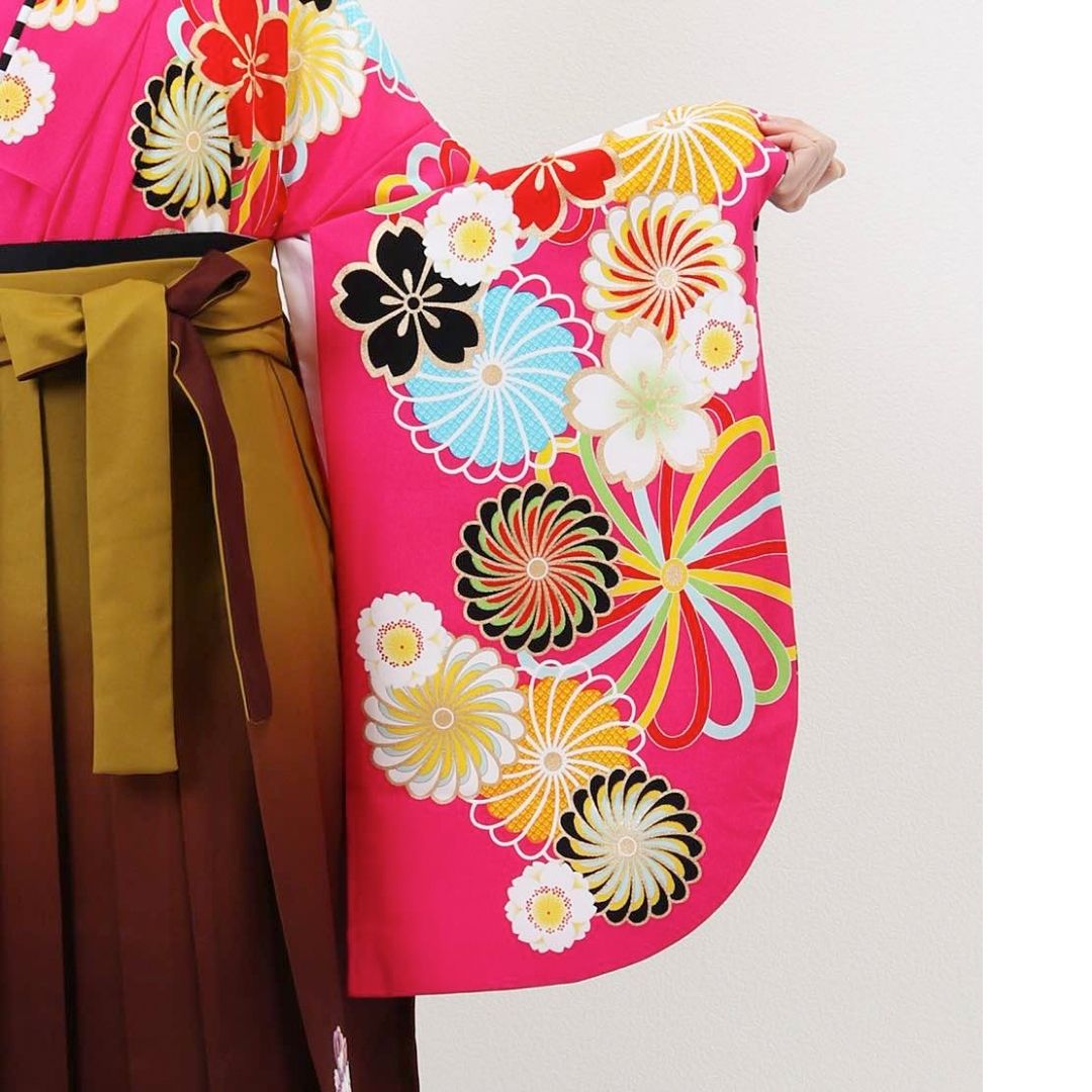 【対応身長 157cm~165cm】【キュート】 卒業式レンタル袴フルセット-1274 花柄 ピンク