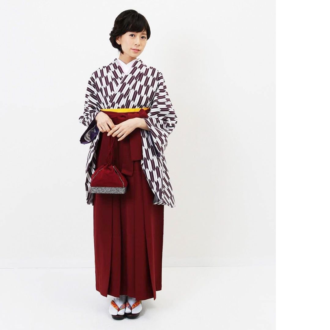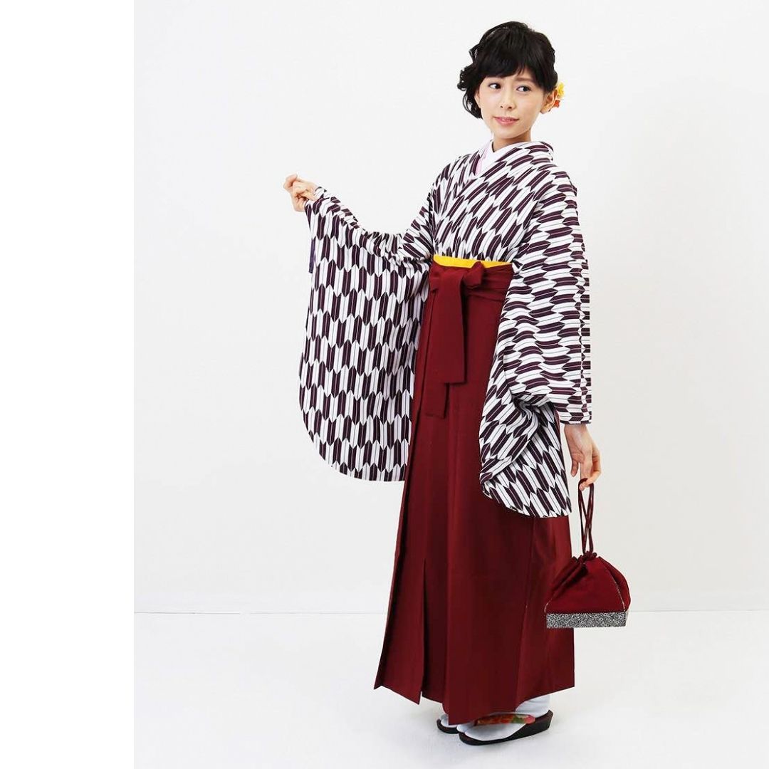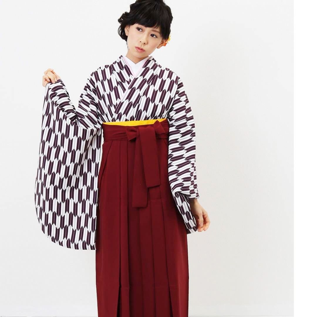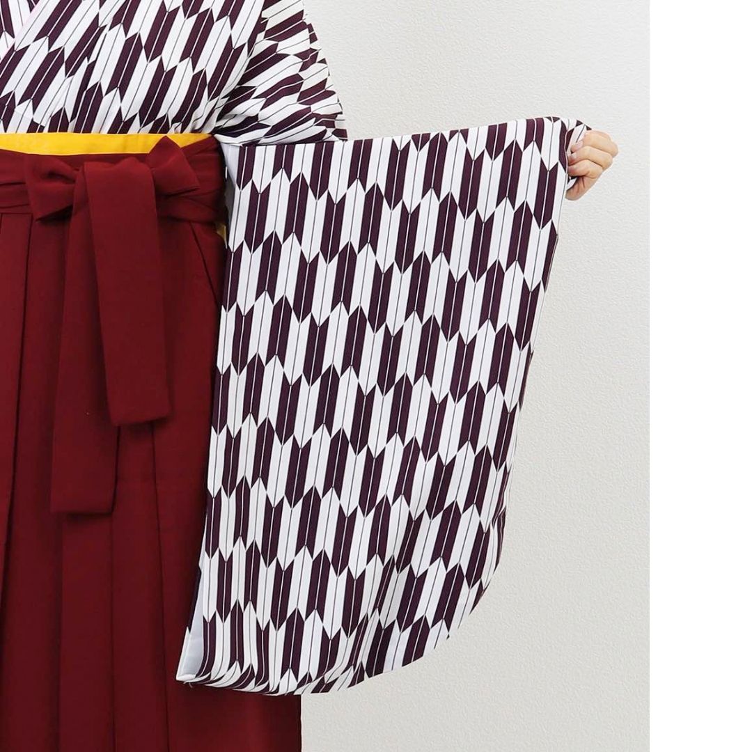 【対応身長 157cm~165cm】【正統派】 卒業式レンタル袴フルセット-1280 矢絣 白 紫