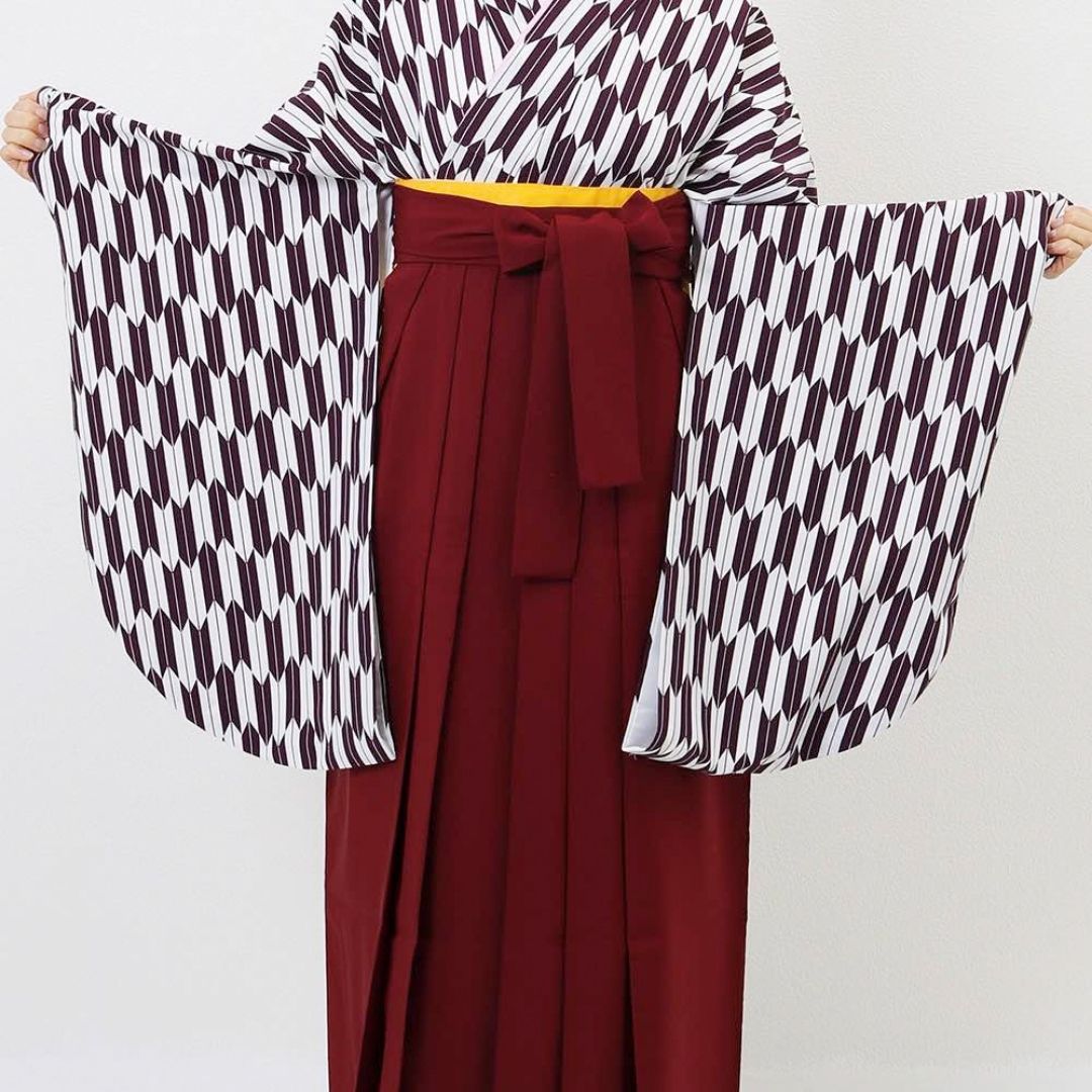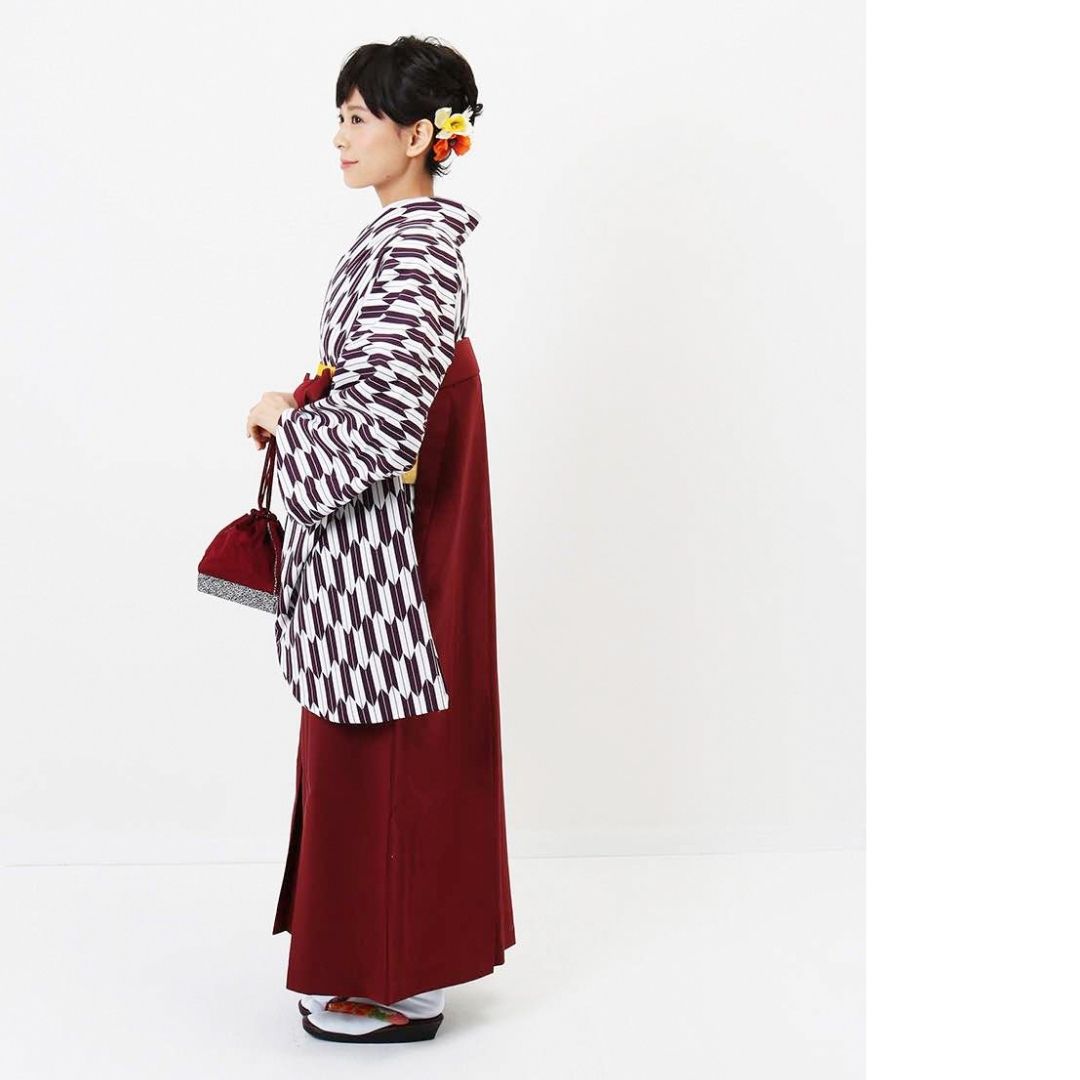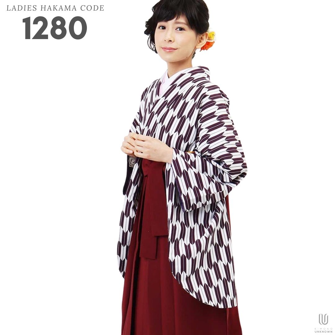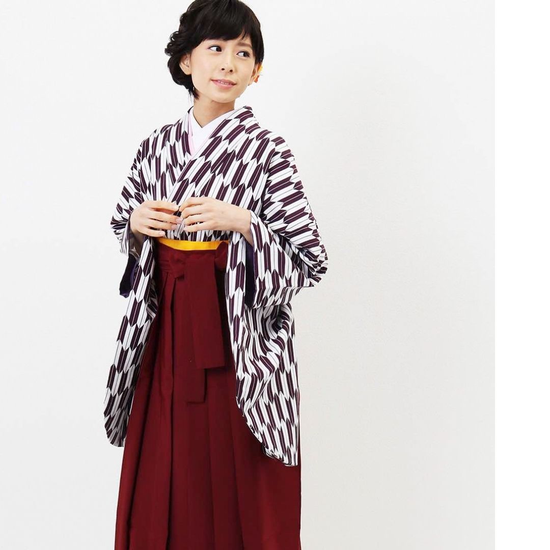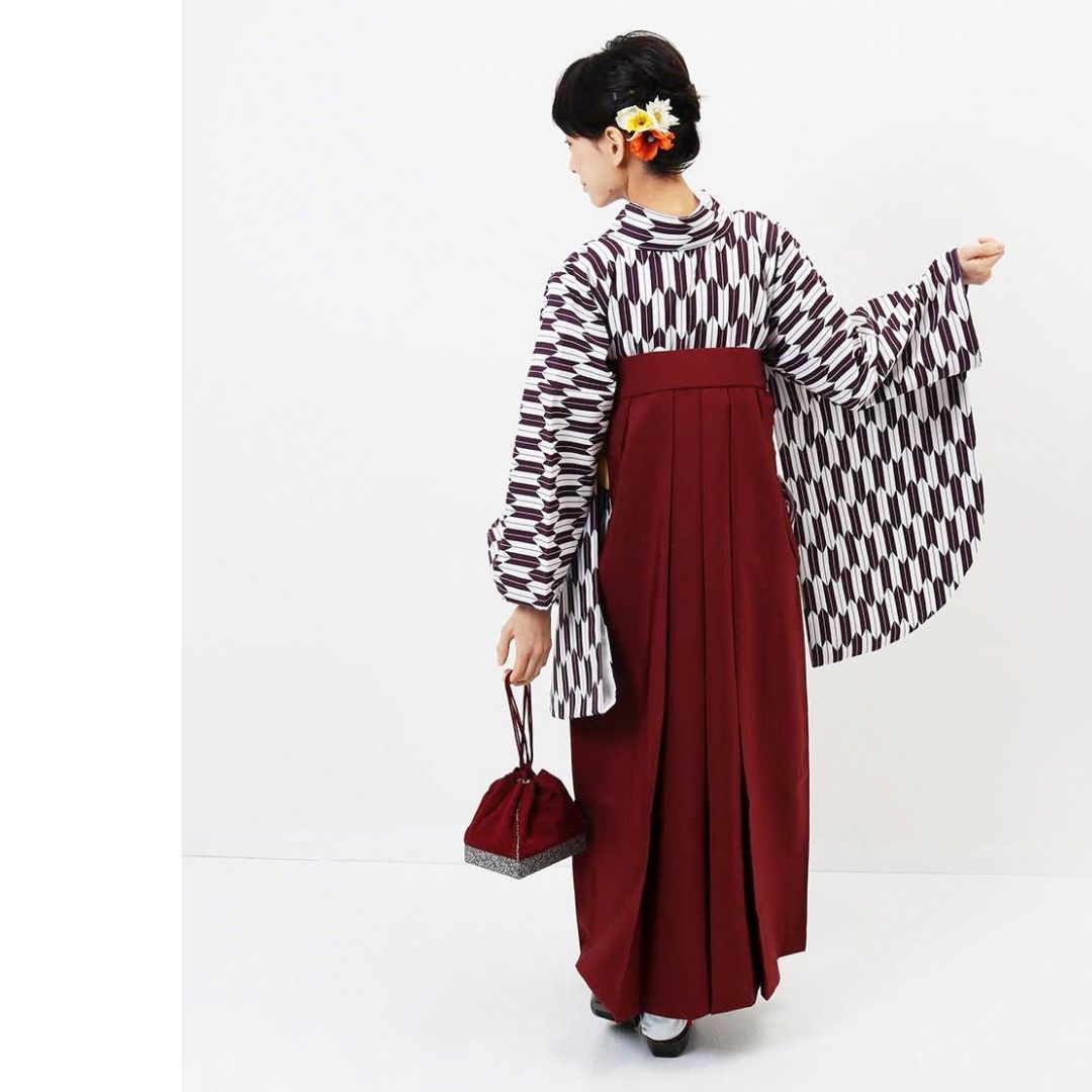 【対応身長 157cm~165cm】【正統派】 卒業式レンタル袴フルセット-1280 矢絣 白 紫
