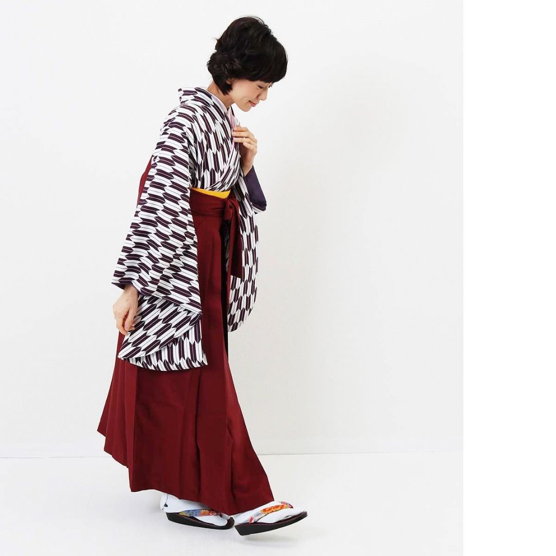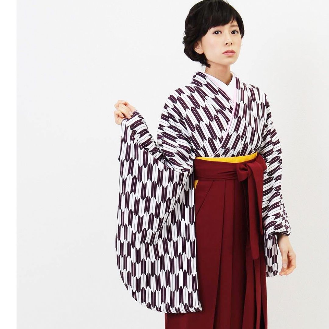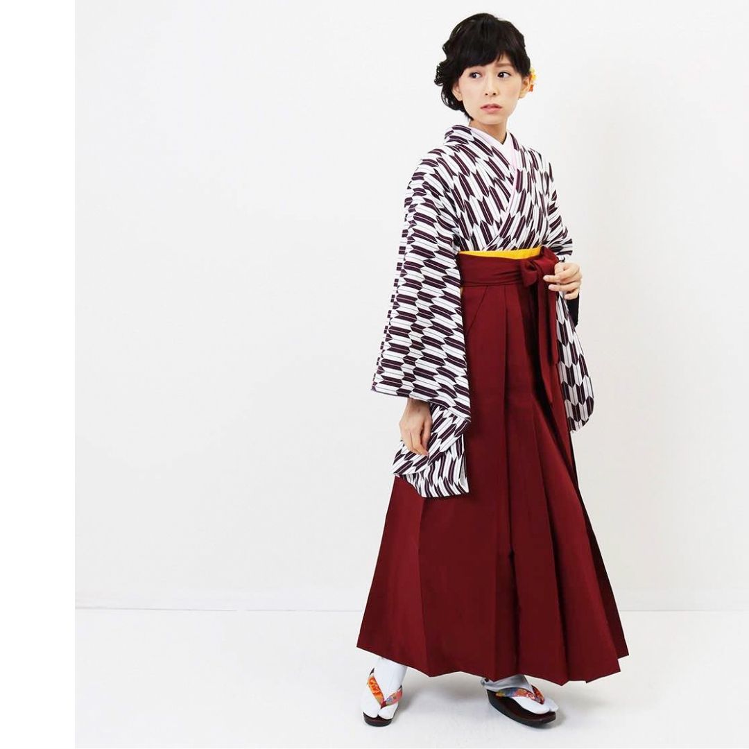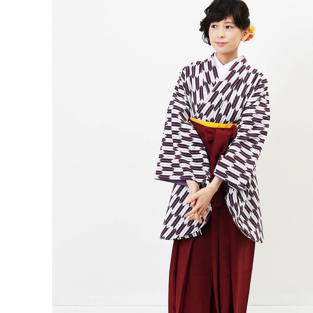 【対応身長 157cm~165cm】【正統派】 卒業式レンタル袴フルセット-1280 矢絣 白 紫