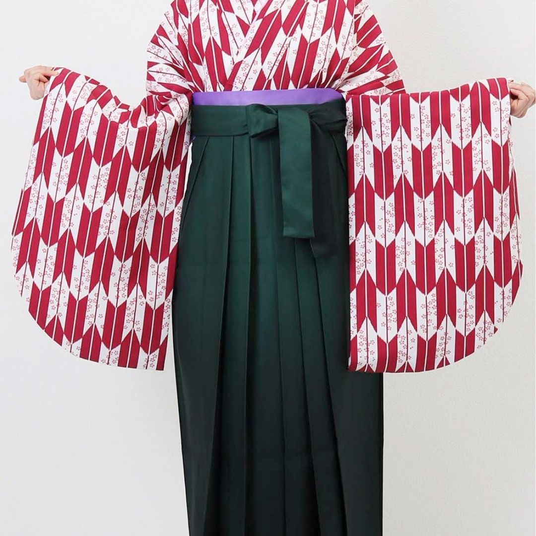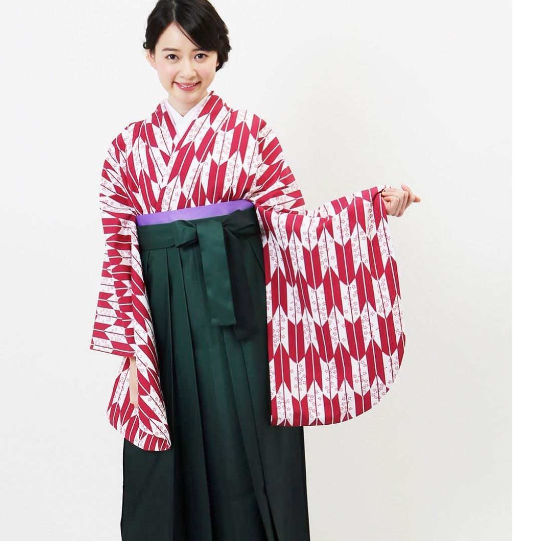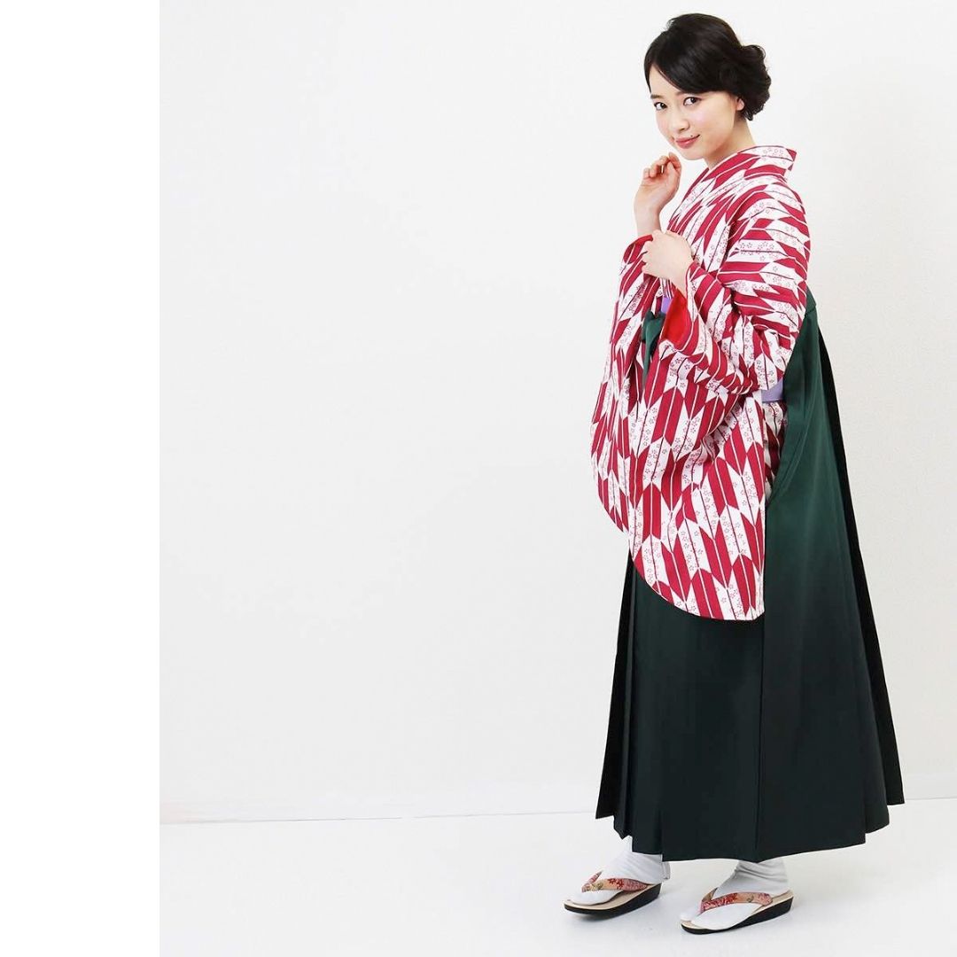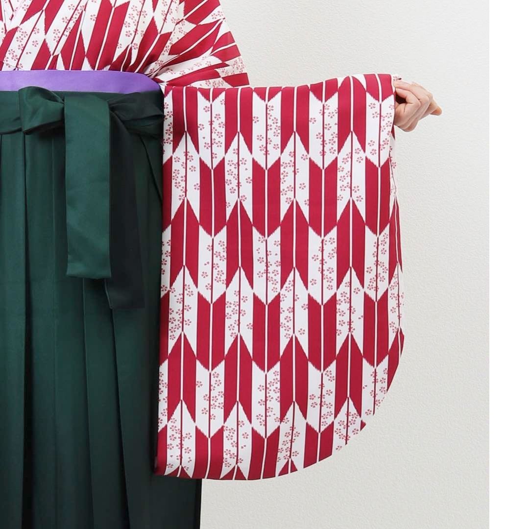 【対応身長 157cm~165cm】【正統派】 卒業式レンタル袴フルセット-1281 矢絣 白 ピンク 赤